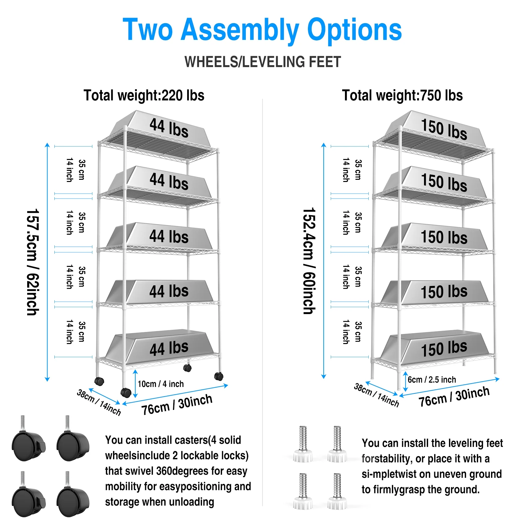 Ufurpie 2 Pack 5 Tier Shelf Wire Shelving Unit,NSF Heavy Duty Wire Shelf Metal Large Storage Shelves Height Adjustable Utility for Garage Kitchen Office,White - Curated Treasures Market