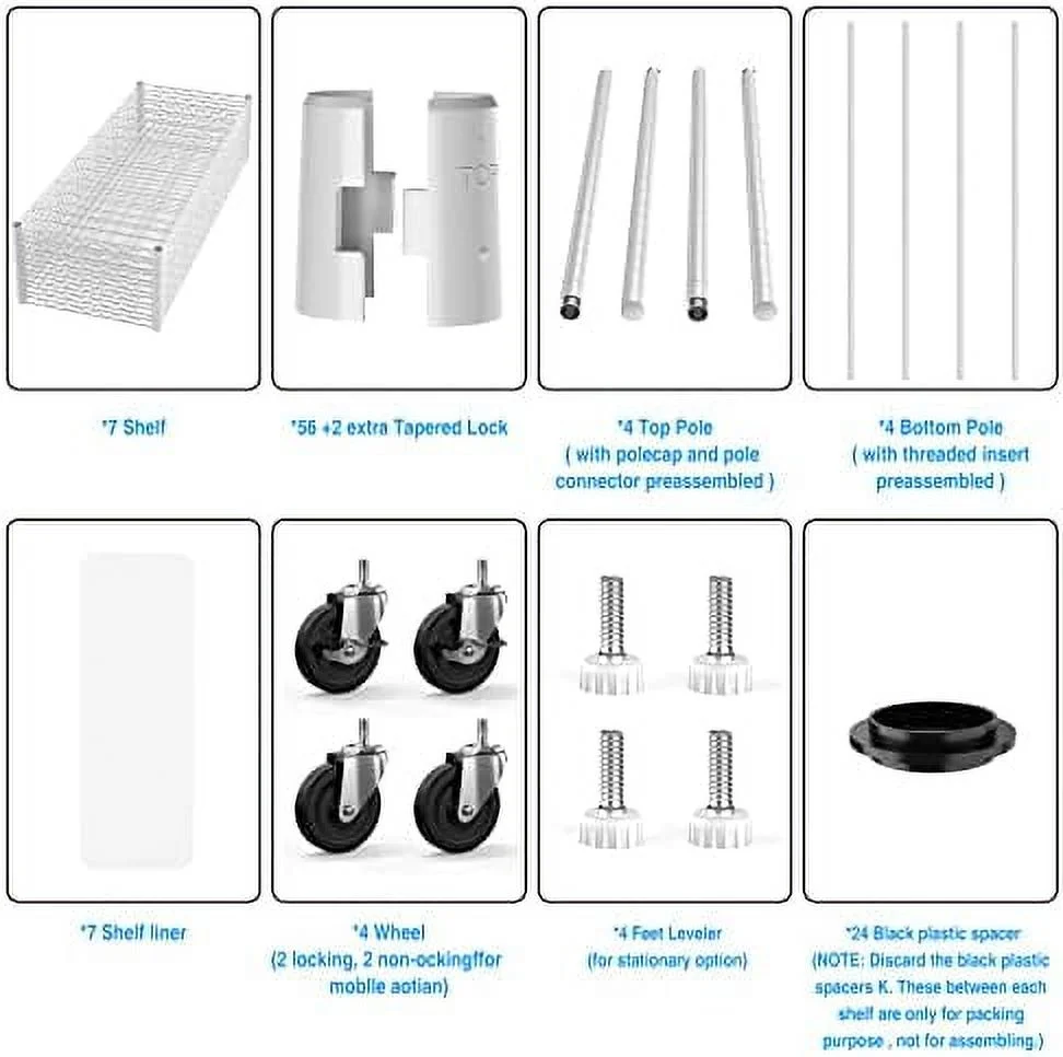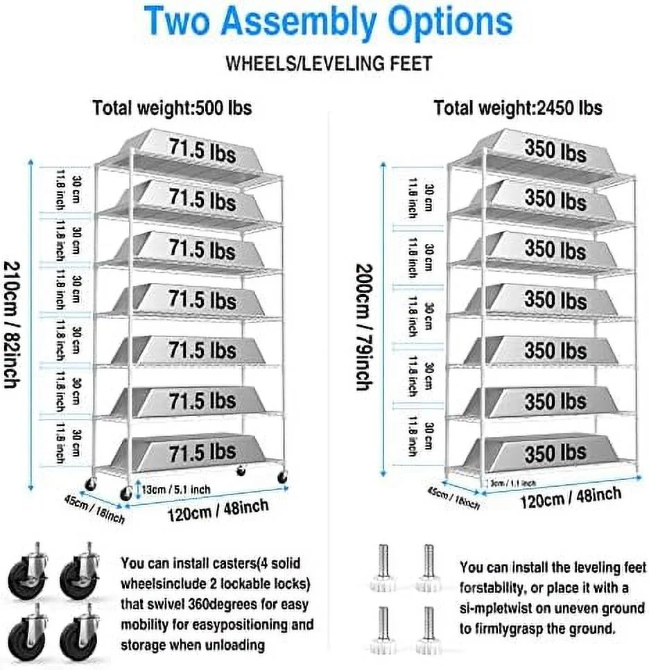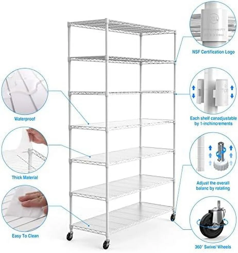 HBROLJF Heavy-Duty Wire Shelving Unit - 7-Tier 2450lbs Capacity NSF Certified Adjustable Metal Rack with Wheels & Liners 82"H x 48"L x 18"D - Ideal for Kitchen Garag - Curated Treasures Market
