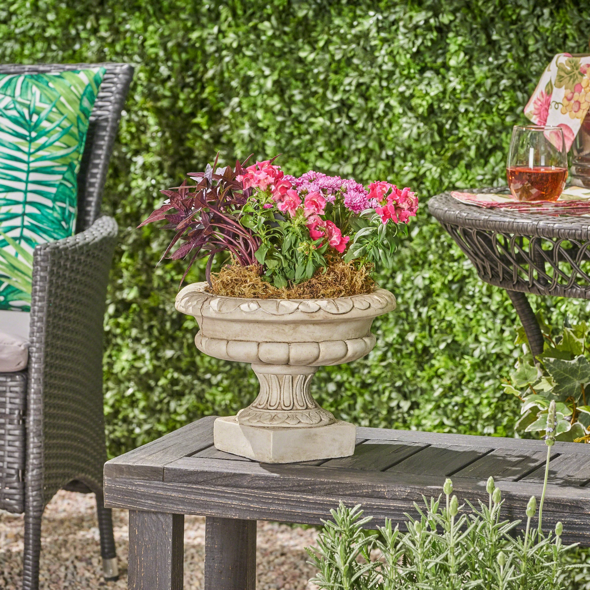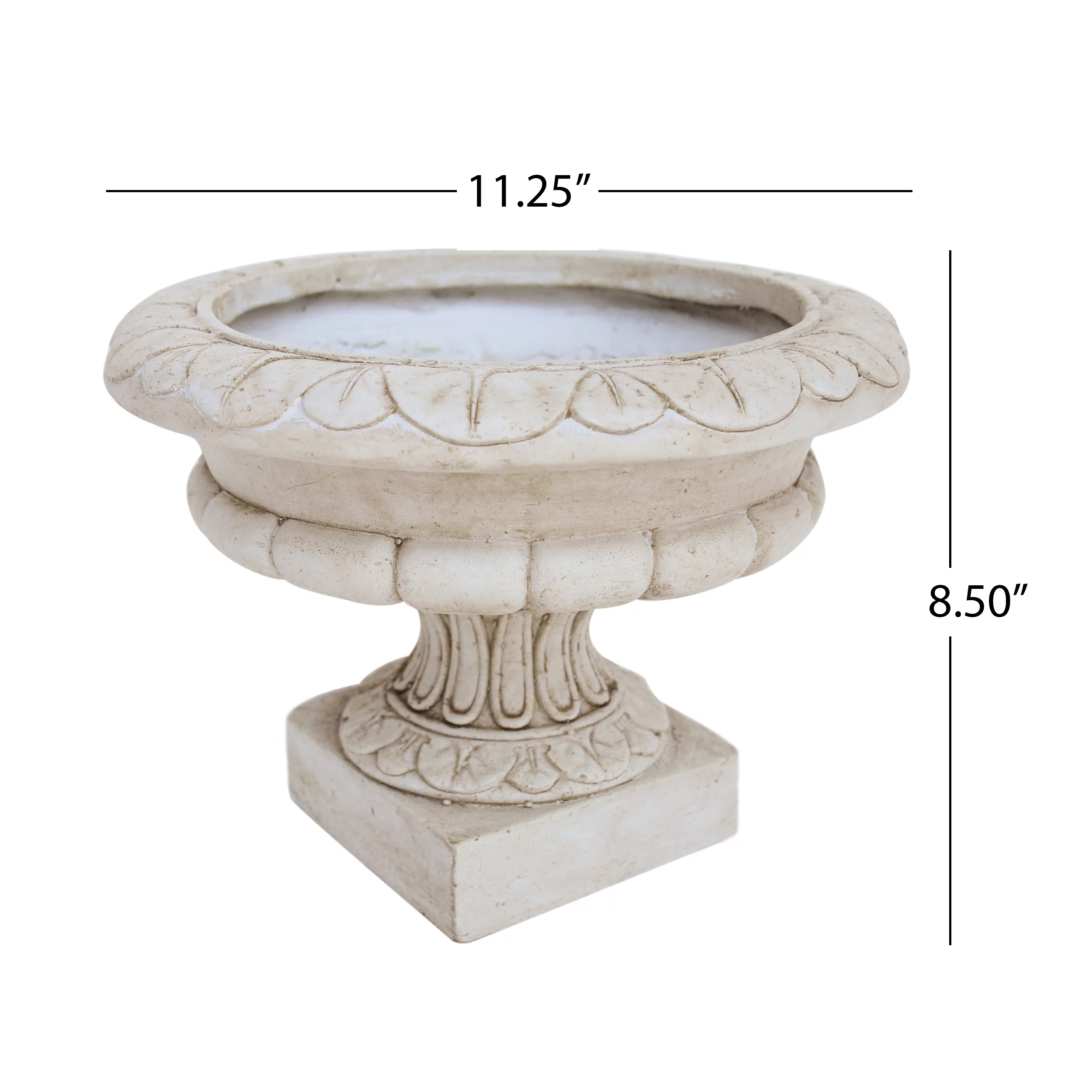 GDF Studio North Outdoor Cast Stone Roman Chalice Garden Urn Planter, Antique White - Curated Treasures Market
