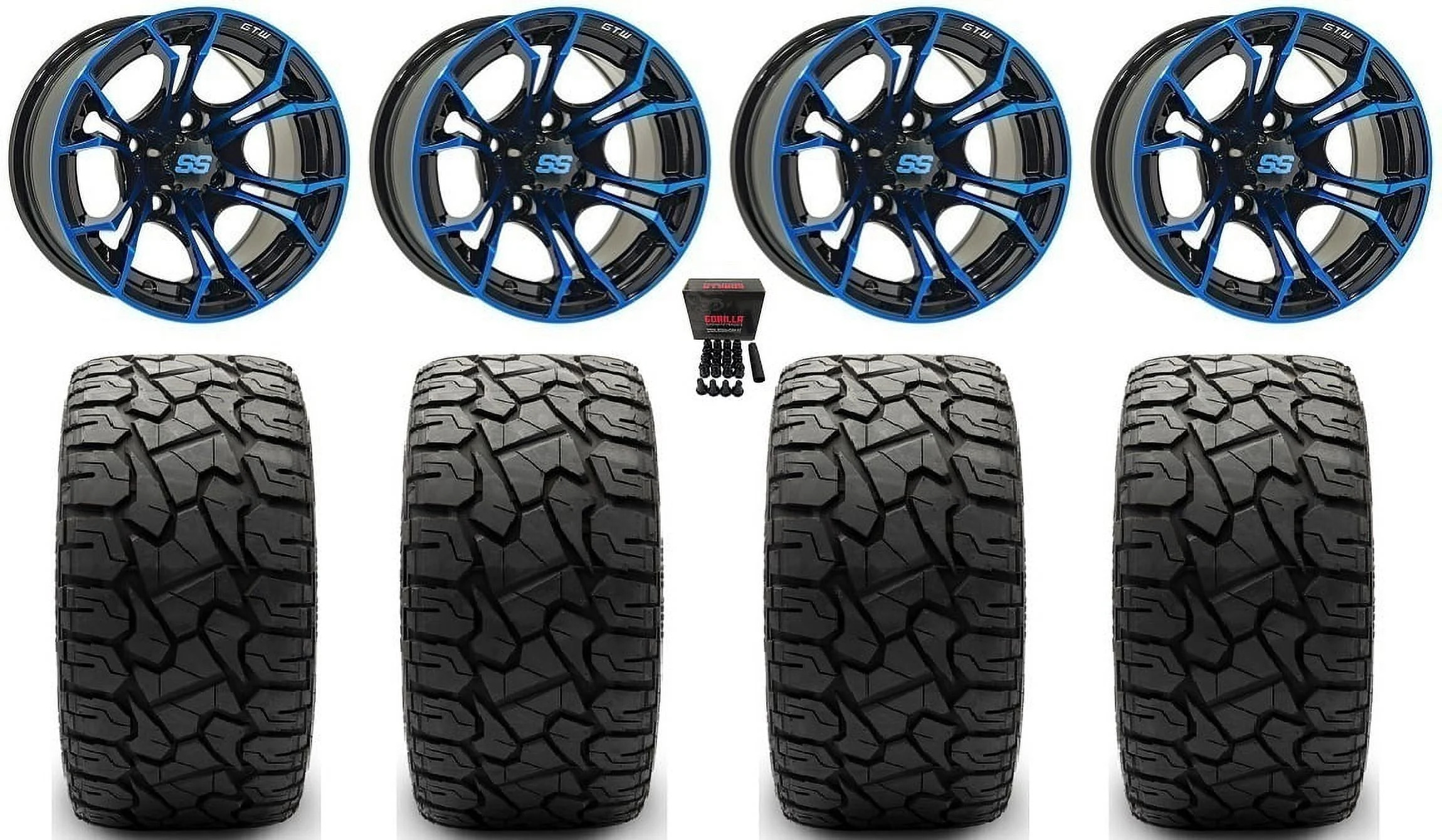 GTW Spyder 12" Golf Cart Wheels Blue 23" X Comp X/T Tires Yamaha - Curated Treasures Market