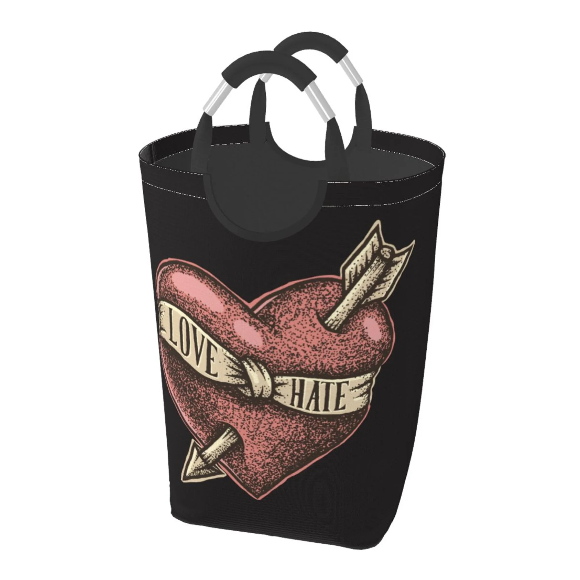TEQUAN 50L Large Rectangular Laundry Hamper with Aluminum Handles, Love Heart with Arrow Prints Waterproof Foldable Dirty Clothes Basket - Curated Treasures Market
