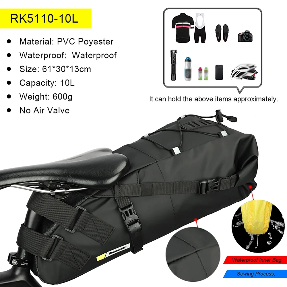Rhinowalk Bike Bag, Waterproof Saddle Tube Bag, Large Capacity Cycle Storage, Quick Release Bike Accessories, for Under Seats - Curated Treasures Market