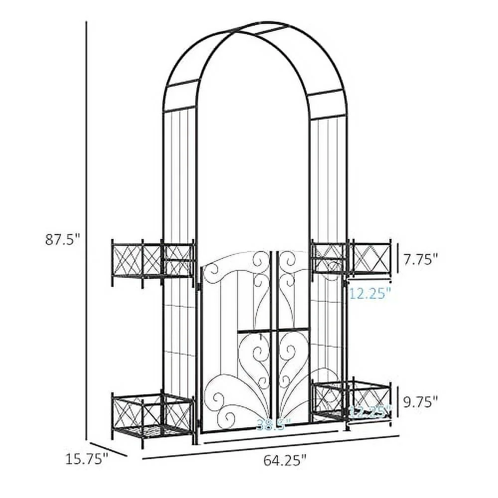 Outsunny 7' Garden Arch Arbor, Metal Arch Trellis with Gate, Garden Archway for Climbing Vines, Wedding Ceremony Decoration, Black - Curated Treasures Market