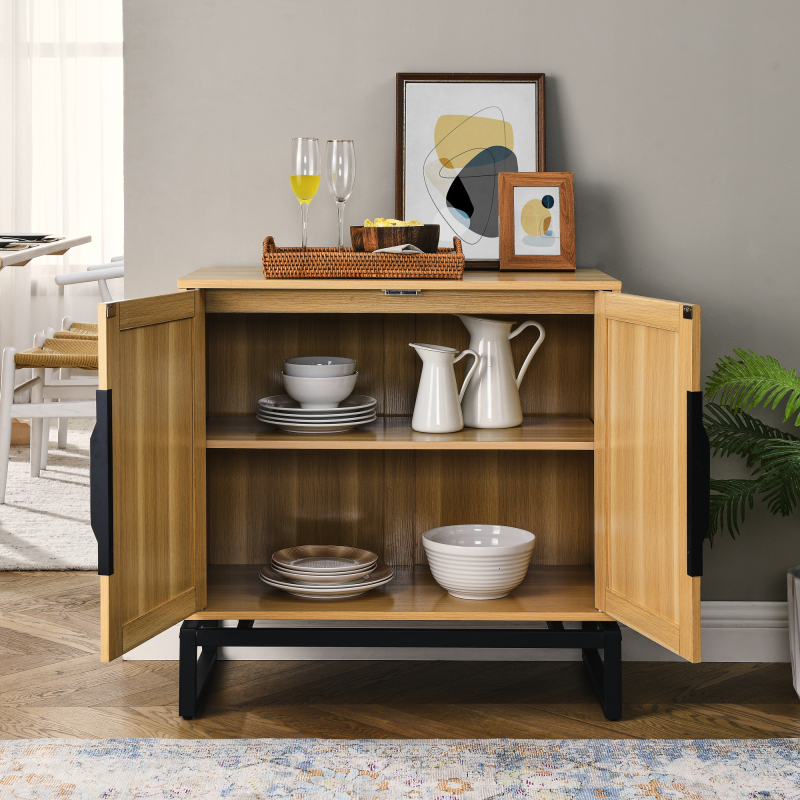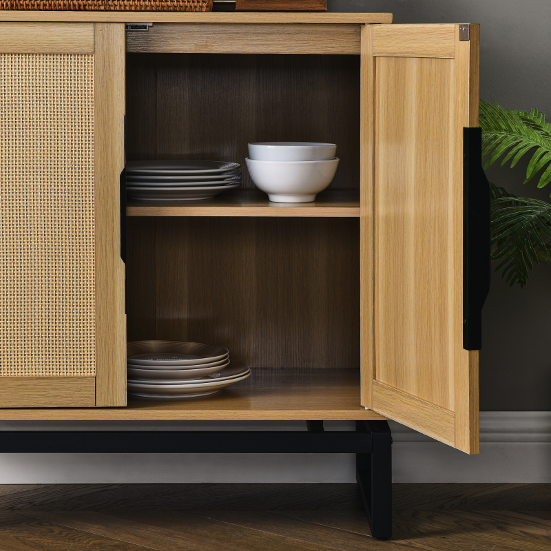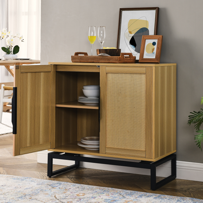 Cabinet,Sideboard,Natural rattan 2 door cabinet,with 1 Adjustable Inner Shelves,rattan - Curated Treasures Market