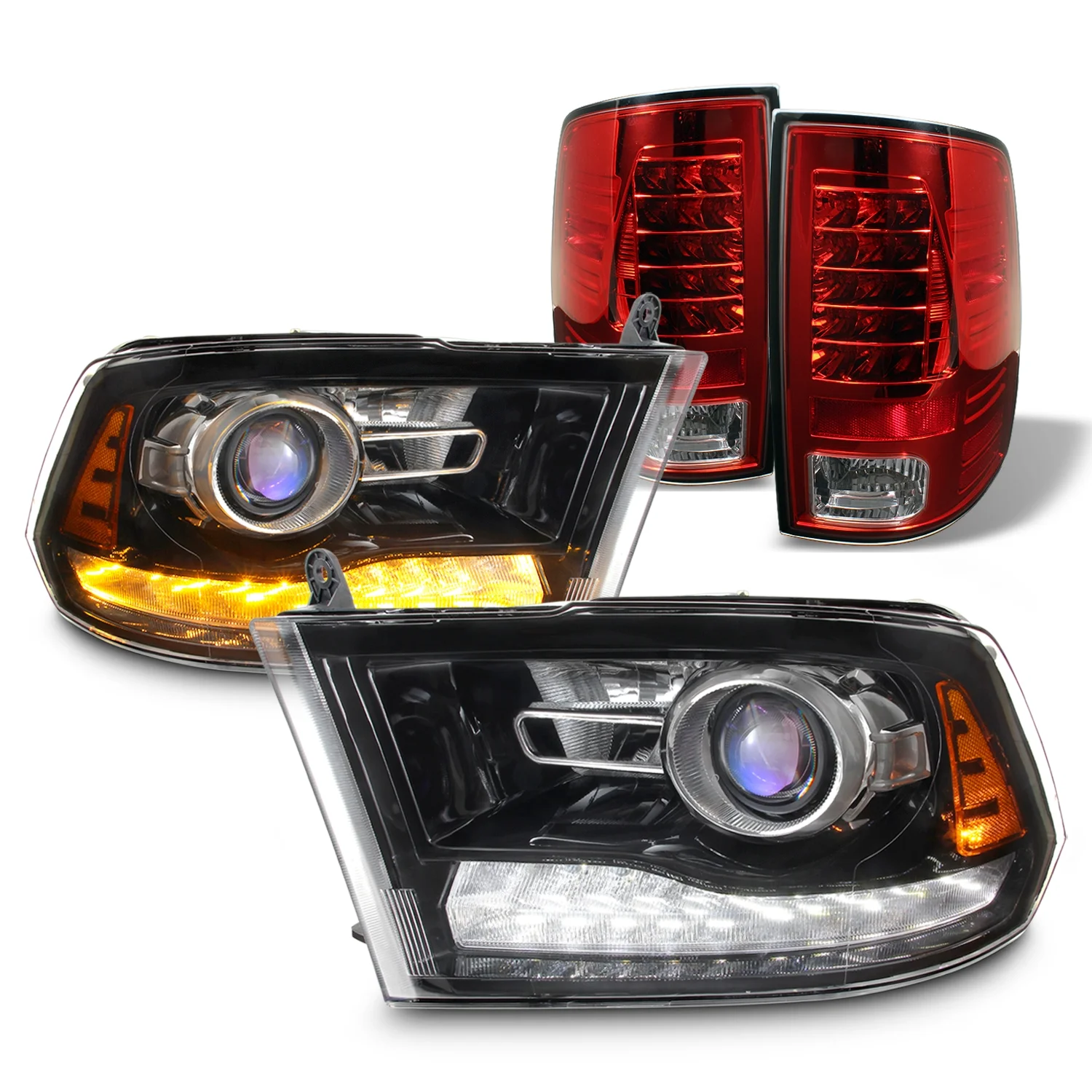 AKKON - For 2009-2018 Dodge Ram 1500/2500/3500 LED Black Headlights|LED Red Clear Tail Lights Housing - Curated Treasures Market