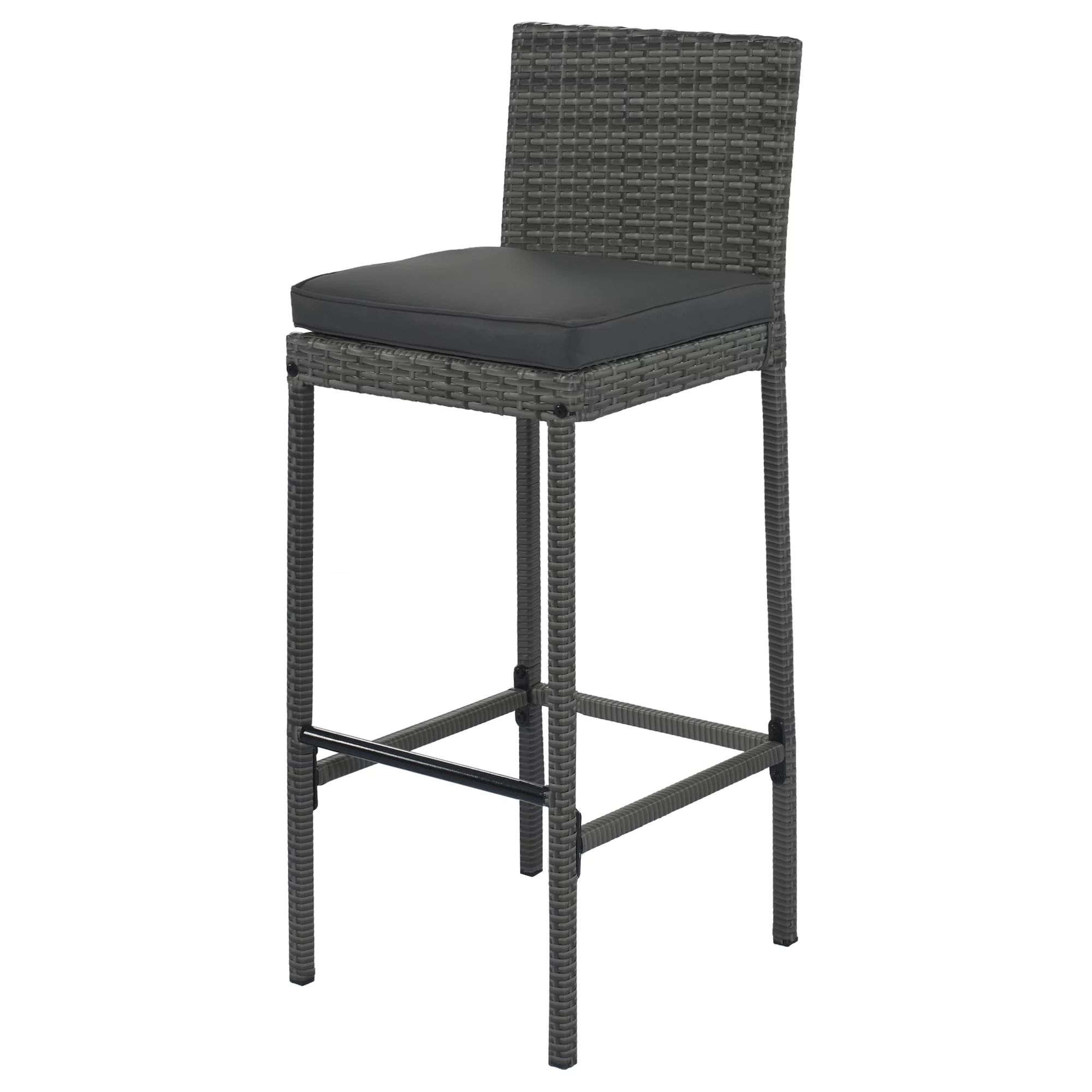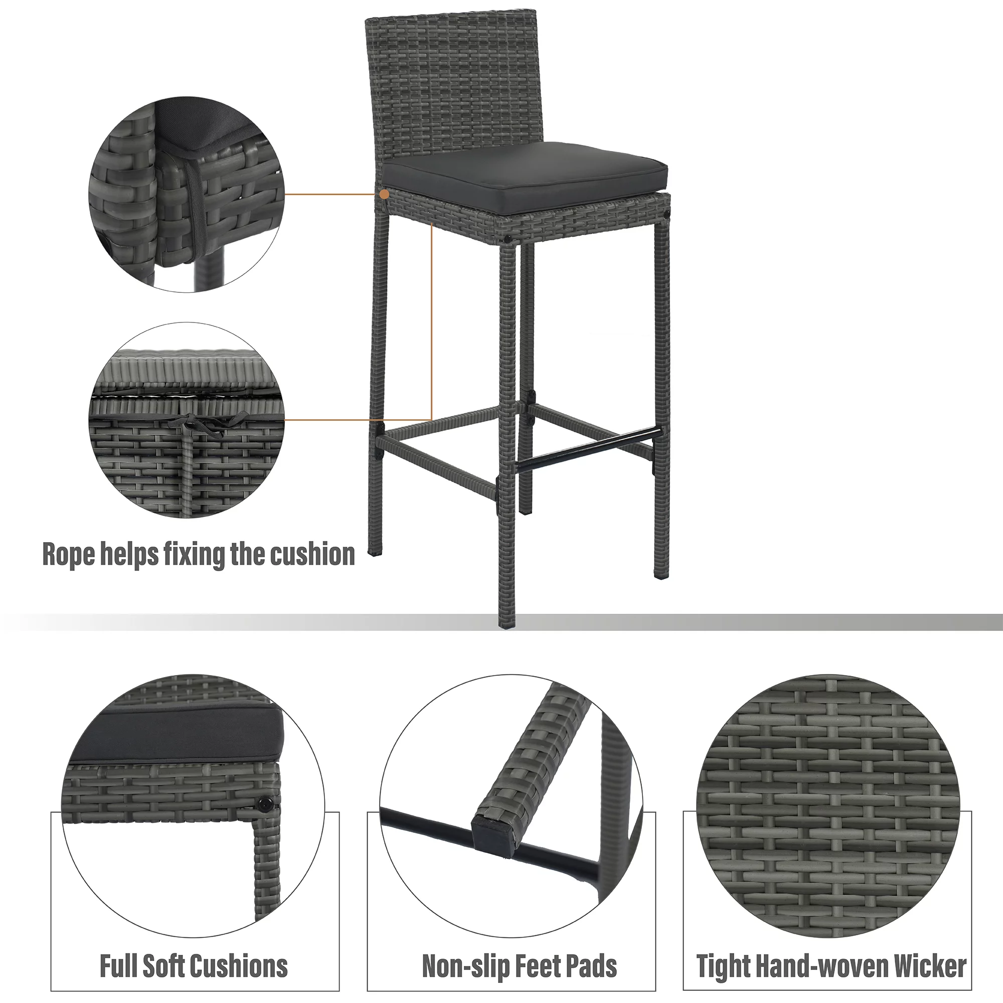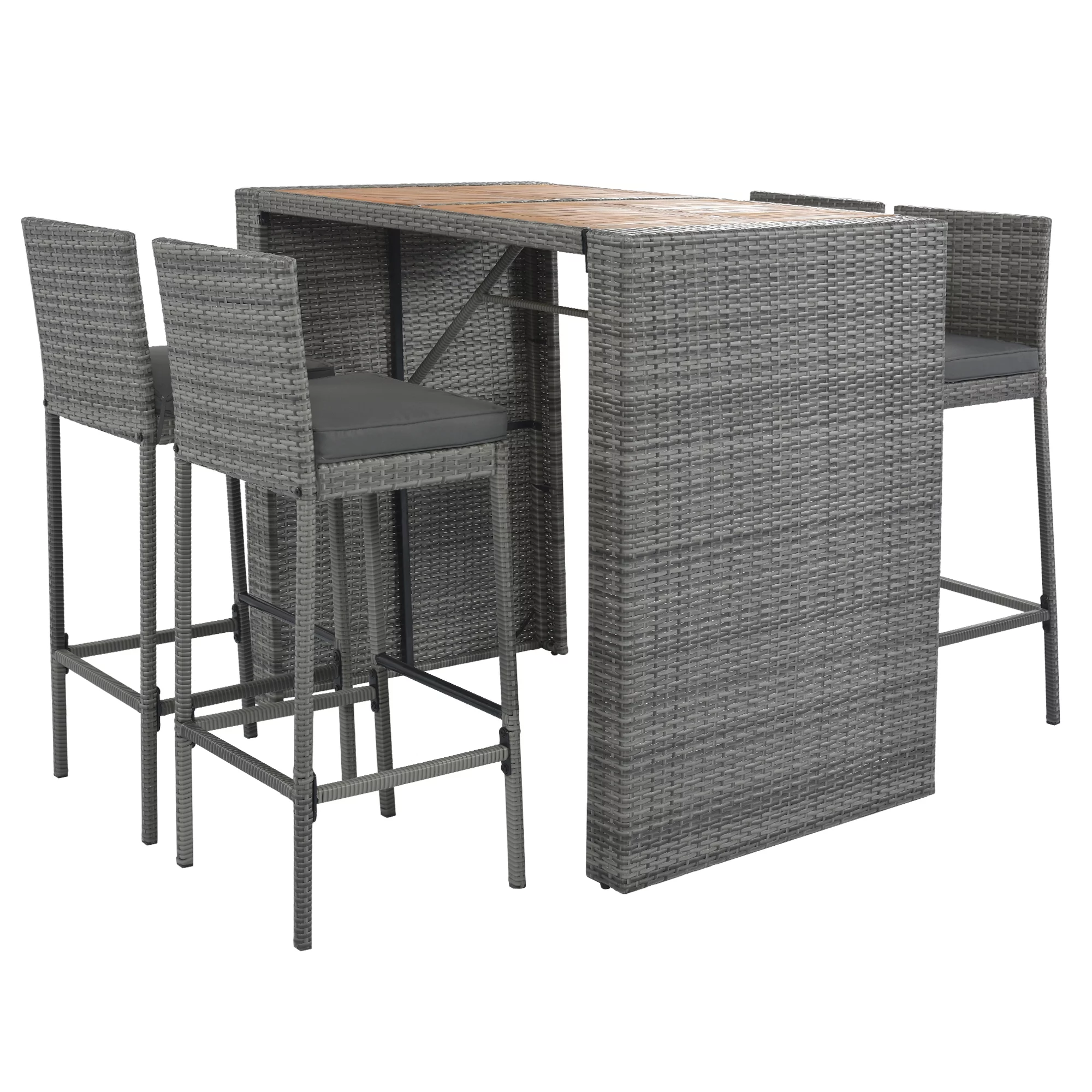 5PCS Outdoor Patio Wicker Bar Set, Garden PE Rattan Wicker Dining Set, One Acacia Wood Top Dining Table with 4PCS Ergonomic Backrests and Removable Cushion Hight Bar Stools Dining Set , Gray - Curated Treasures Market