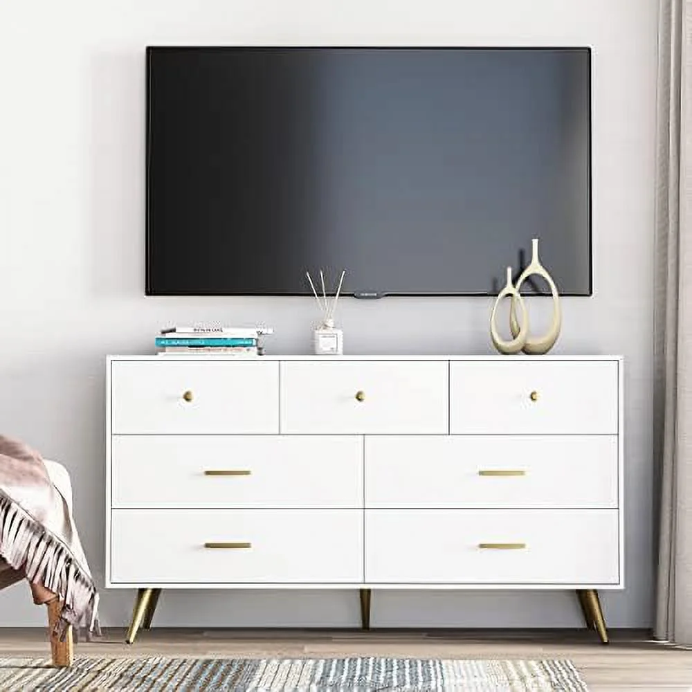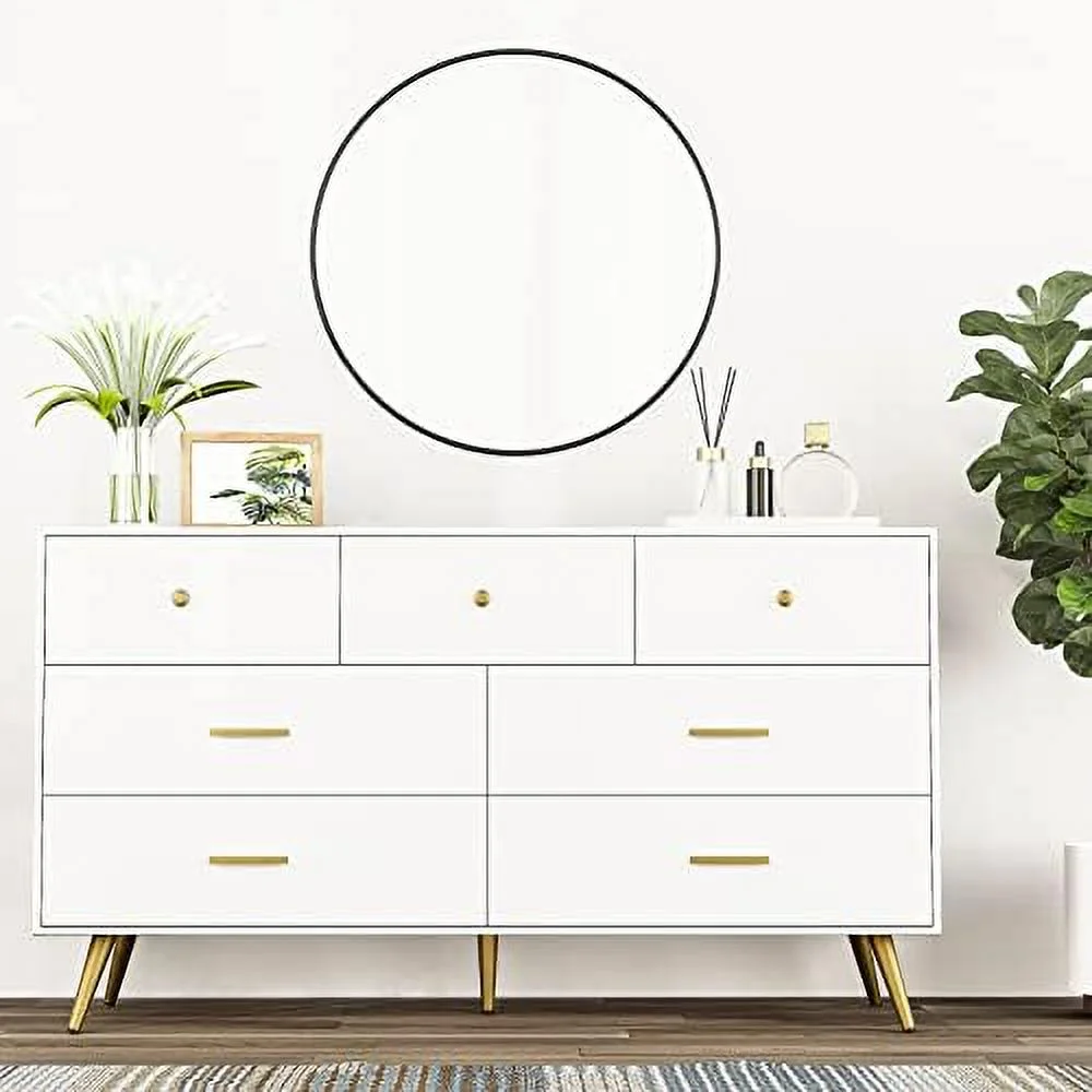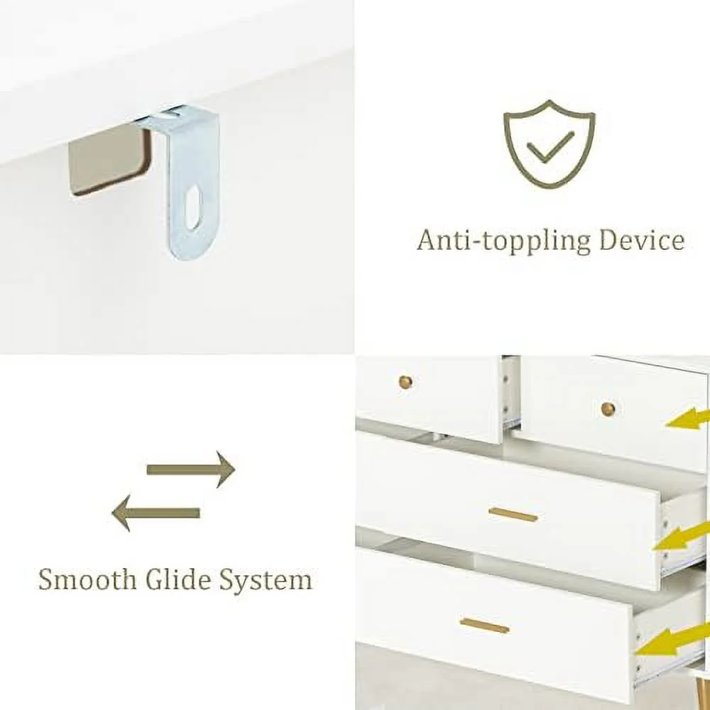 6 Drawer Dresser for Bedroom White Wood Dresser with Wide Drawers and Metal Handles Long Chest of Drawers for Living Room Hallway Entryway White - Curated Treasures Market