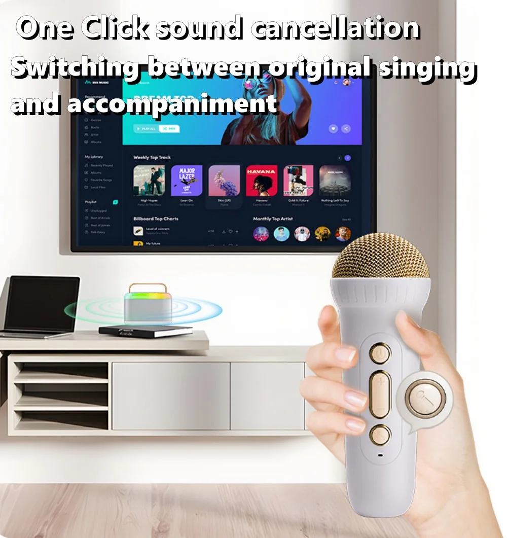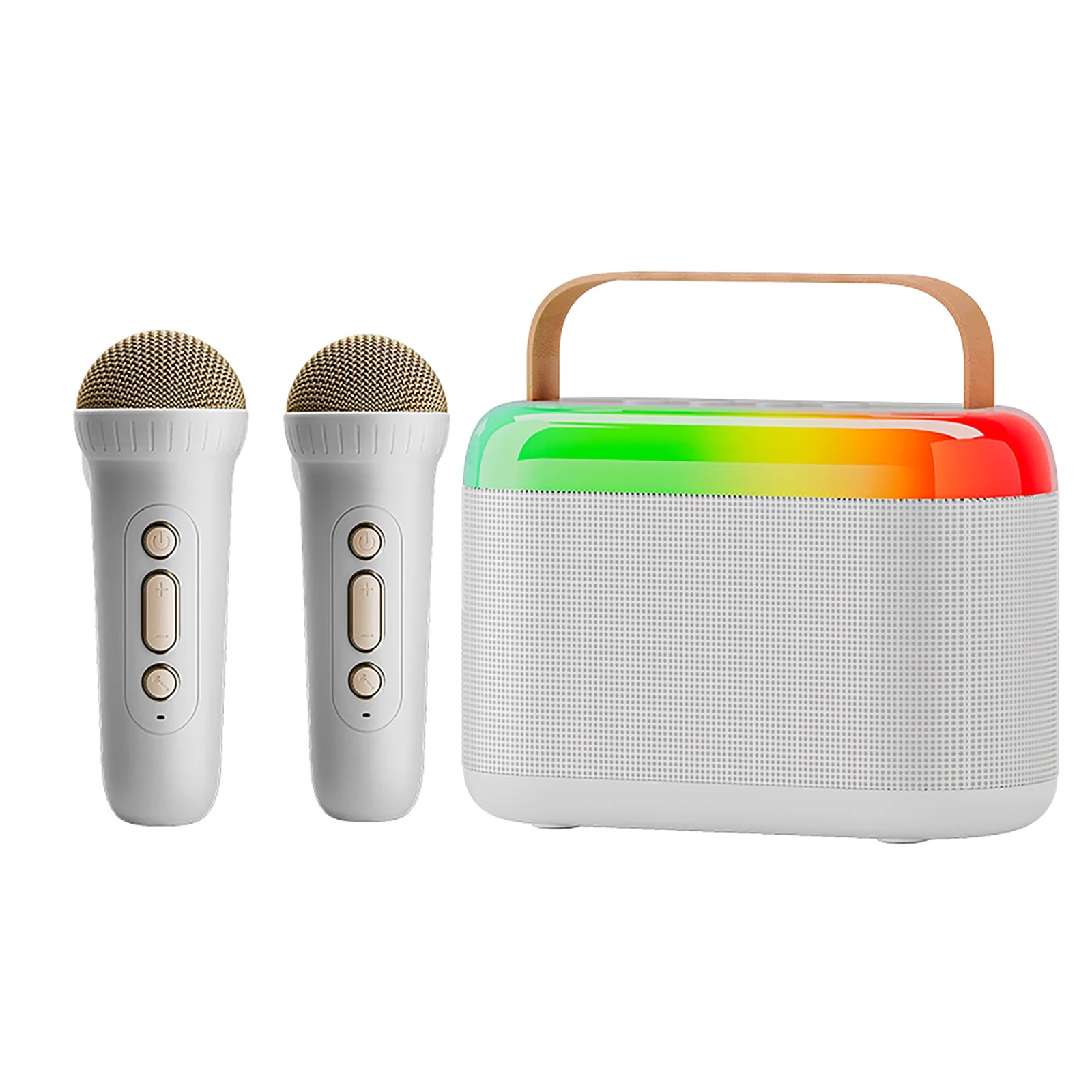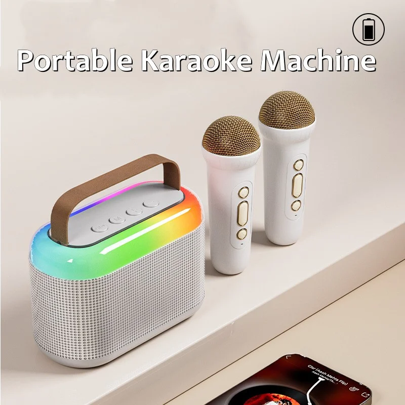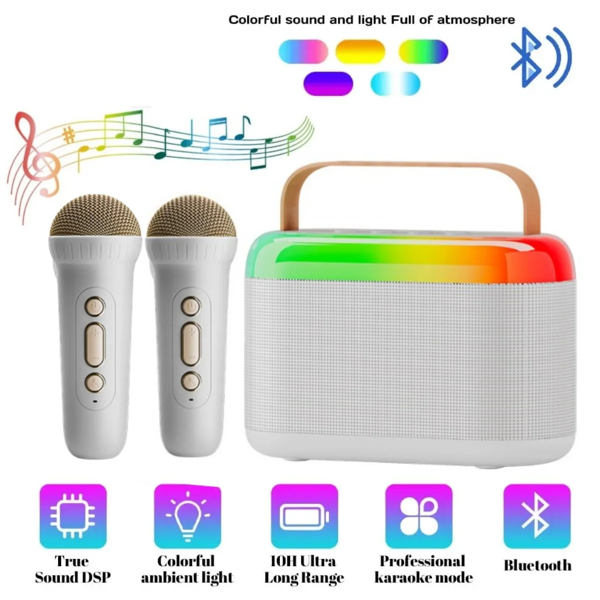 Karaoke Machine with 2 Wireless Mic, Mini Portable Bluetooth Karaoke Singing Speaker with RGB Atmosphere Lights for Kids Adults Home Party - Curated Treasures Market