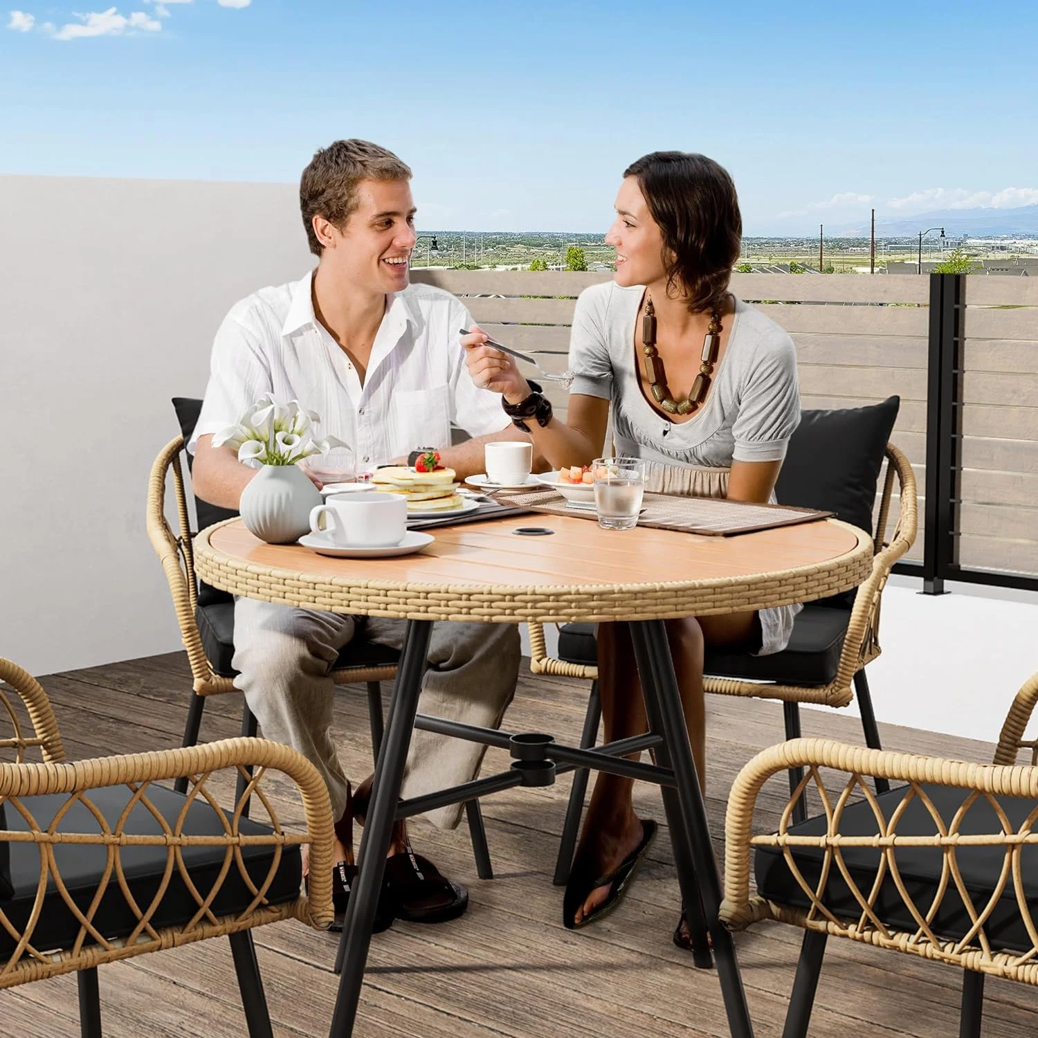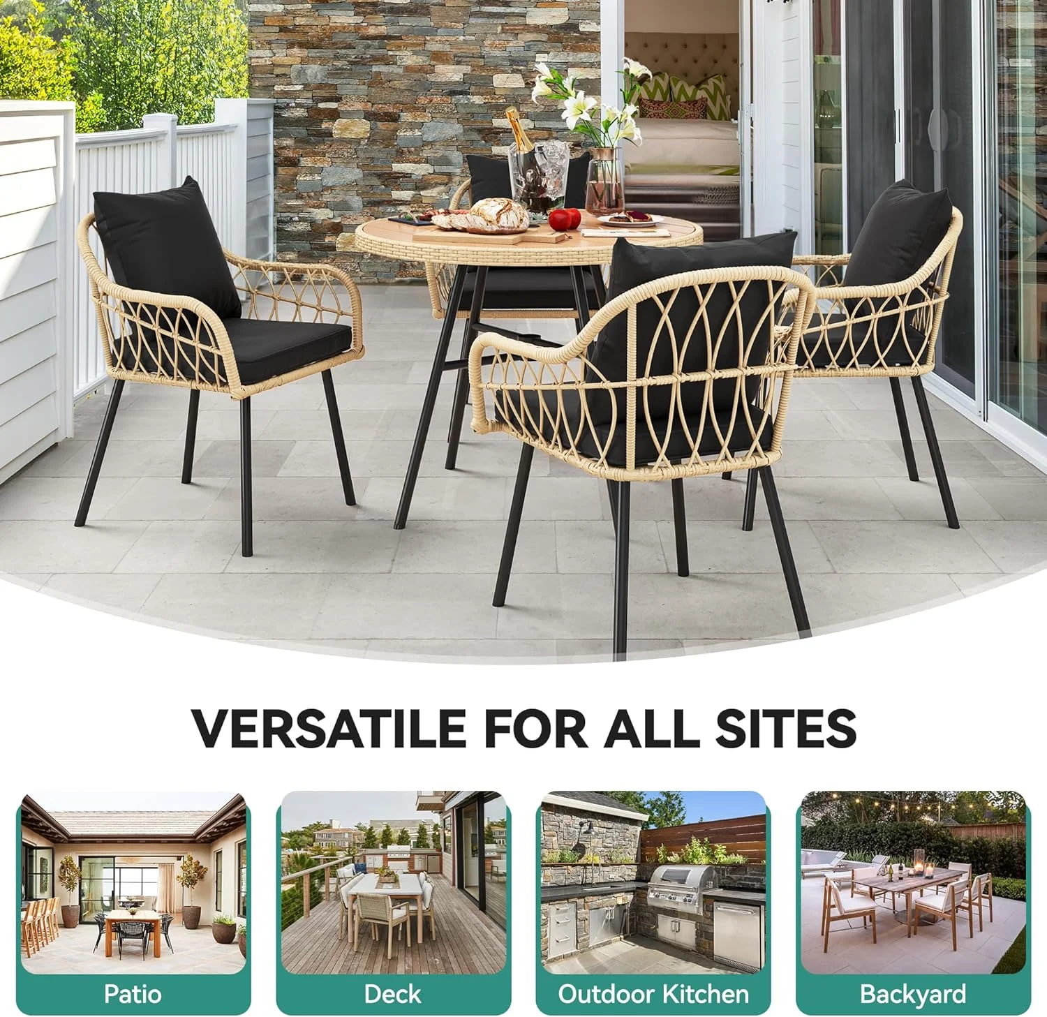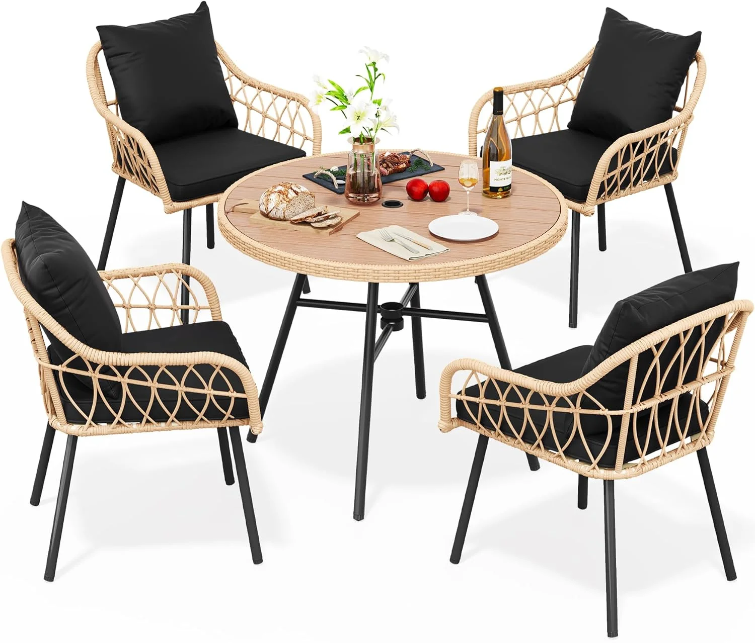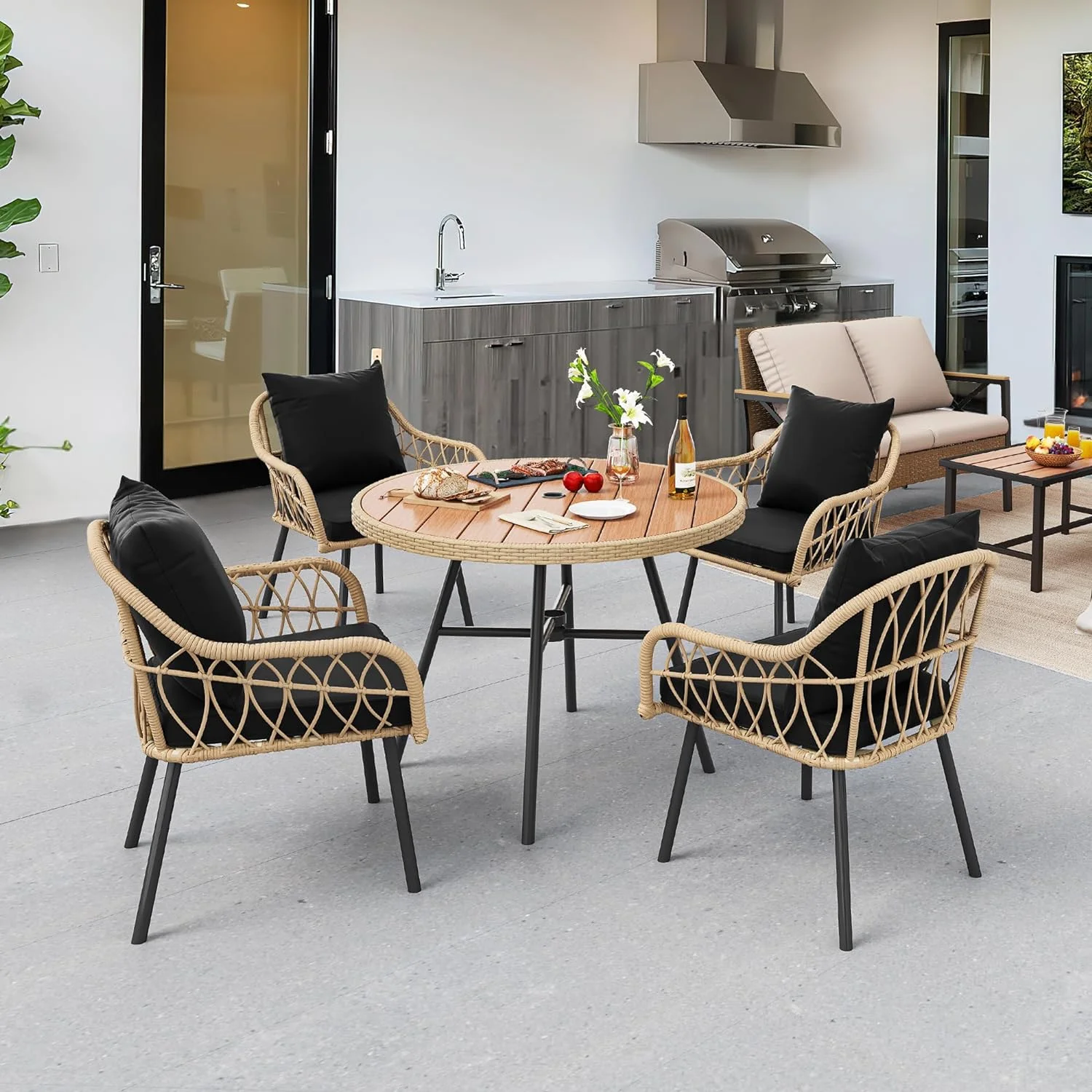 U-ToBe 5-Piece Outdoor Patio Furniture Dining Set, All-Weather Rattan Conversation Set with Soft Cushions and Plastic Wood Tabletop Dining Table for Backyard Deck (Light Brown + Black) - Curated Treasures Market