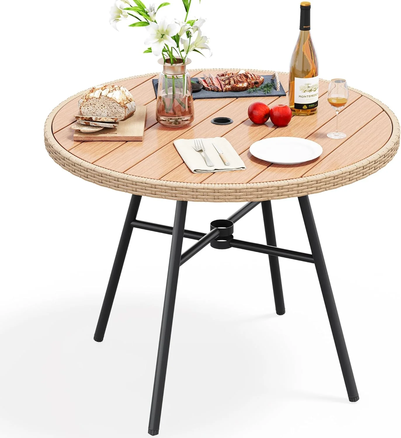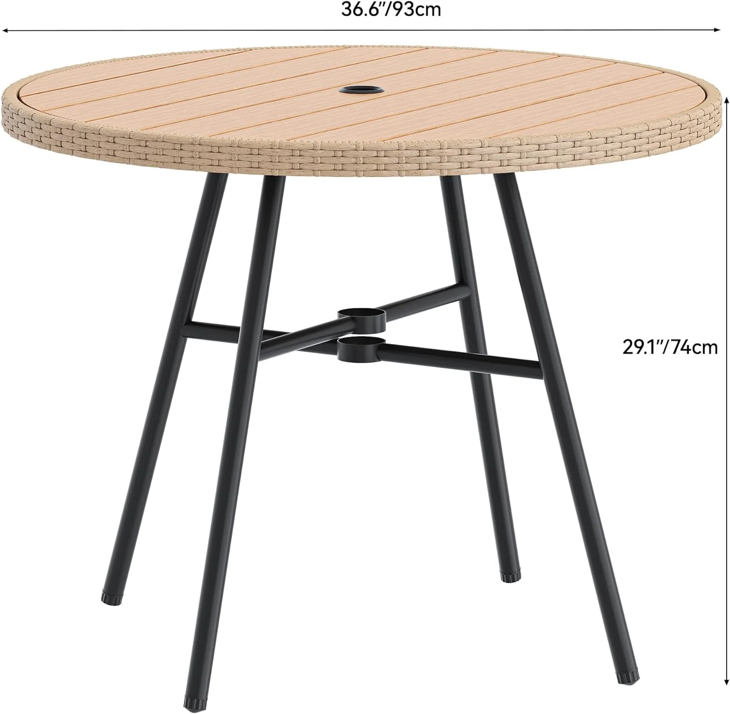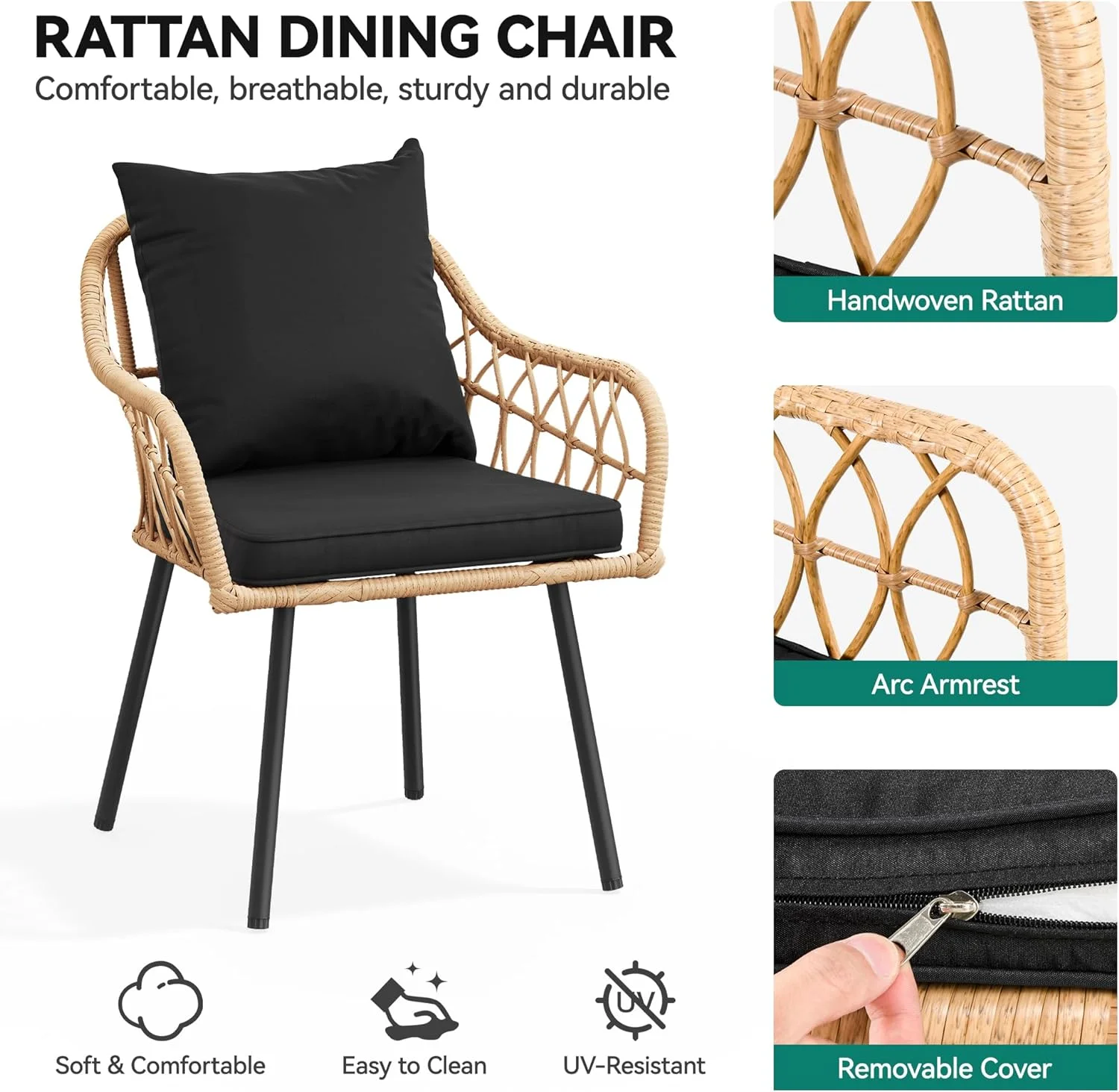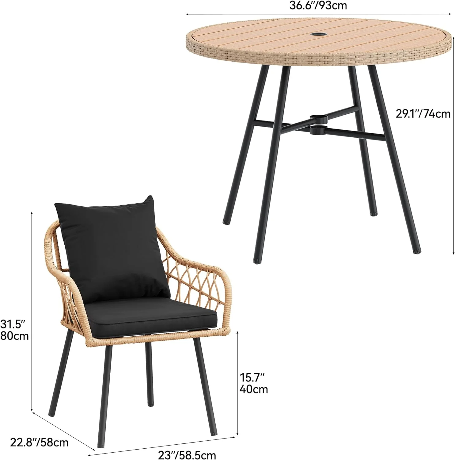 U-ToBe 5-Piece Outdoor Patio Furniture Dining Set, All-Weather Rattan Conversation Set with Soft Cushions and Plastic Wood Tabletop Dining Table for Backyard Deck (Light Brown + Black) - Curated Treasures Market