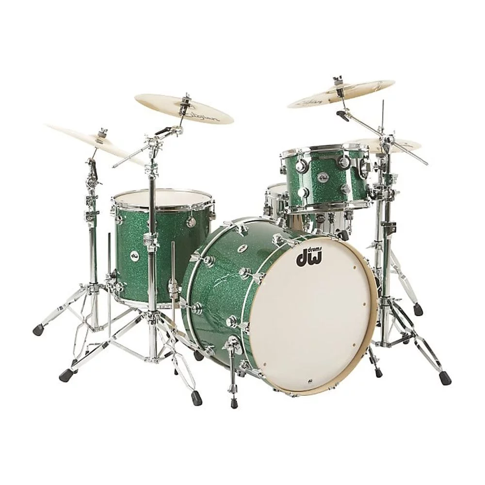 DW Collector's Series 3-Piece Shell Pack With 24" Bass Drum Green Glass Chrome Hardware - Curated Treasures Market