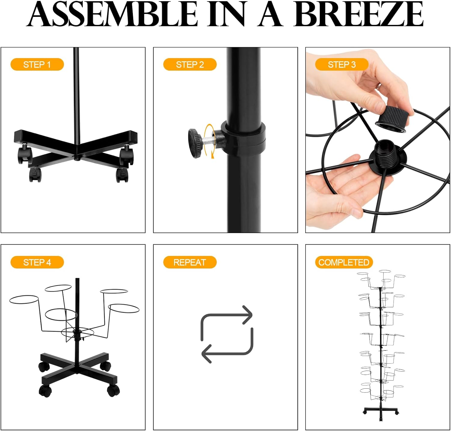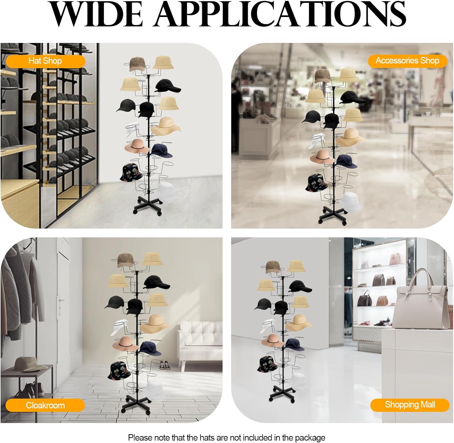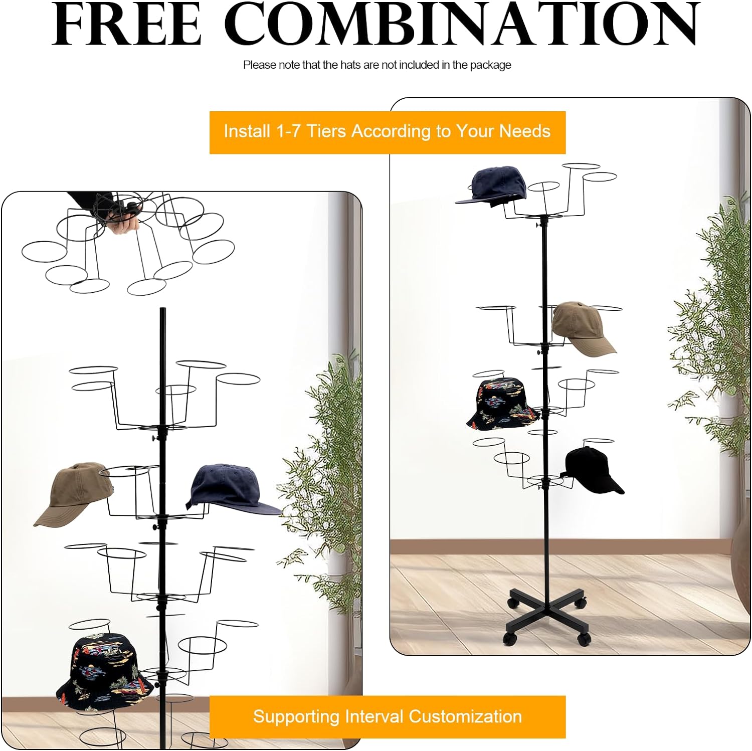 7-Tier Rotating Hat Display Rack, 35 Hooks Metal Freestanding Retail Display Stand Commercial Large Headwear Wig Rack Metal Floor Rack for Hats and Wigs - Curated Treasures Market