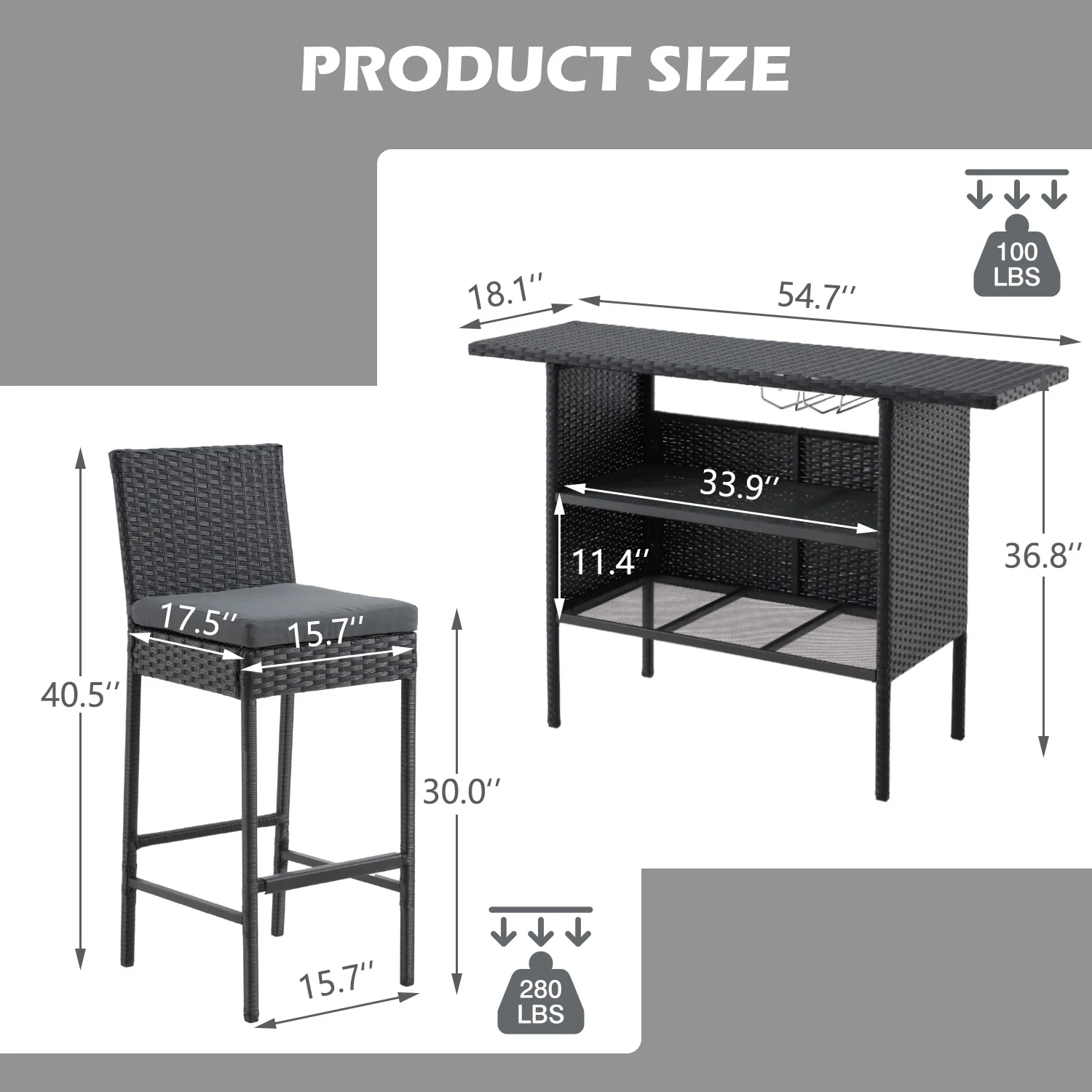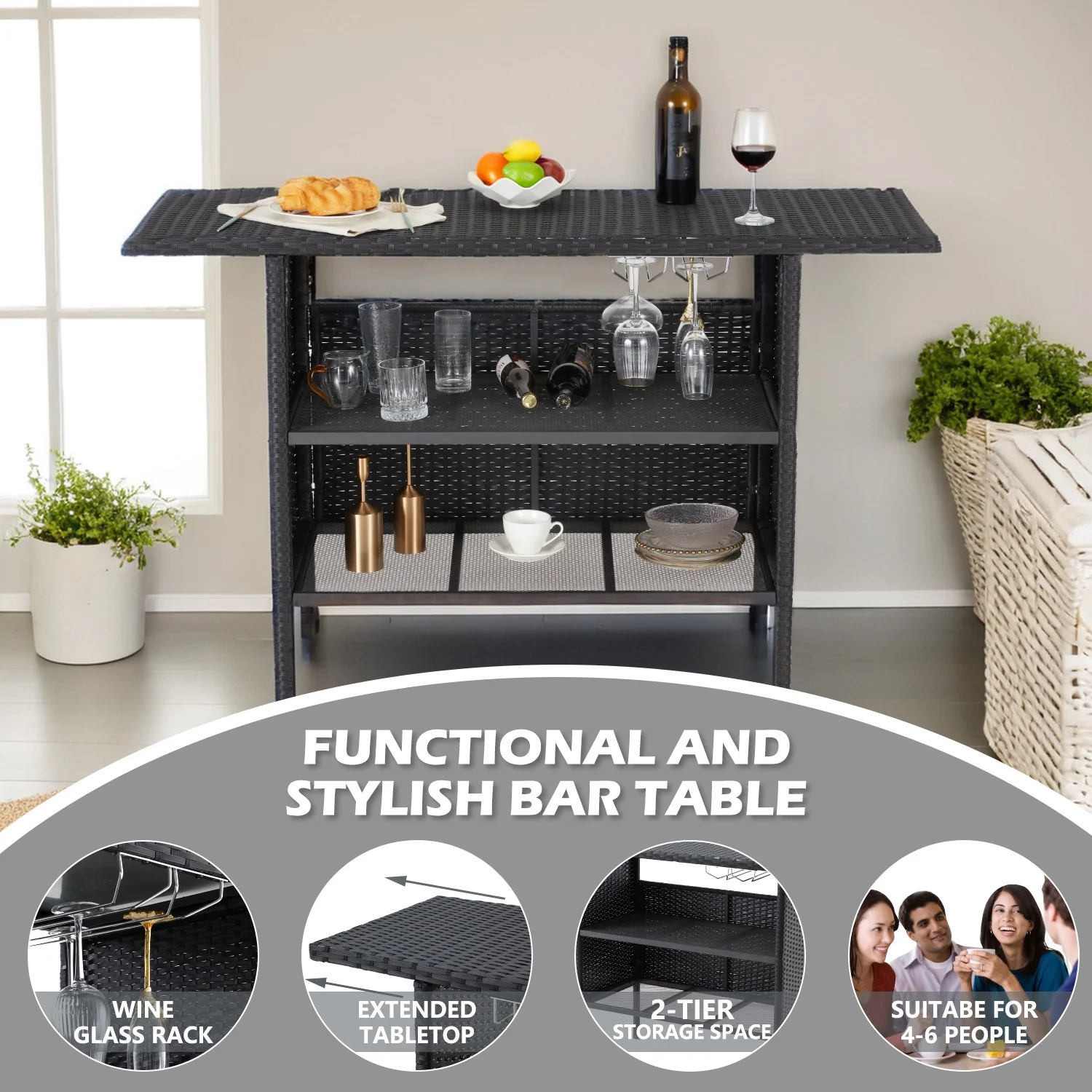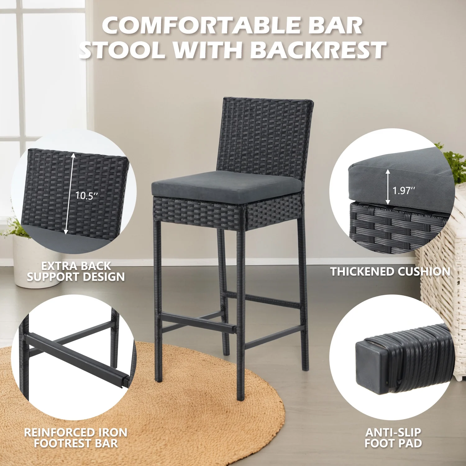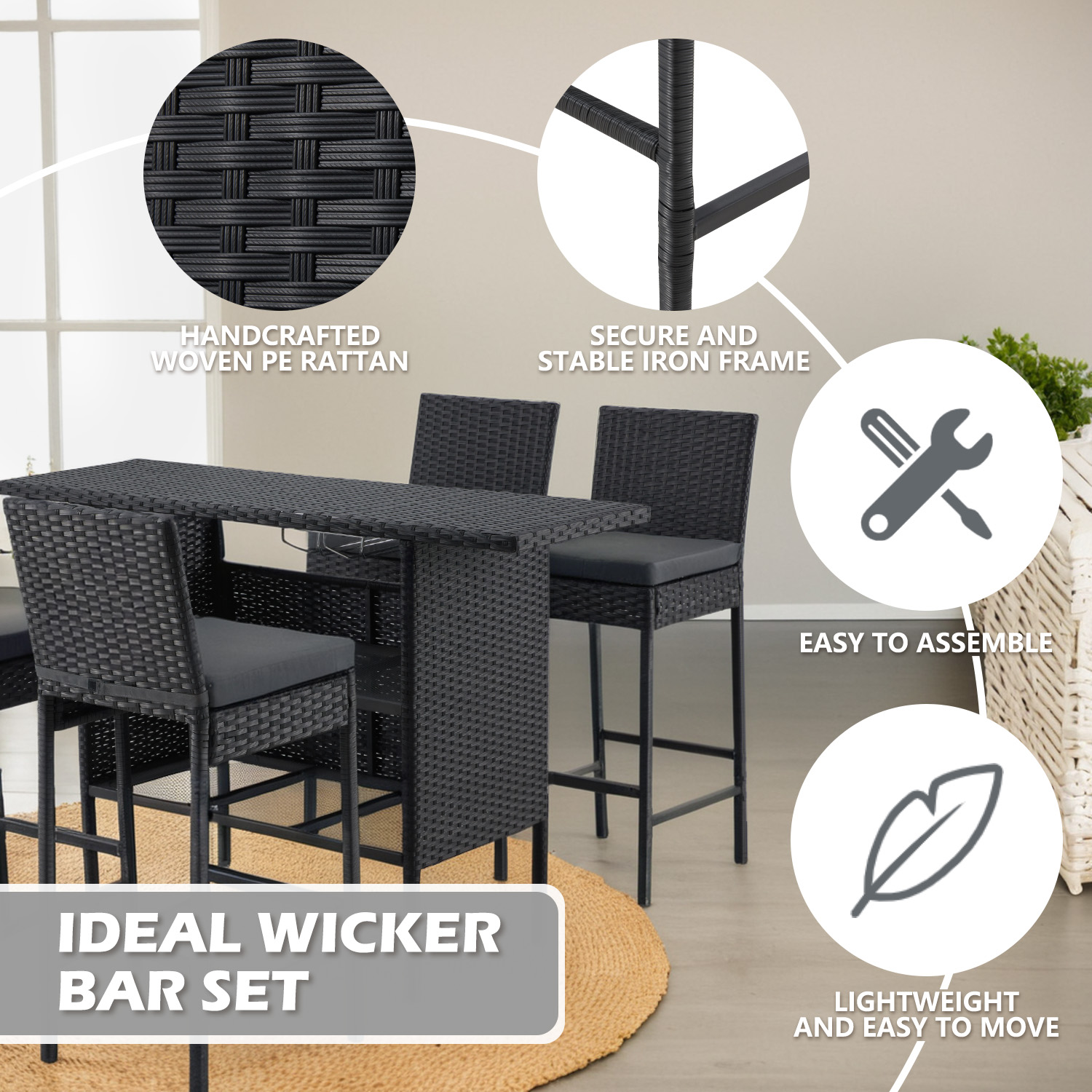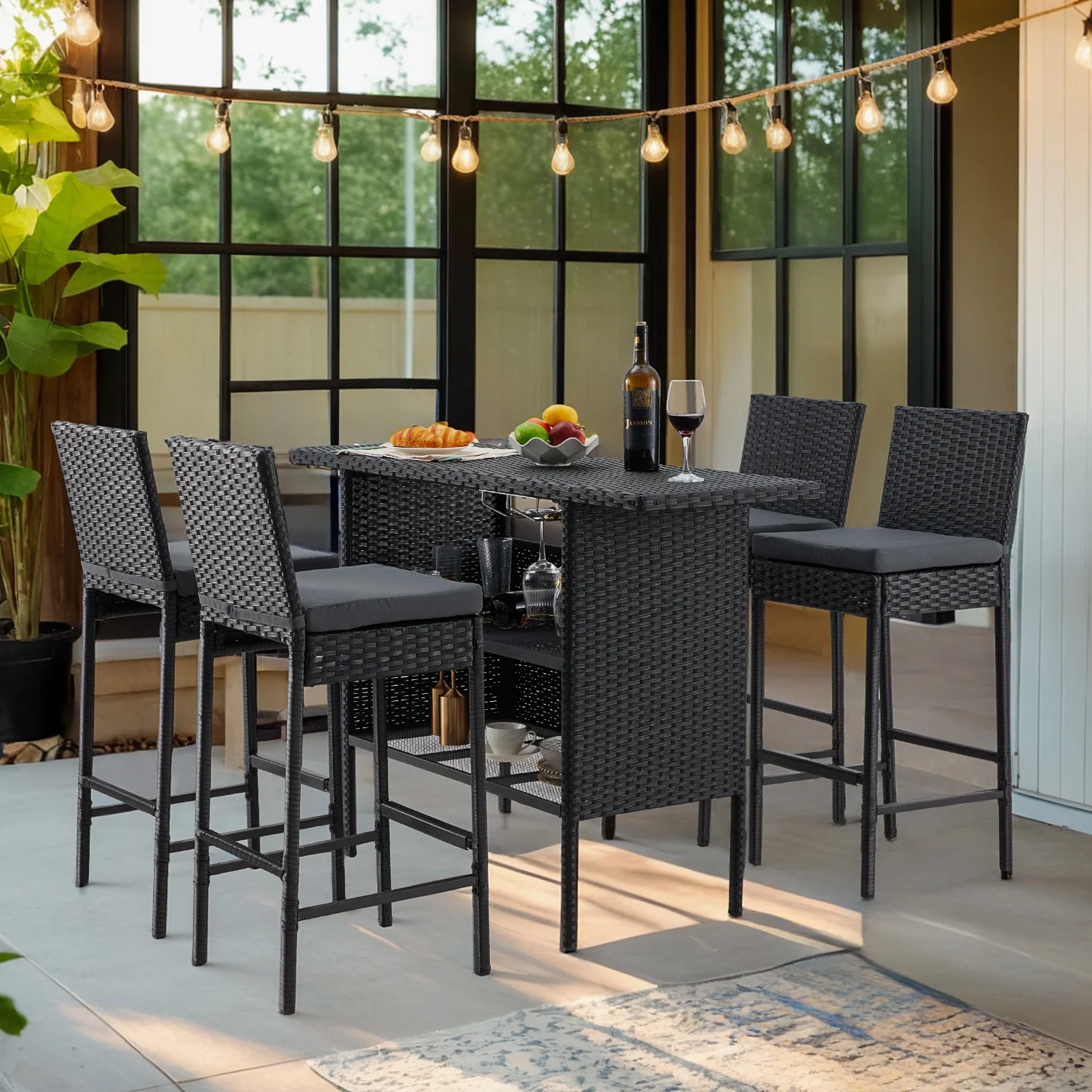 AVAWING 5PCS Outdoor Patio Rattan Bar Table and Chairs Set for 4 People w/ Removable Cushion, Black - Curated Treasures Market