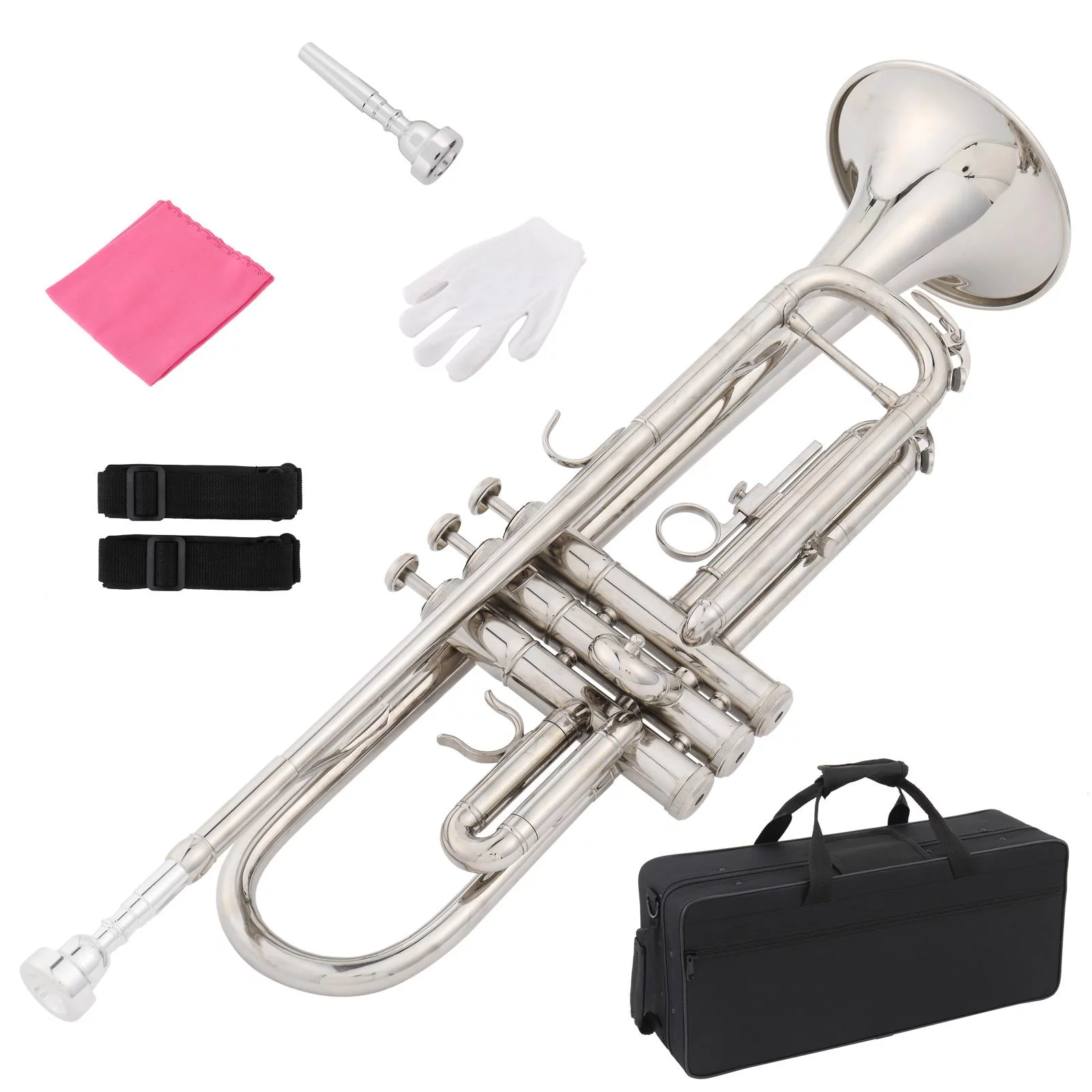 GoDecor Beginner Bb Tone Adjustable Trumpet Set with Case for Student School Band, Silver - Curated Treasures Market