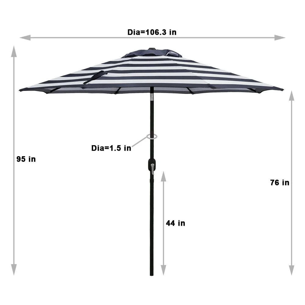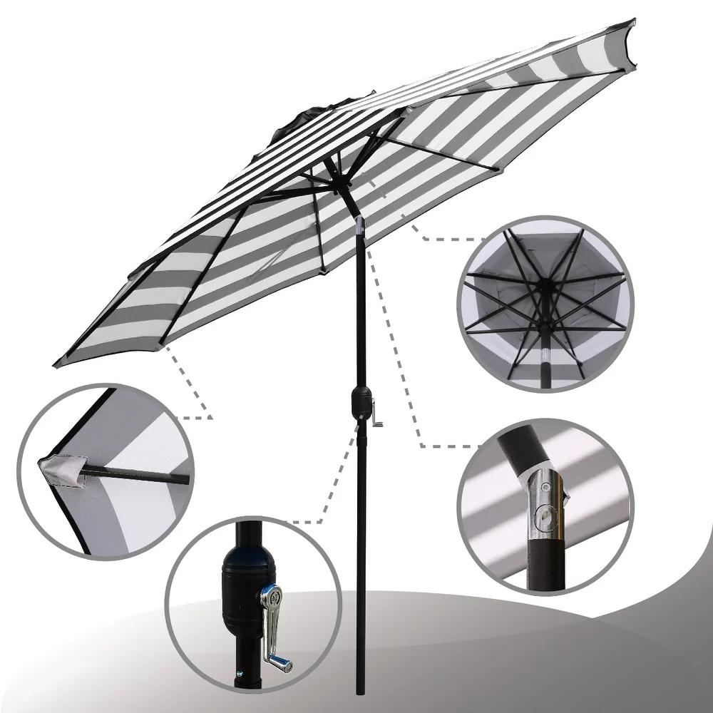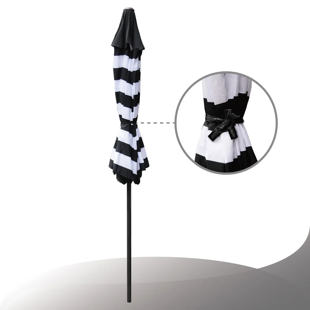 Abble Outdoor 9ft Patio Umbrella with Crank and Tilt - Black and White Stripe - Curated Treasures Market