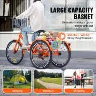 SKYSHALO 20"/ 24”/ 26" Adult Tricycle Folding Tricycle, Aluminum Alloy Brakes & Fast-Assembly, 3 Wheel Bikes 1 Speed Trikes with Shopping Basket for Seniors Adult, Vibrant Orange (24 Inches) - Curated Treasures Market