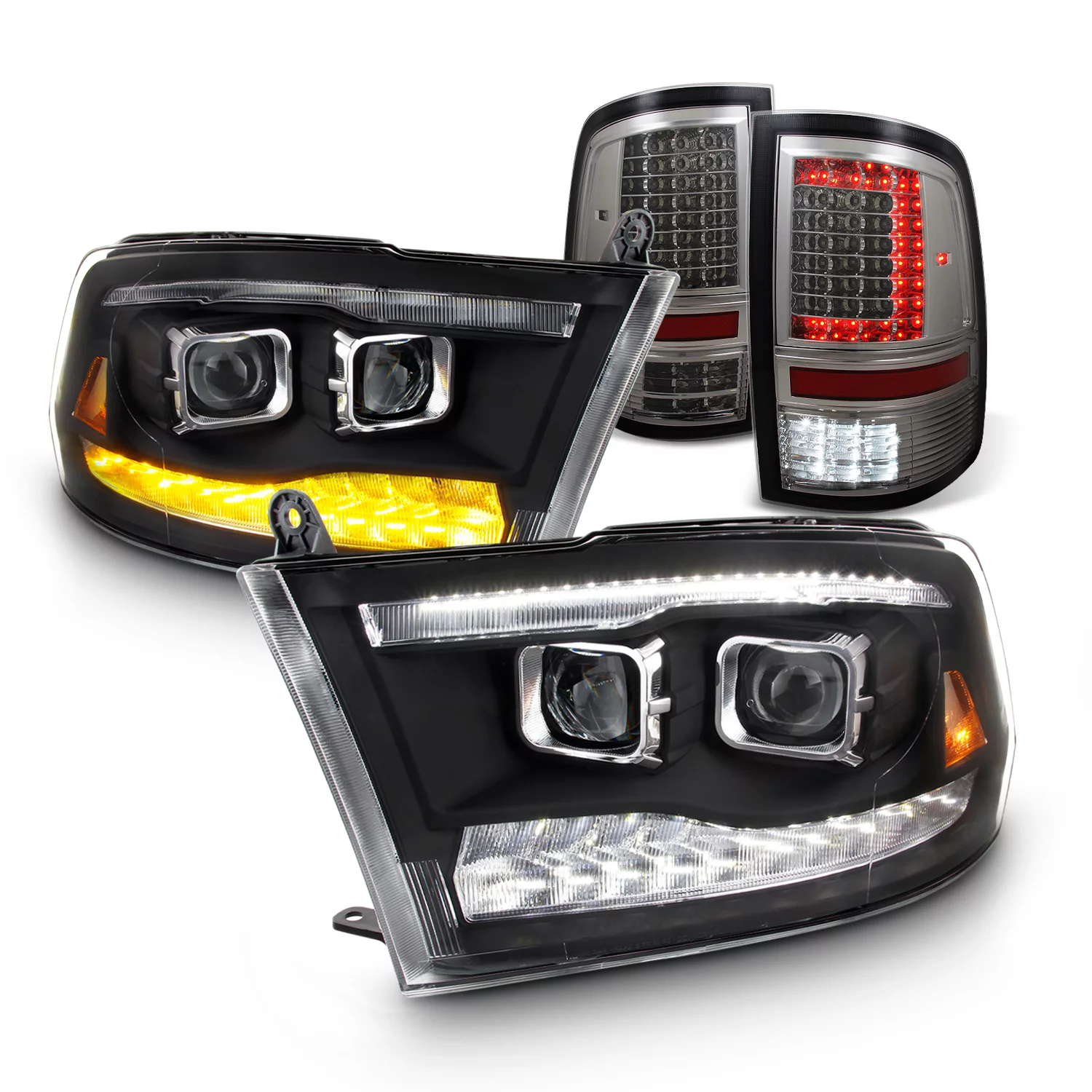 AKKON - For 2009-2018 Dodge Ram 1500 2500 3500 Superior LED Headlight Housing + Tail Light Smoke Style - Curated Treasures Market