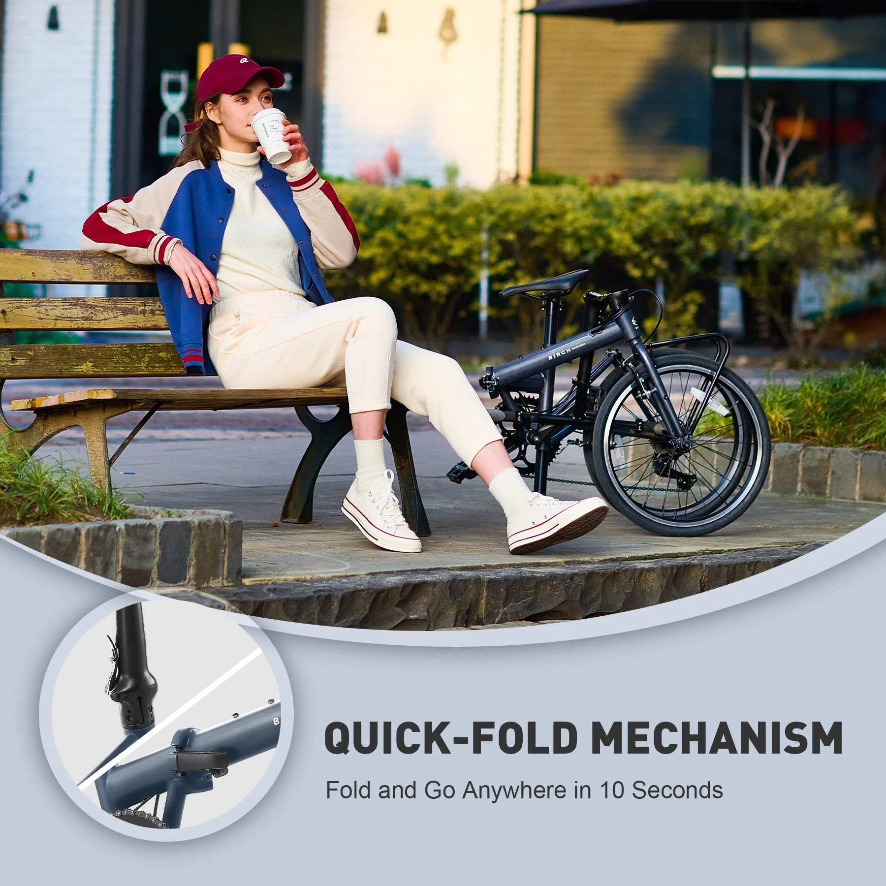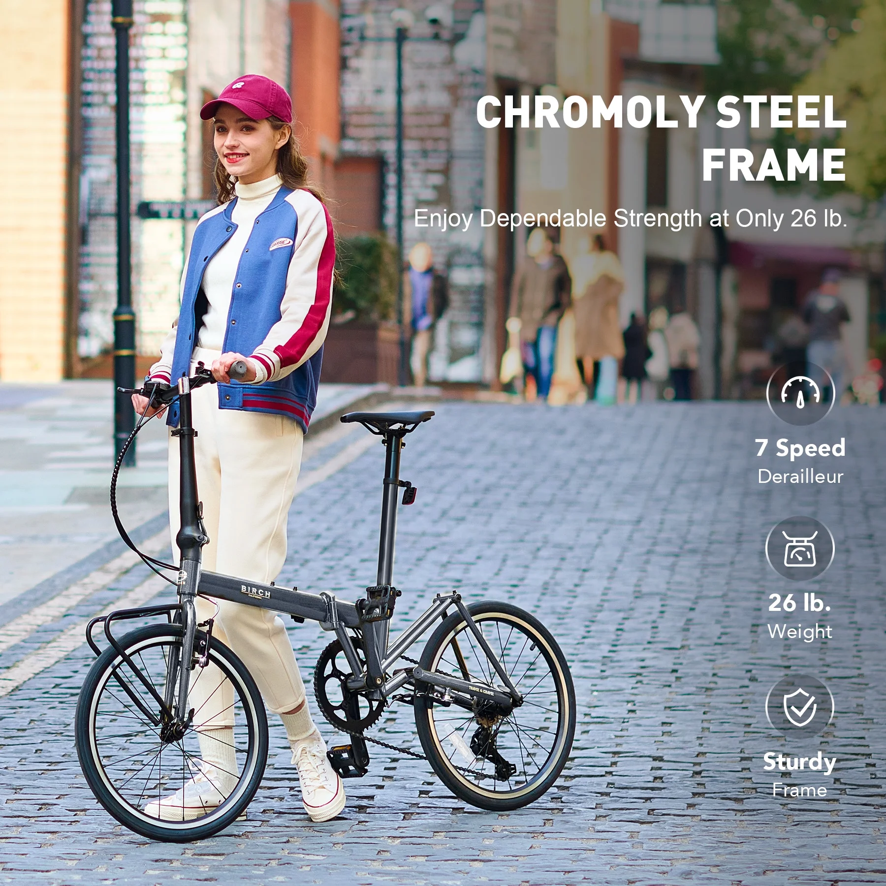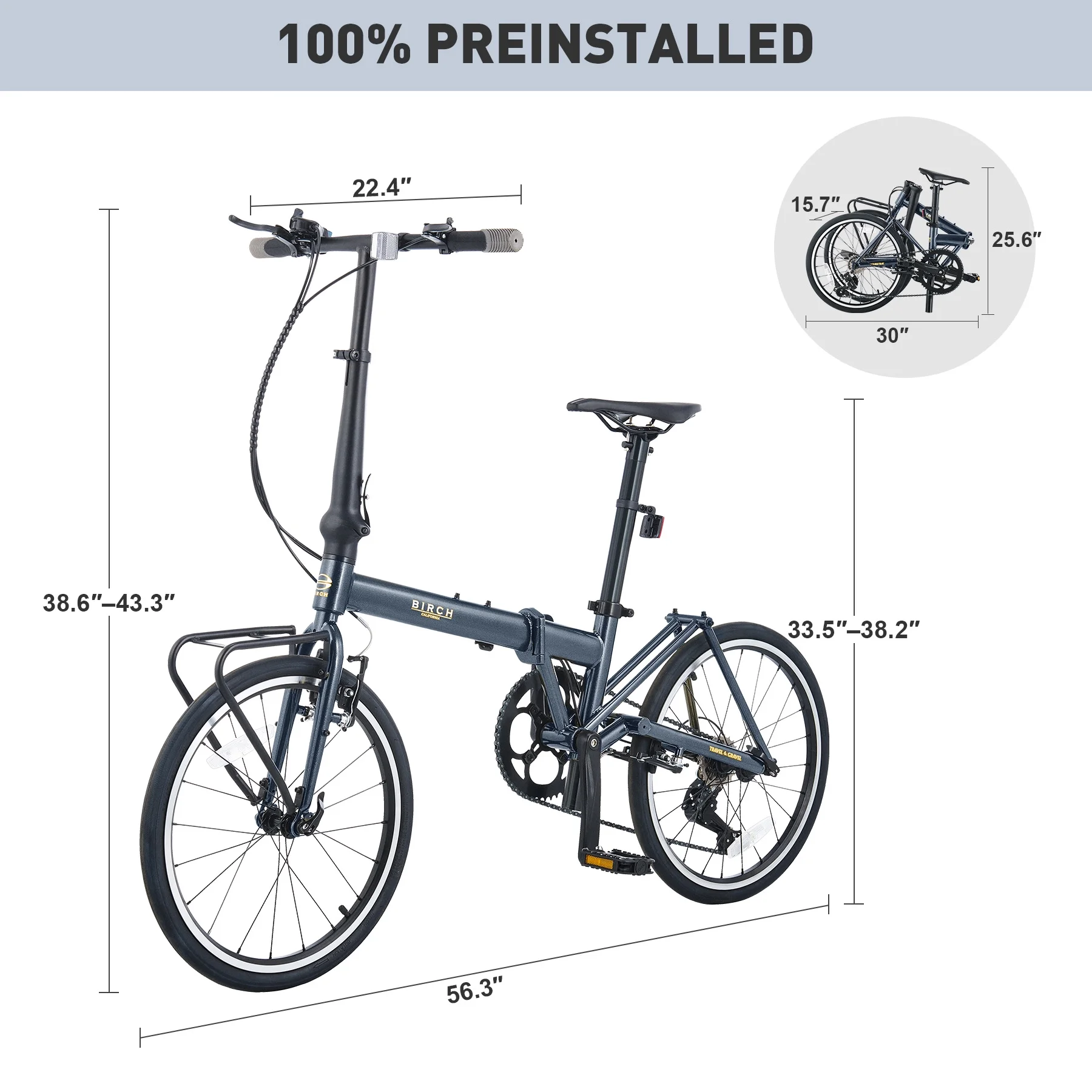 Birch 20 Inch Folding Bike for Adult Shimano 7 Speed with Front Storage Rack Dual V Brakes 100% Preinstalled, Gray - Curated Treasures Market