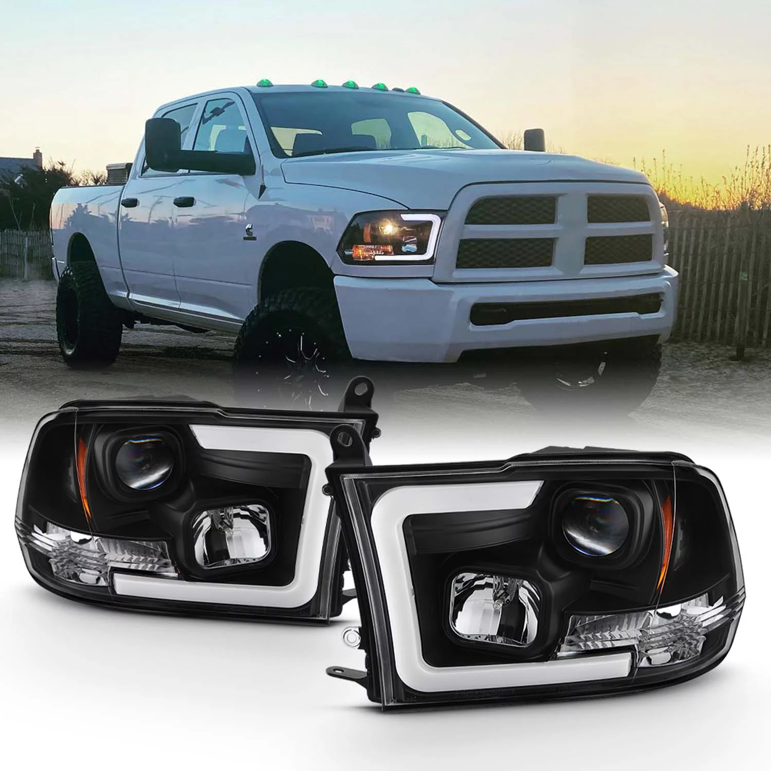 AKKON - For 2009-2018 Dodge Ram 1500 2500 3500 Truck LED Tube Black Projector Headlights Left+Right Replacement - Curated Treasures Market