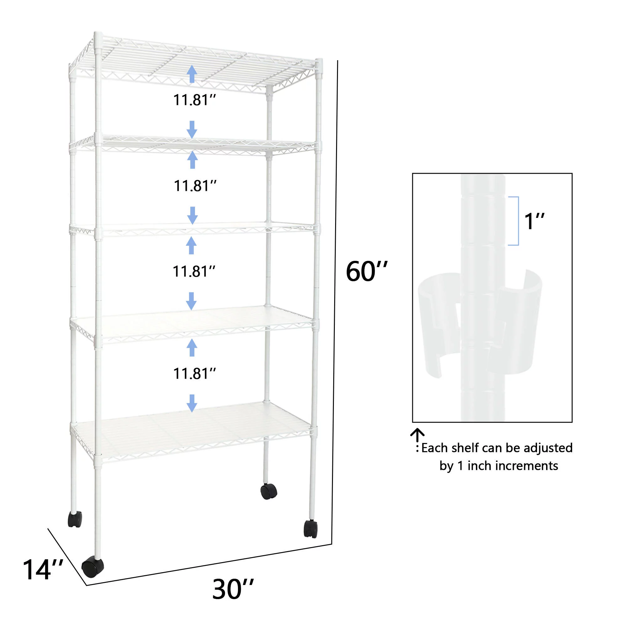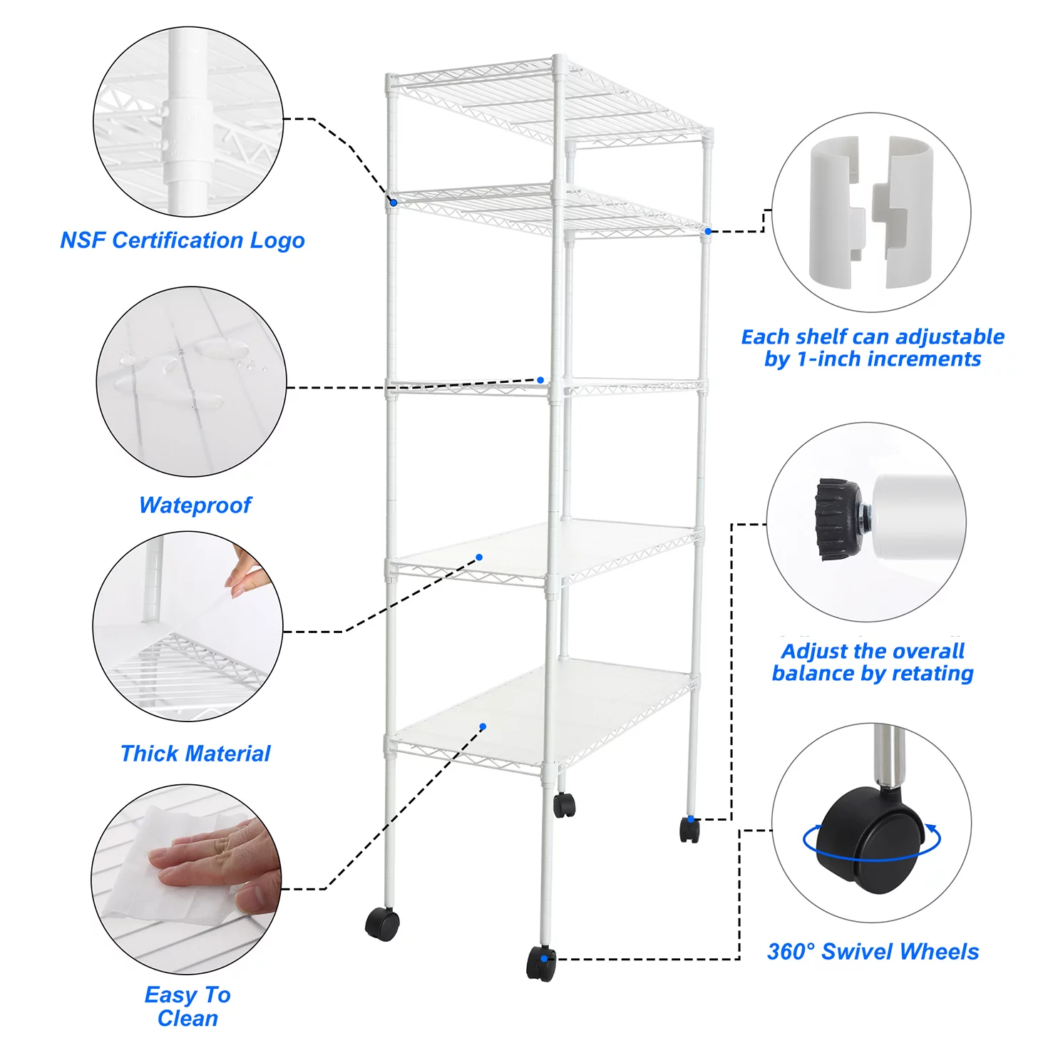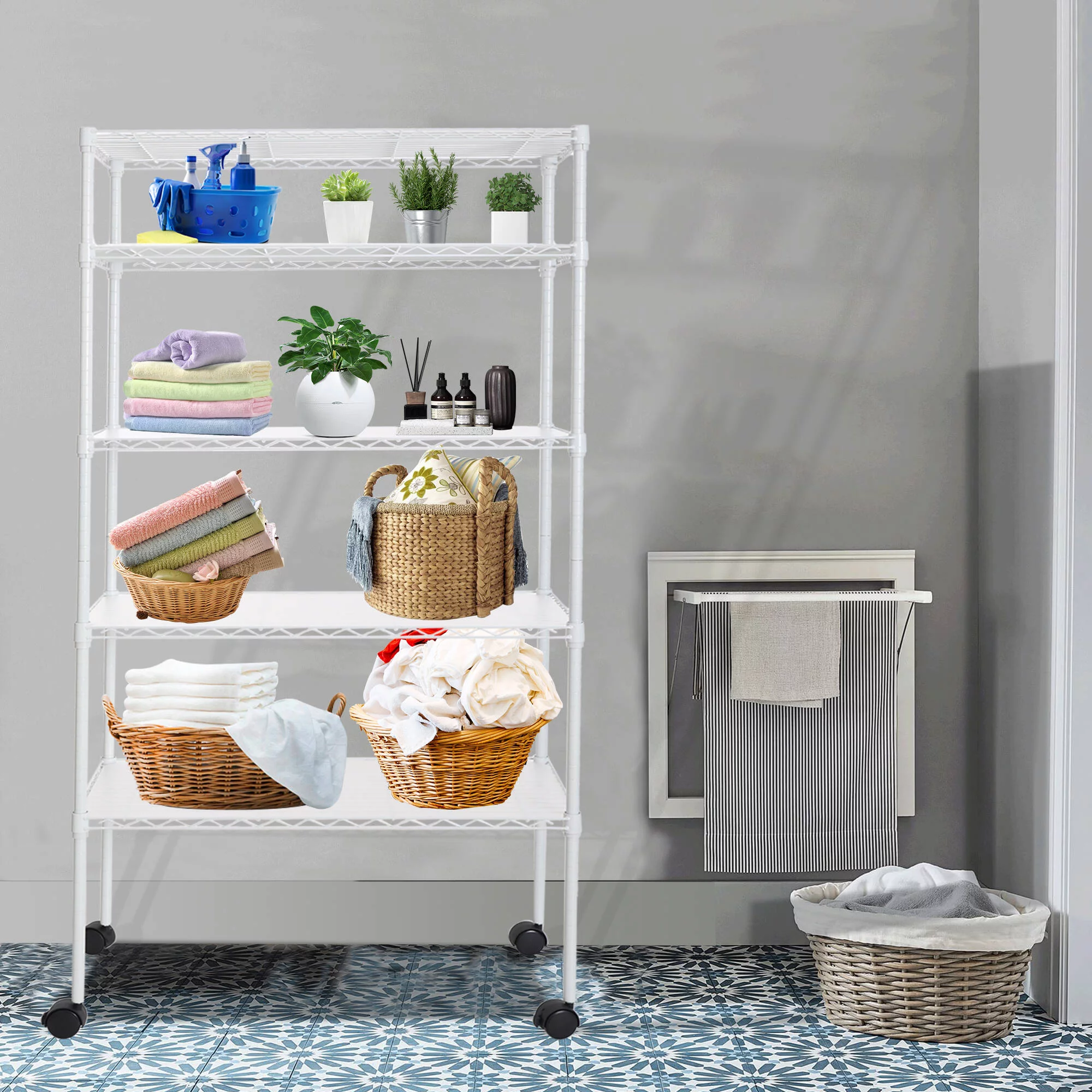 Ufurpie 5-Tier 750 lbs Metal Shelving Unit with Wheels,Adjustable Wire Large Storage Shelves,for Kitchen Garage Bathroom,White - Curated Treasures Market