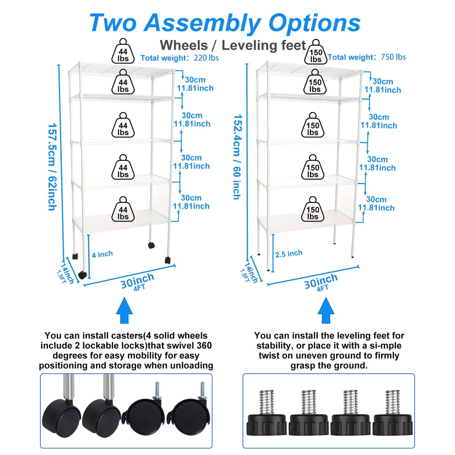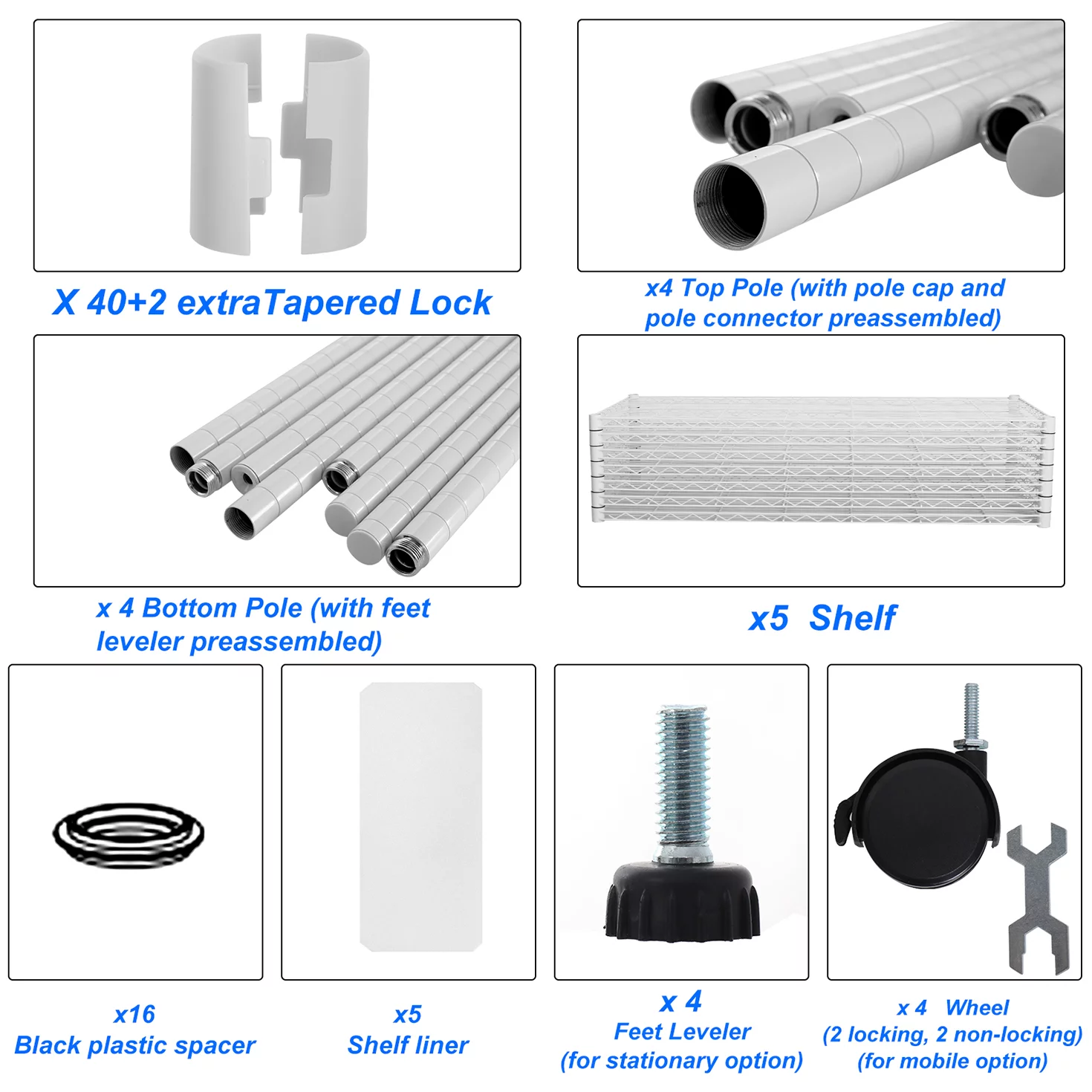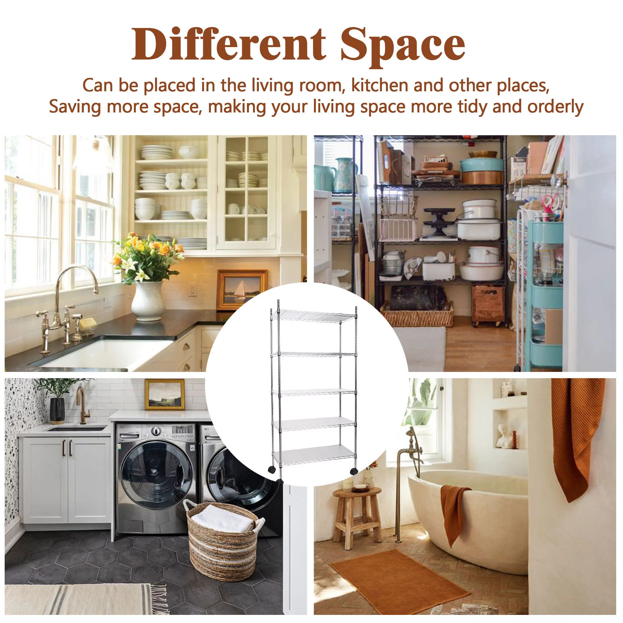 Ufurpie 5-Tier 750 lbs Metal Shelving Unit with Wheels,Adjustable Wire Large Storage Shelves,for Kitchen Garage Bathroom,White - Curated Treasures Market