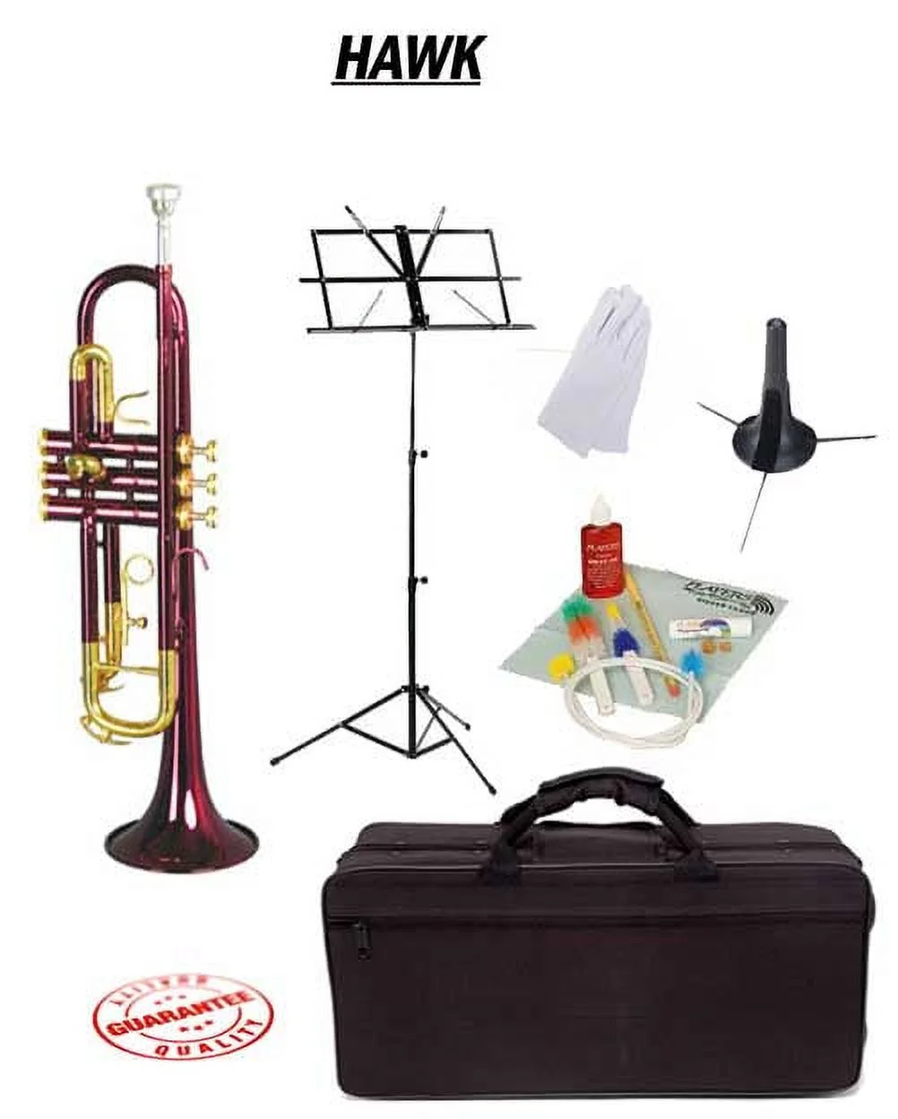 Hawk Purple Bb Trumpet School Package with Case, Music Stand, Trumpet Stand and Cleaning Kit - Curated Treasures Market