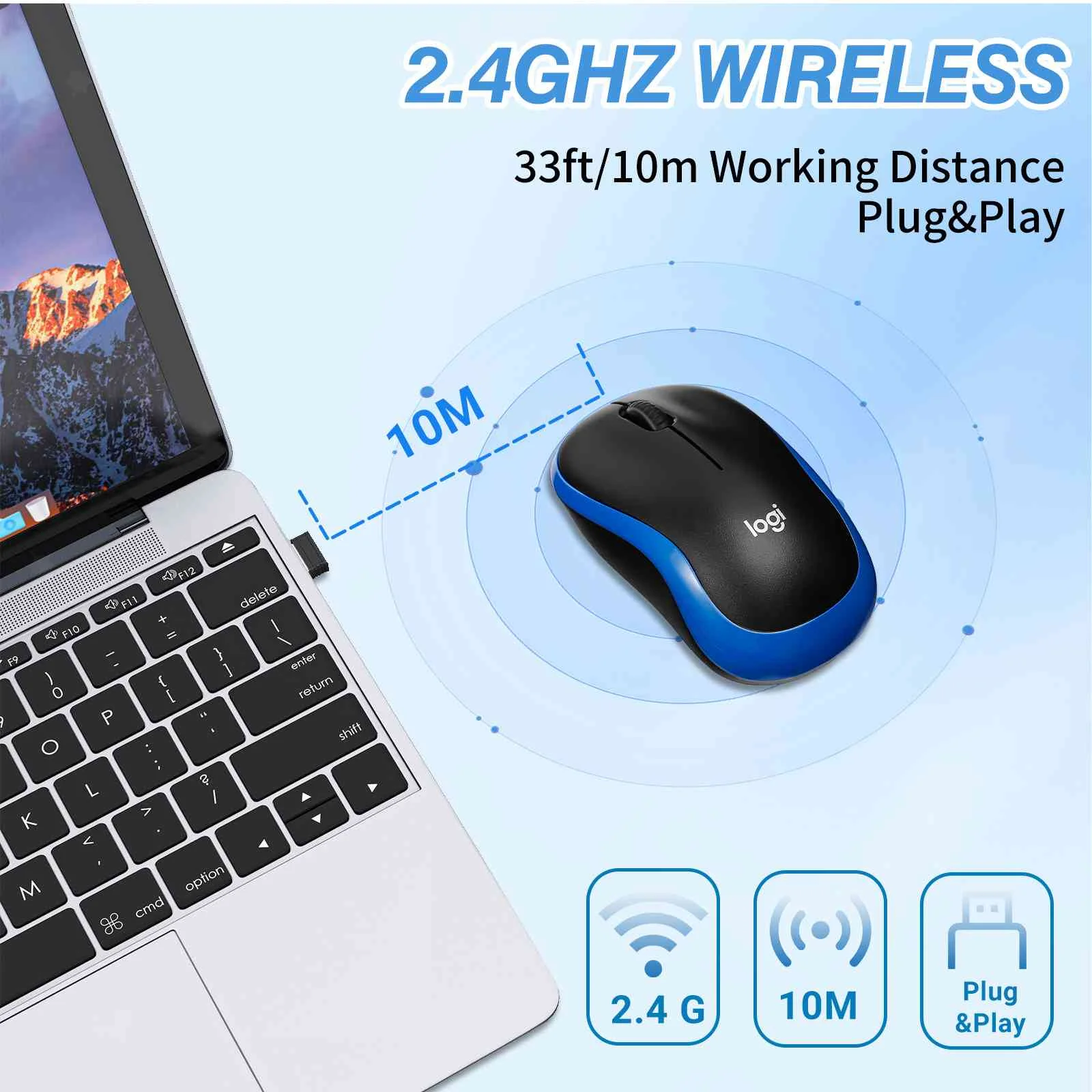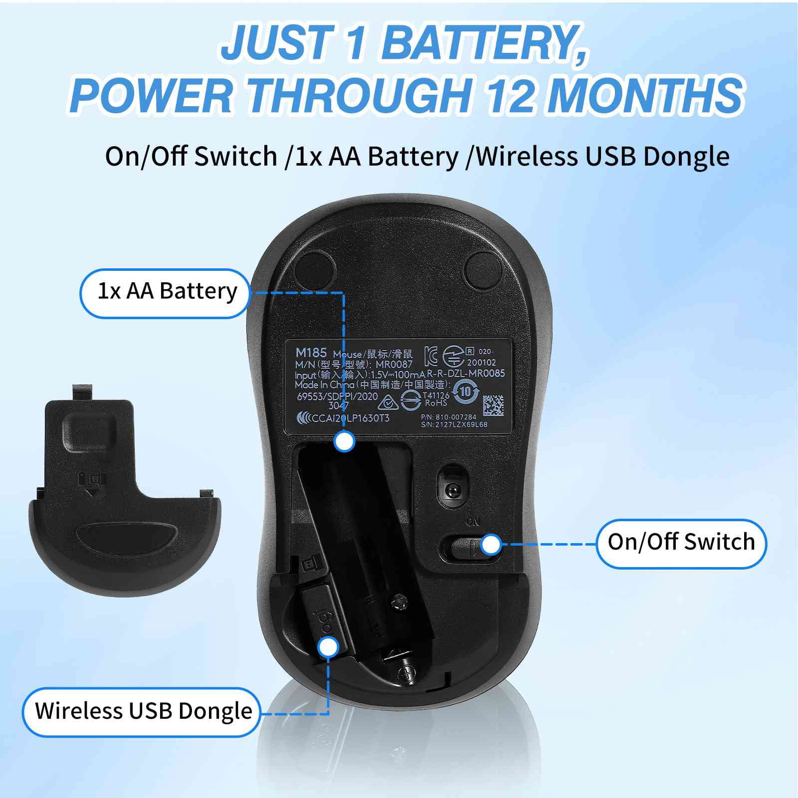 Wireless Optical Mouse - Logi M185 Plug-and-Play, Long Battery Life, Comfort Design, for Left and Right-Handed Use - Compatible with CORSAIR Laptops and All Operating Systems -Blue - Curated Treasures Market