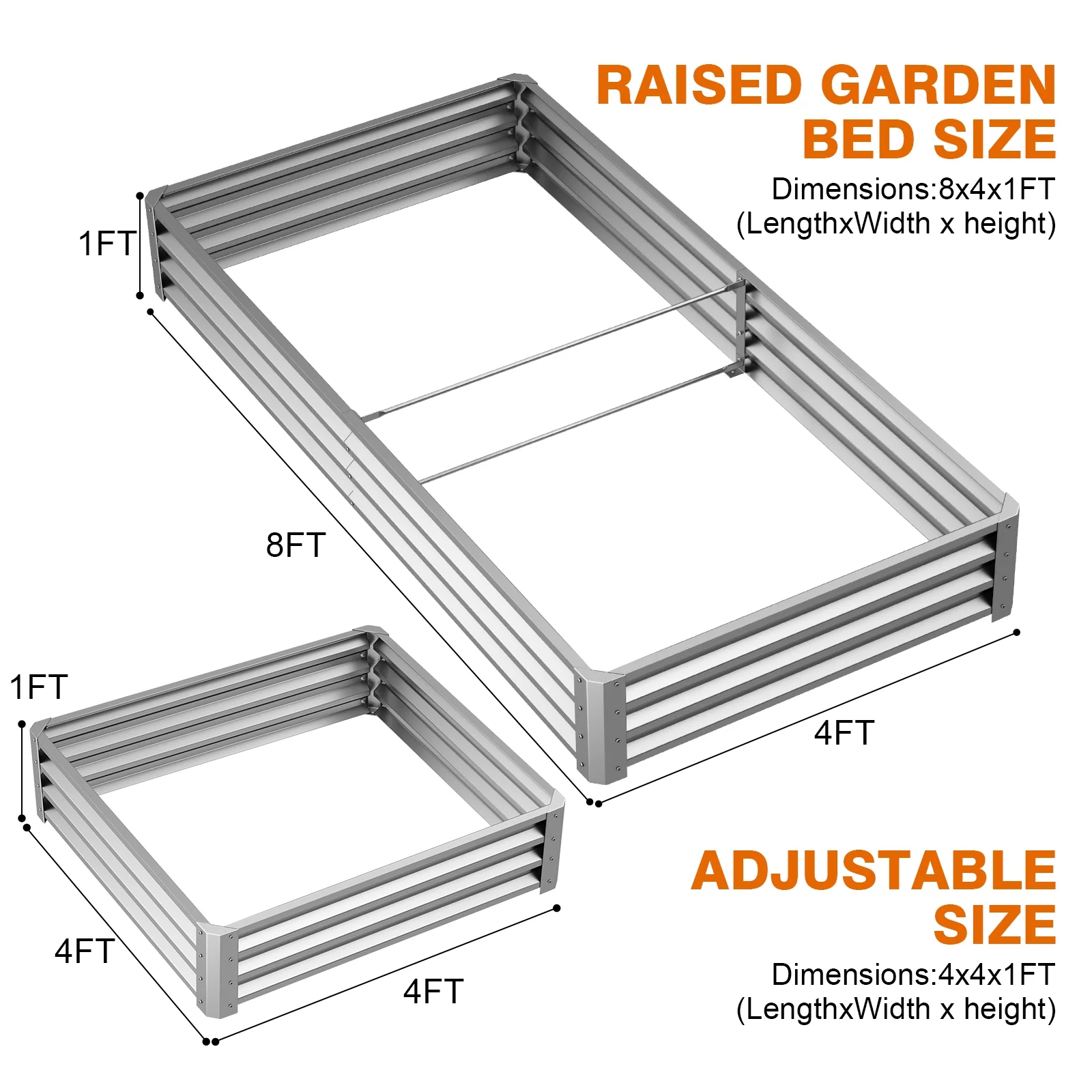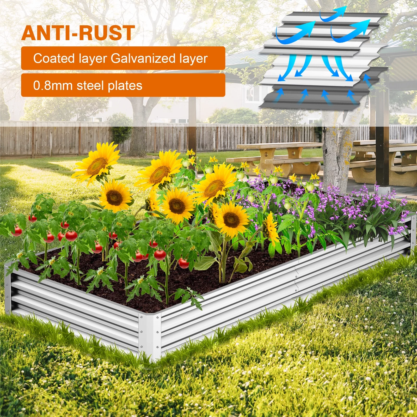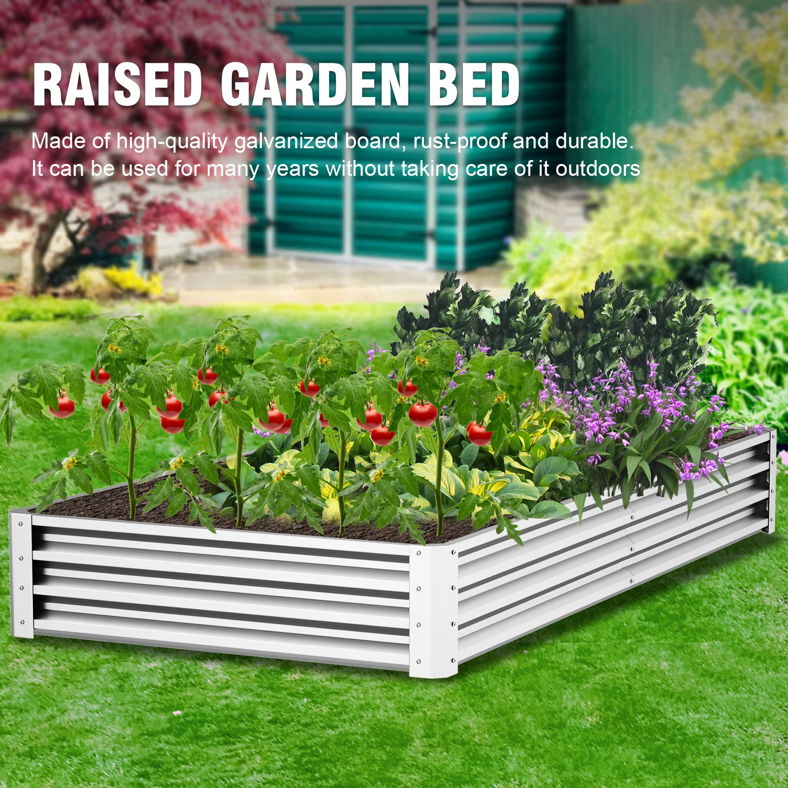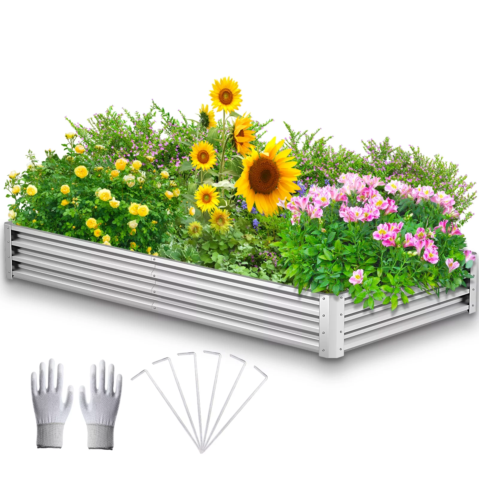 YEOPGYEON 8*4*1ft Galvanized Raised Garden Bed Outdoor for Vegetables Flowers Herb, Large Heavy Metal Planter Box Steel Kit with Metal Stake to Fix - Curated Treasures Market
