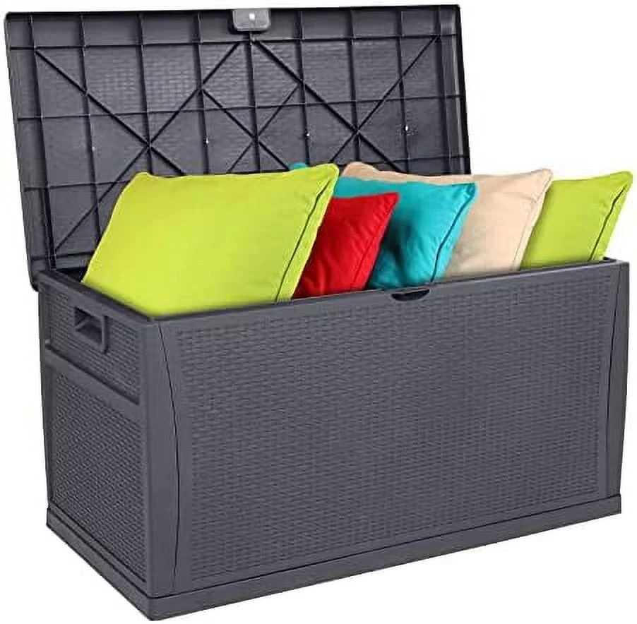 TJCGDTY Upgraded 120 Gallon Outdoor Box Lockable Plastic Containers with Lid Rattan Grain Surface Deck Box Patio for Garden Pool Balcony Yard (Black) - Curated Treasures Market