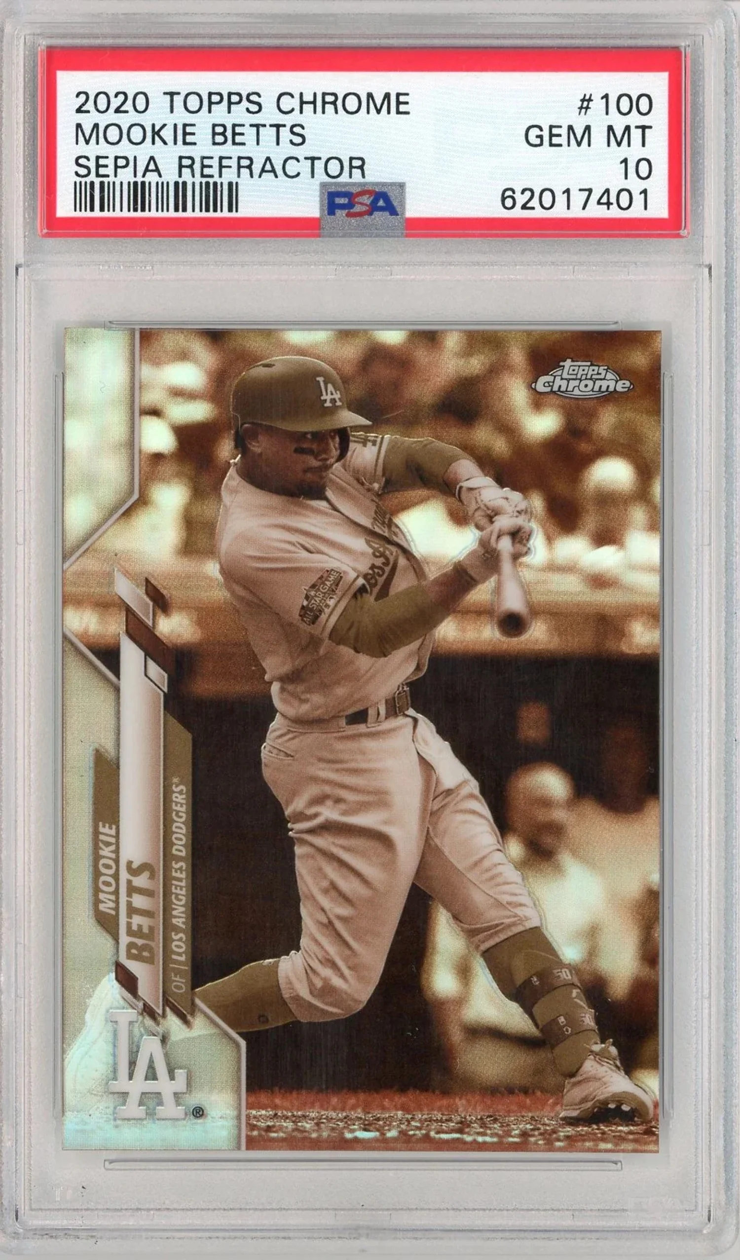 Graded 2020 Topps Chrome Mookie Betts #100 Sepia Refractor Baseball Card PSA 10 Gem Mint - Curated Treasures Market