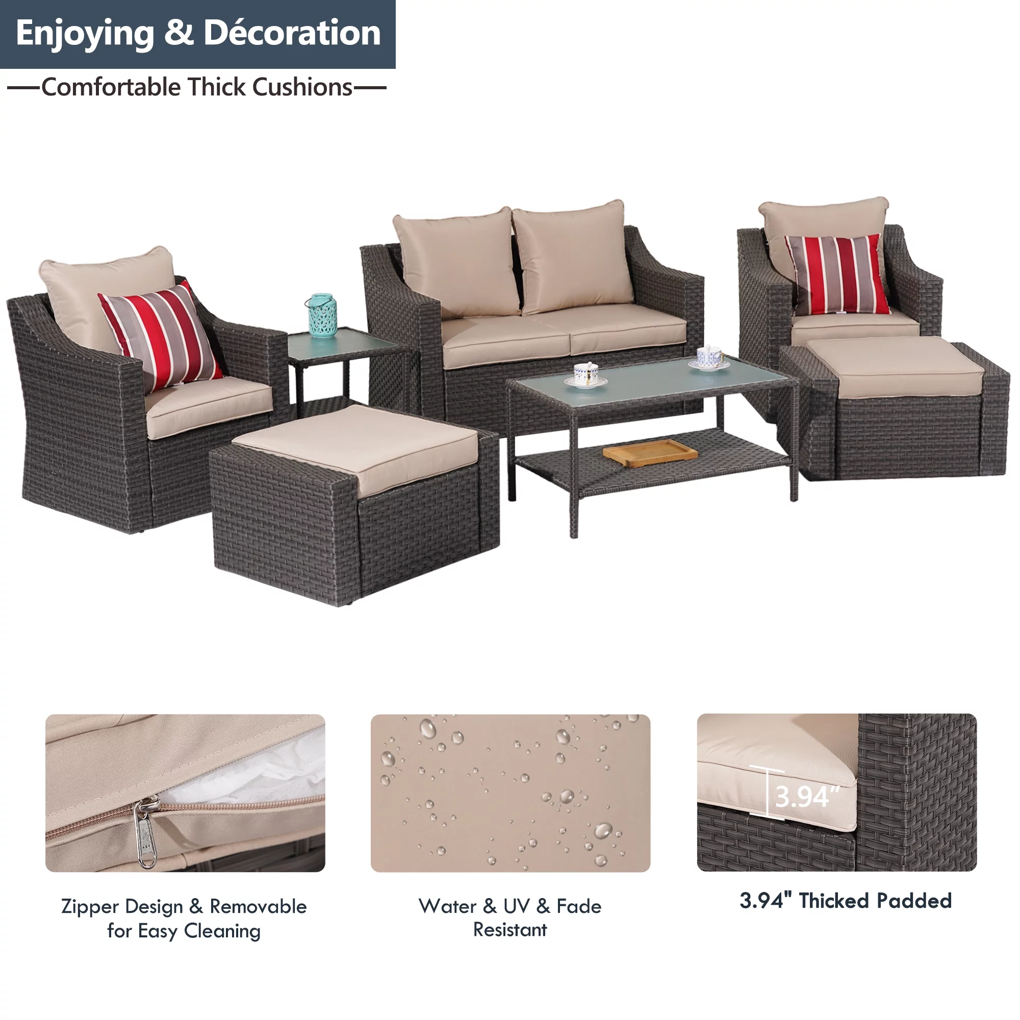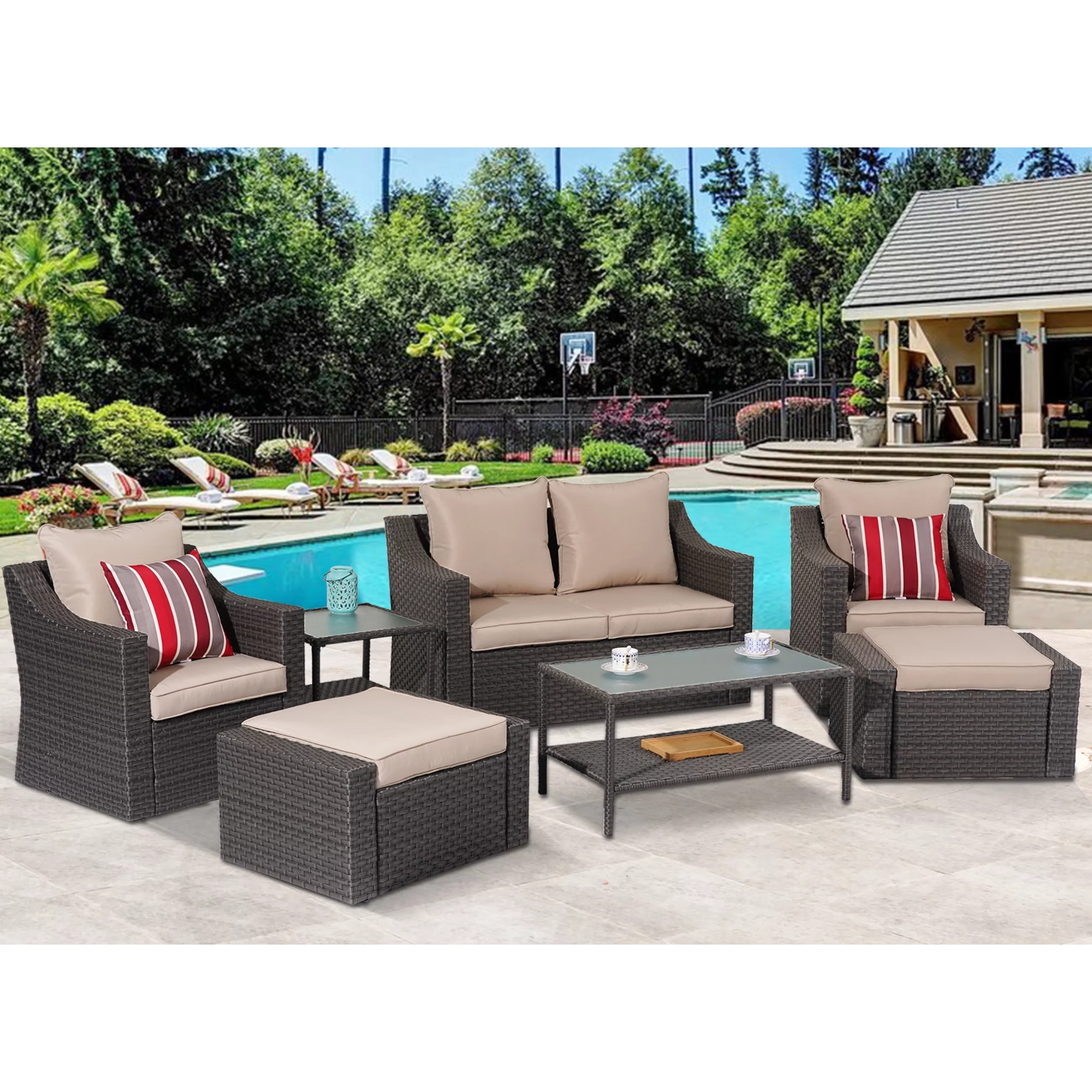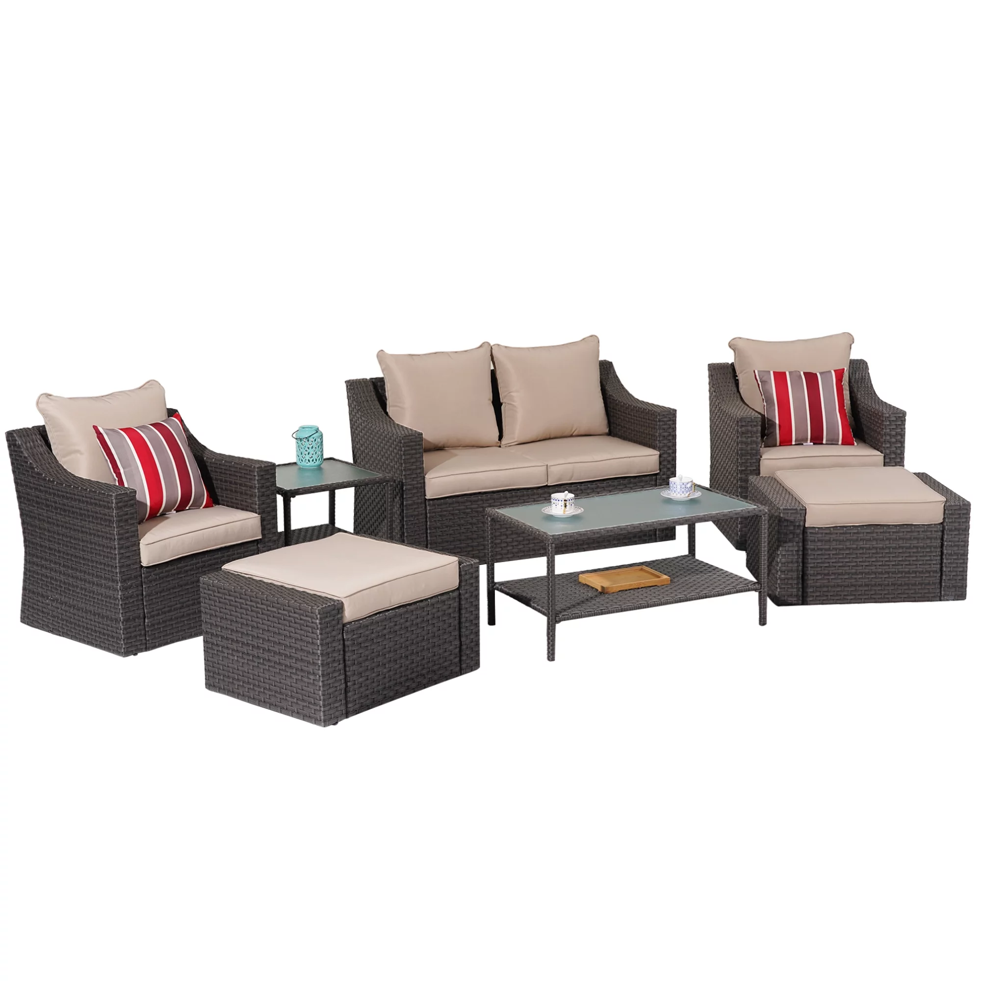 Superjoe 7 Pcs Outdoor Patio Furniture Sets All-Weather PE Rattan Wicker Sectional Sofa with Coffee Table, Brown - Curated Treasures Market
