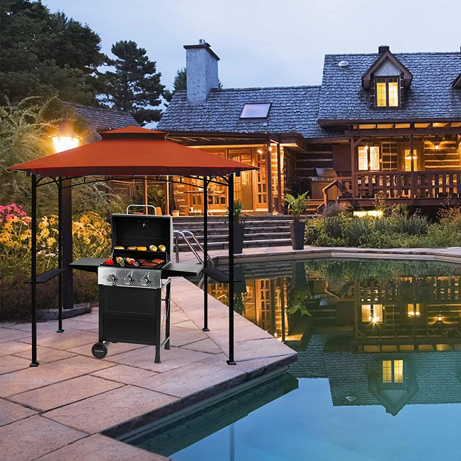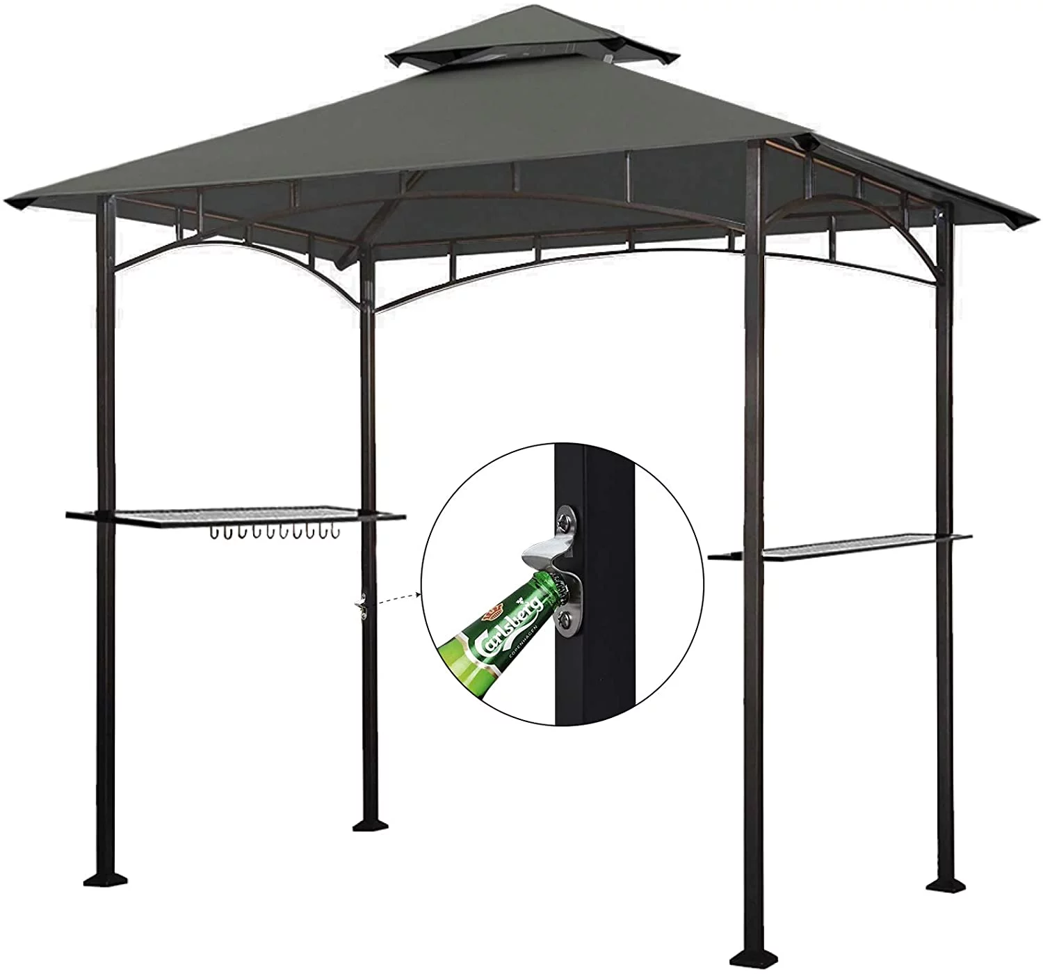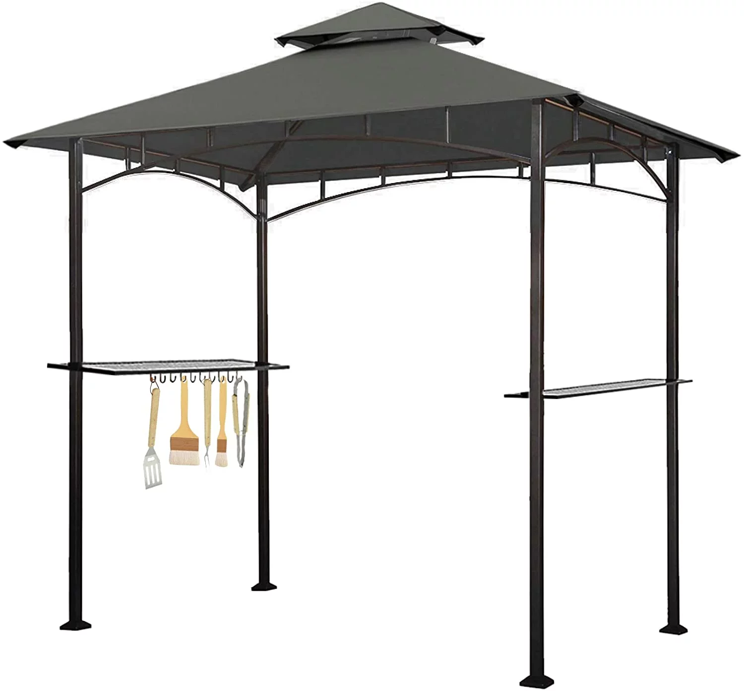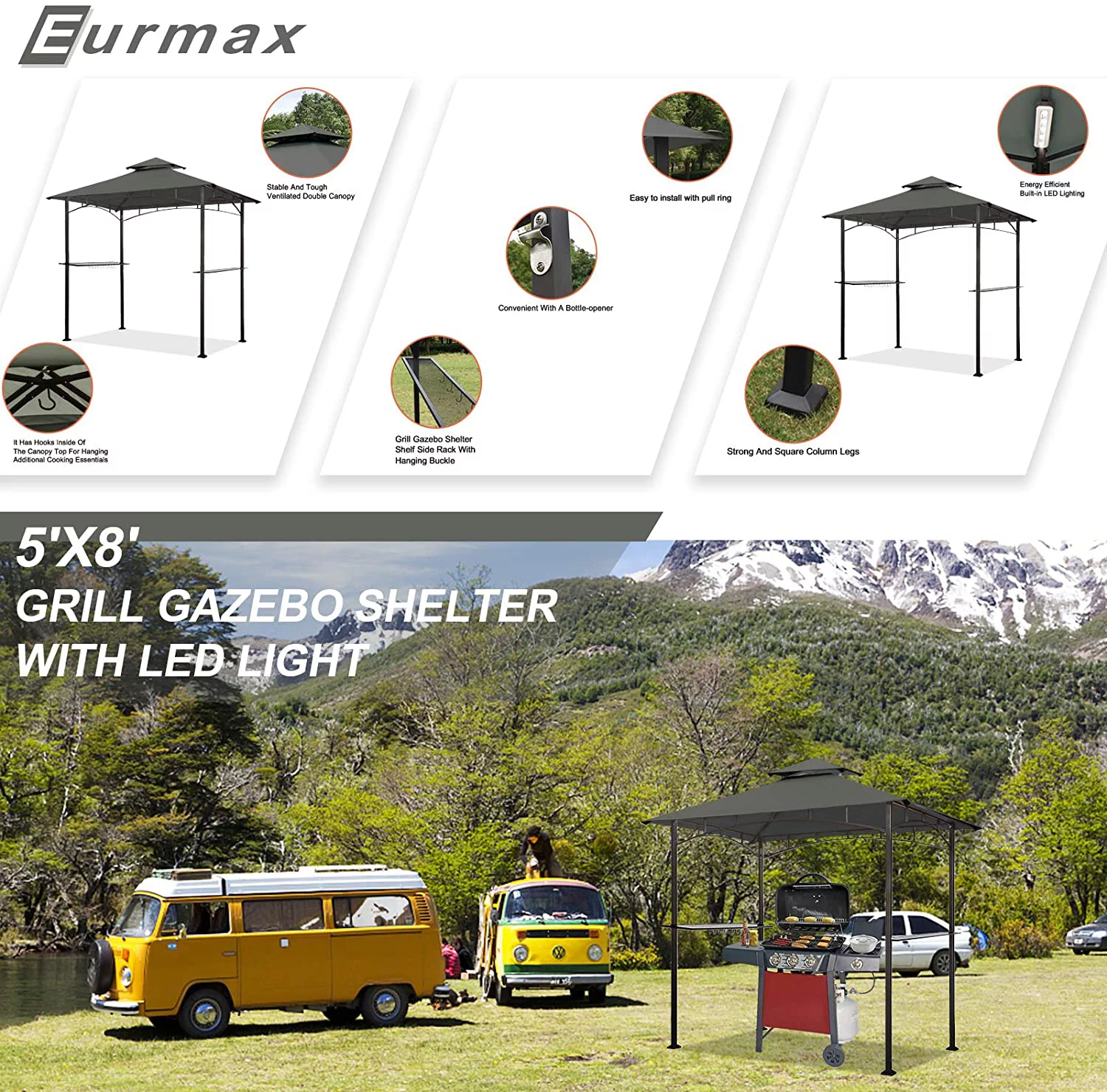Eurmax 5x8 Grill Gazebo for Patio and Outdoor Backyard BBQ's,with Bar Counters, Bonus LED Light X2(Grey) - Curated Treasures Market