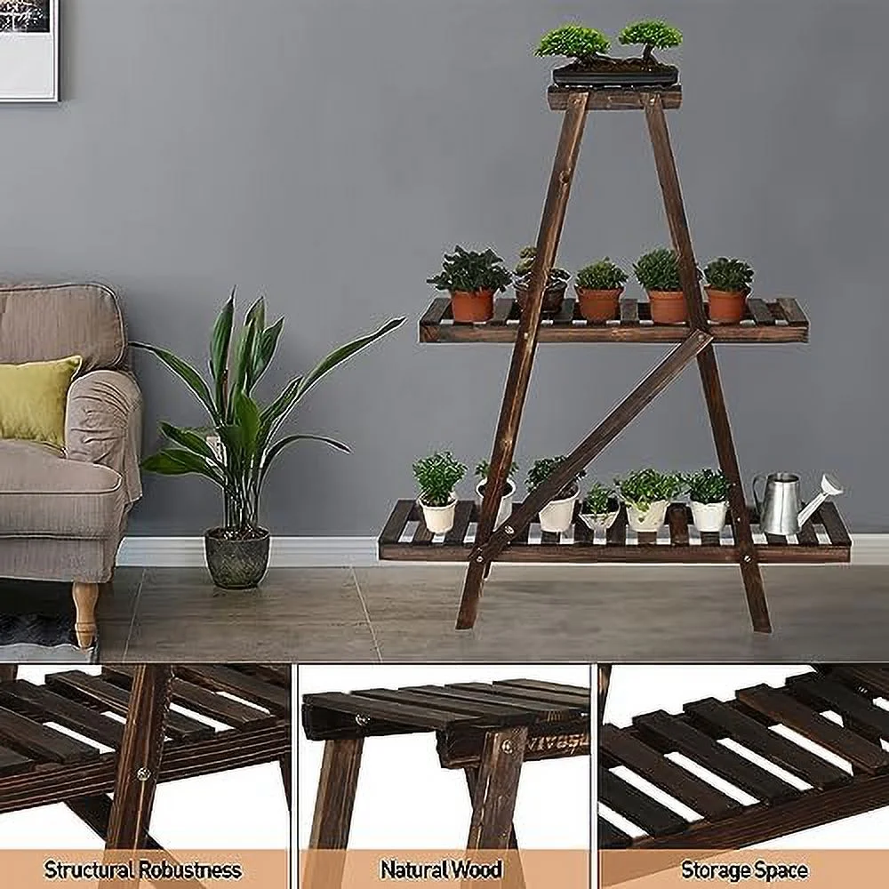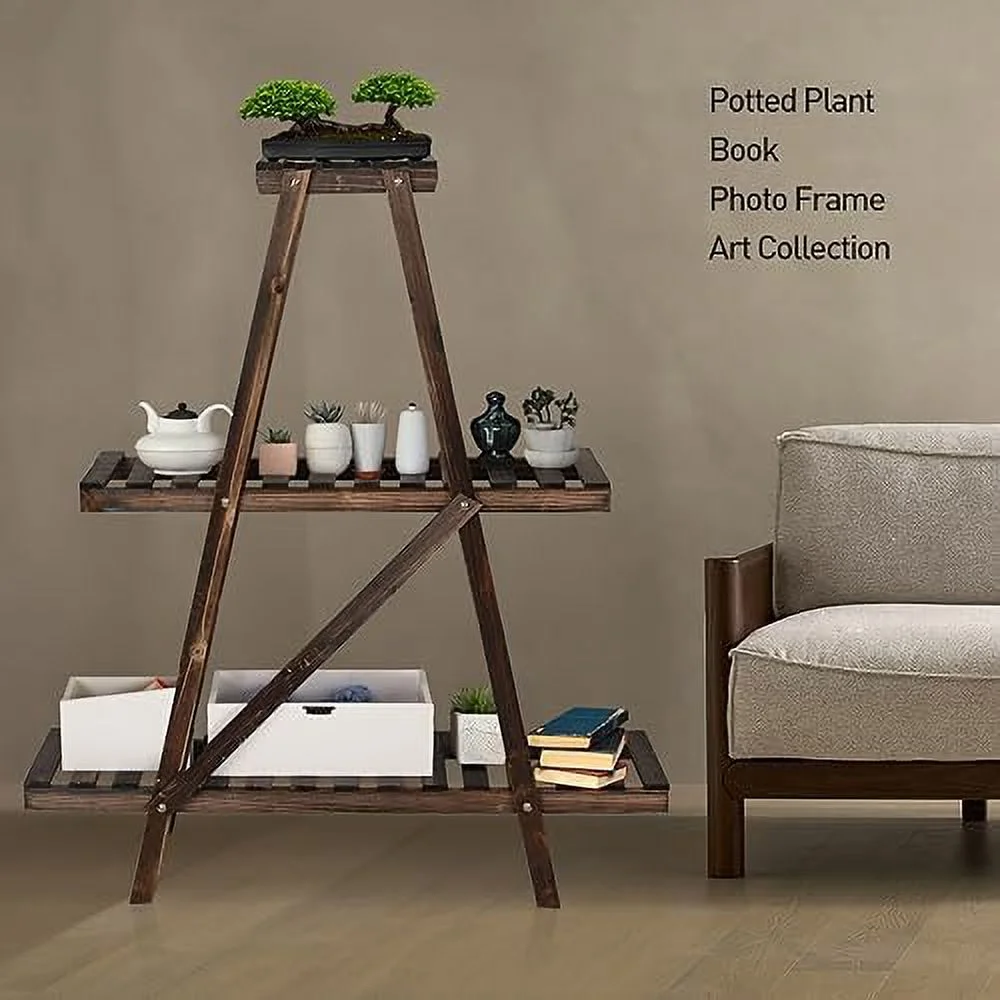 JYHOME NO TAG 3 Tier Ladder Wood -Shaped Bookshelves Ladder Bookcase Decorative Leaning Ladder Plant Display Rack for Living Room Home Office Kitchen Bedroom Balcony - Curated Treasures Market
