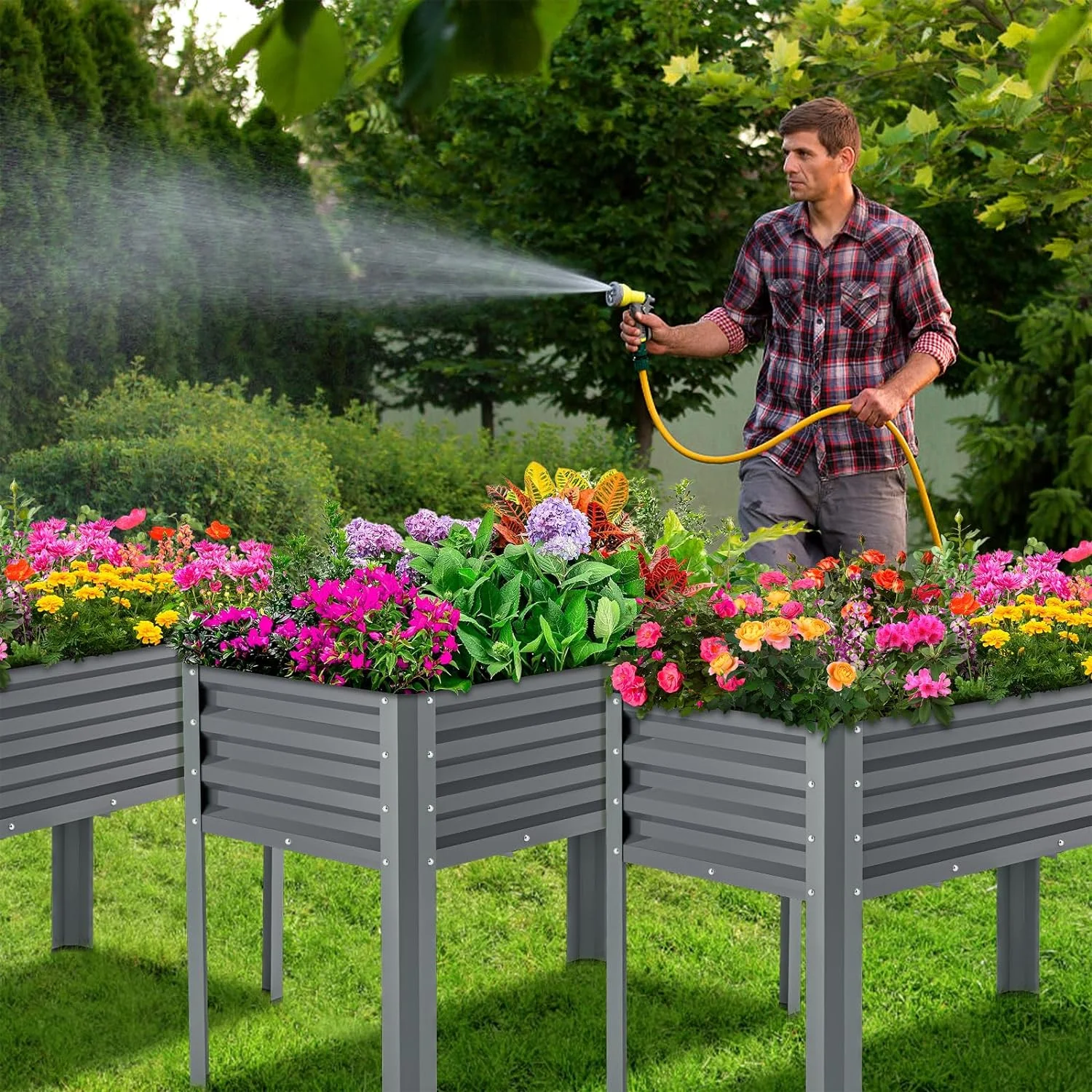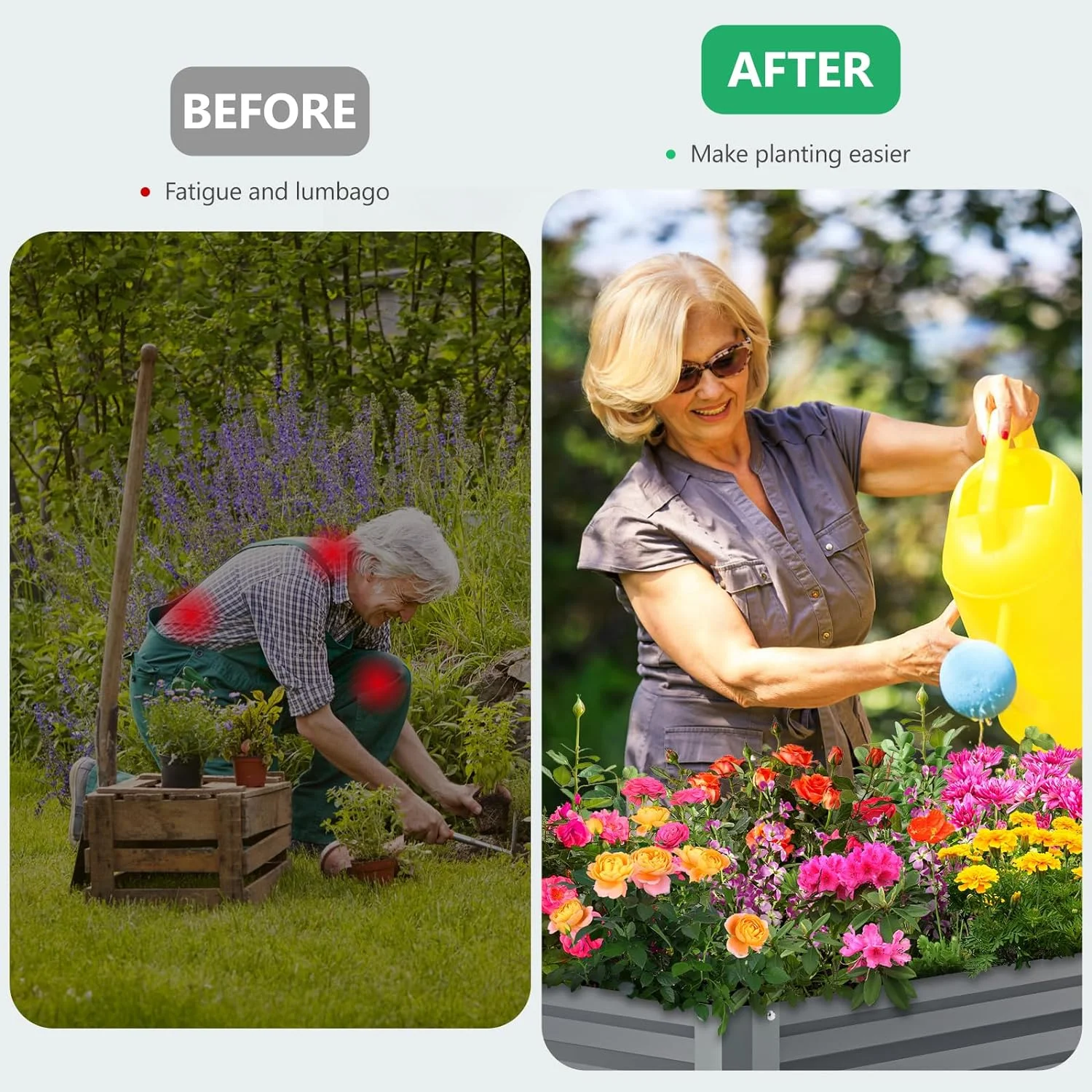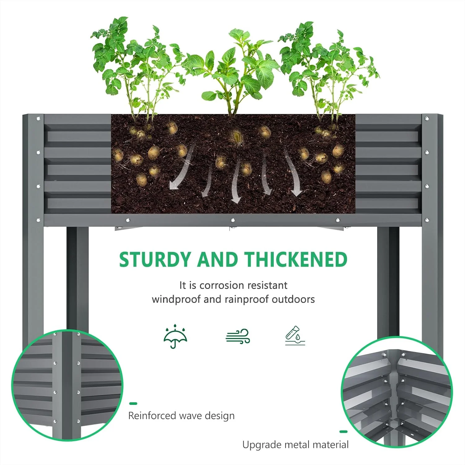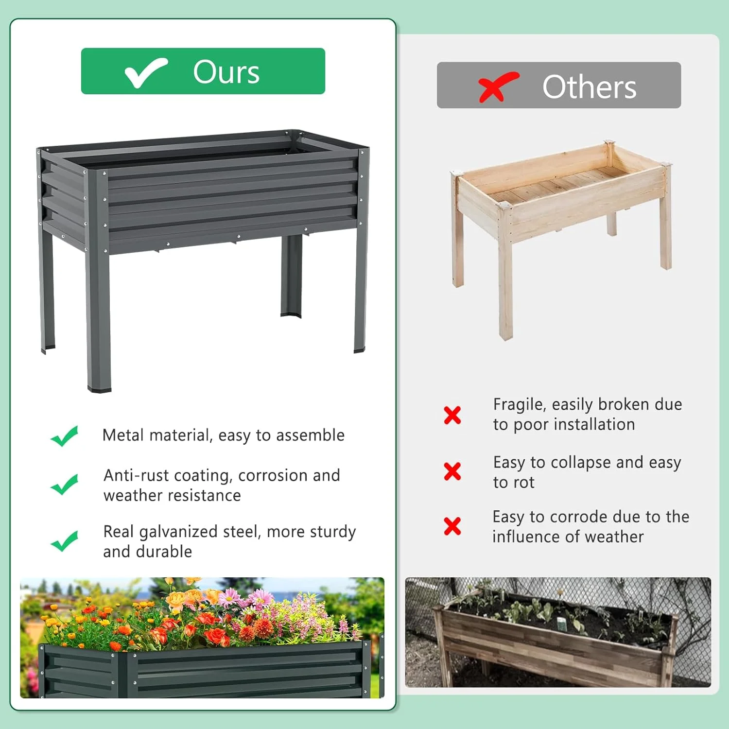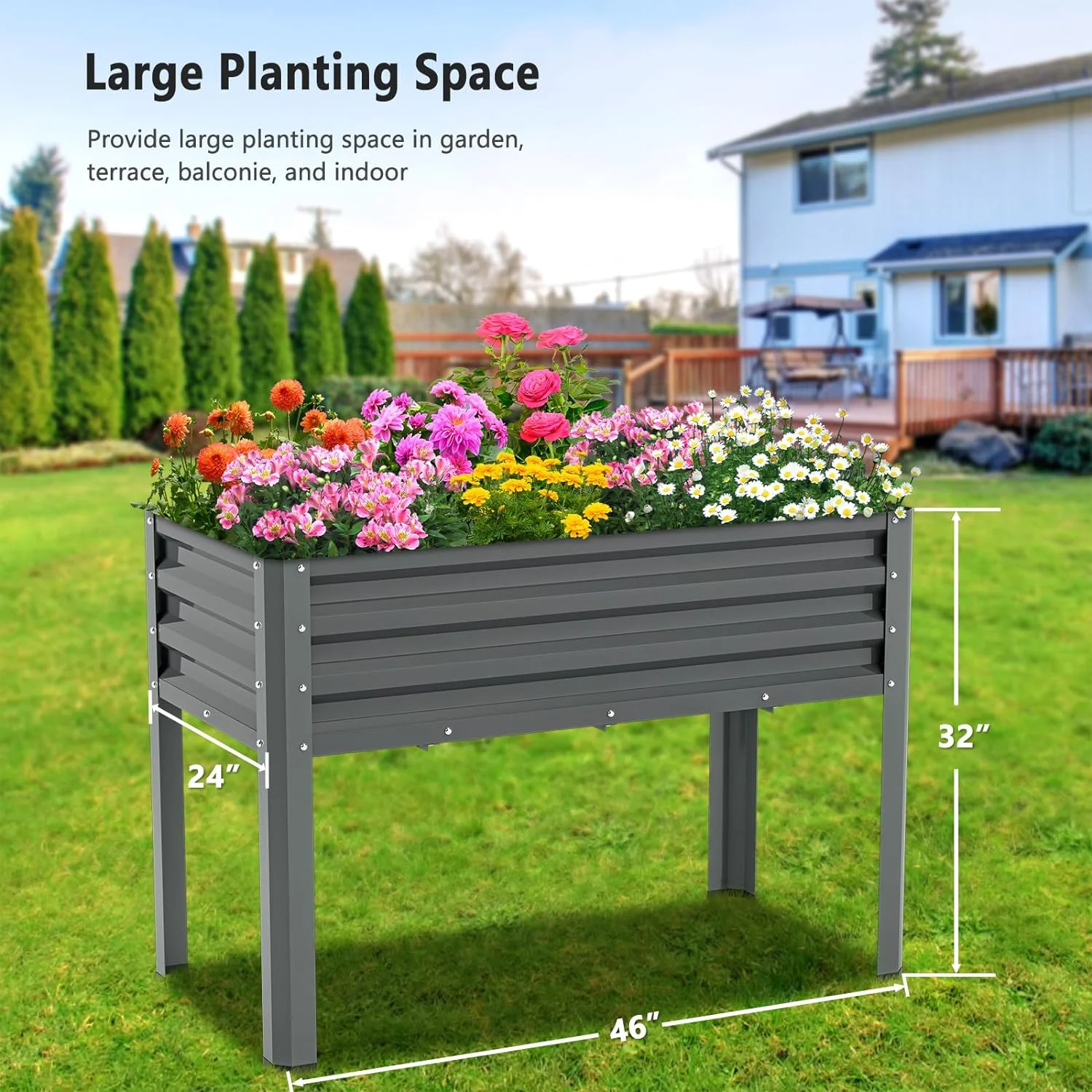 ABORON Galvanized Raised Garden Bed with Legs, 46×24×32in Large Metal Elevated Raised Planter Box with Glove for Backyard, Patio, Balcony - Curated Treasures Market