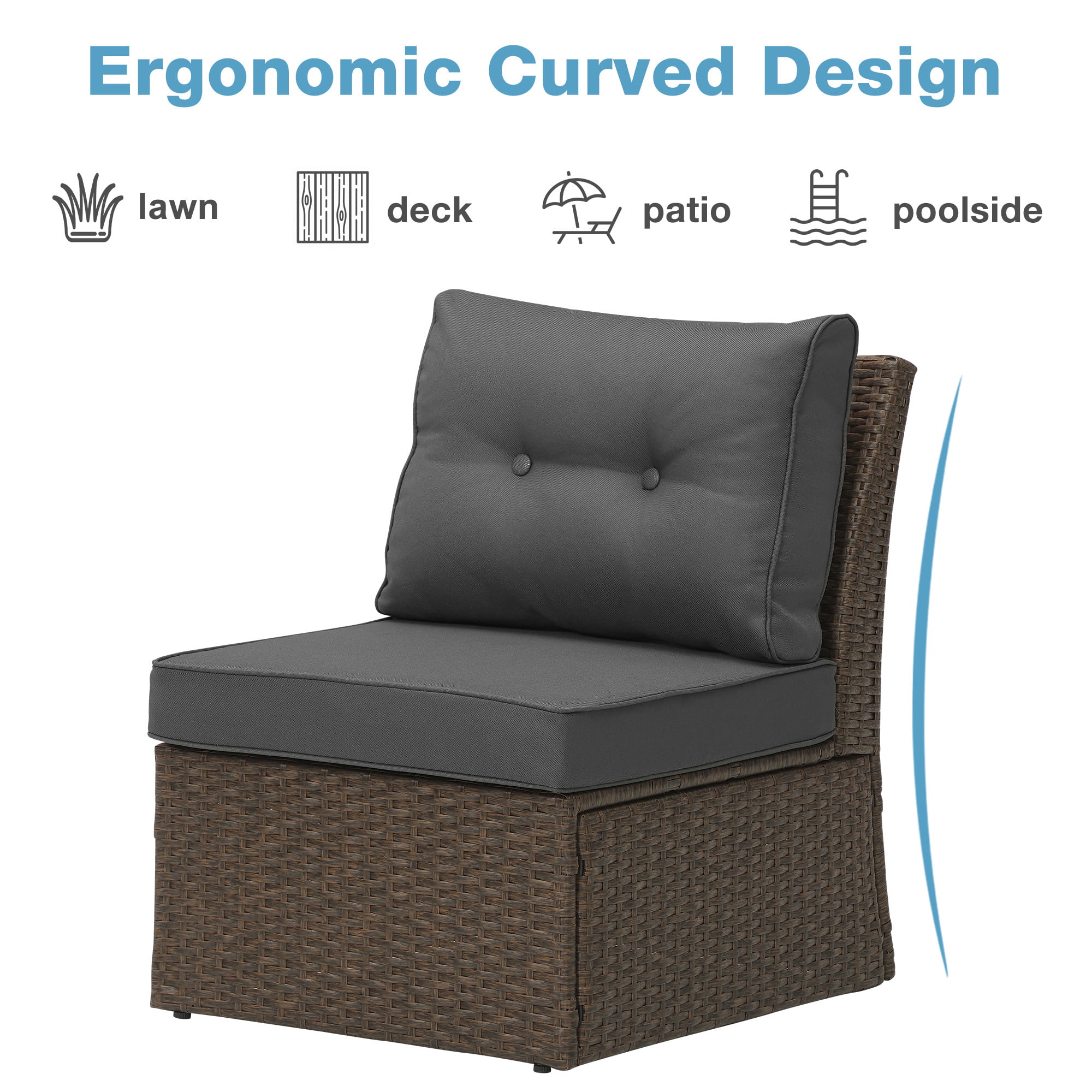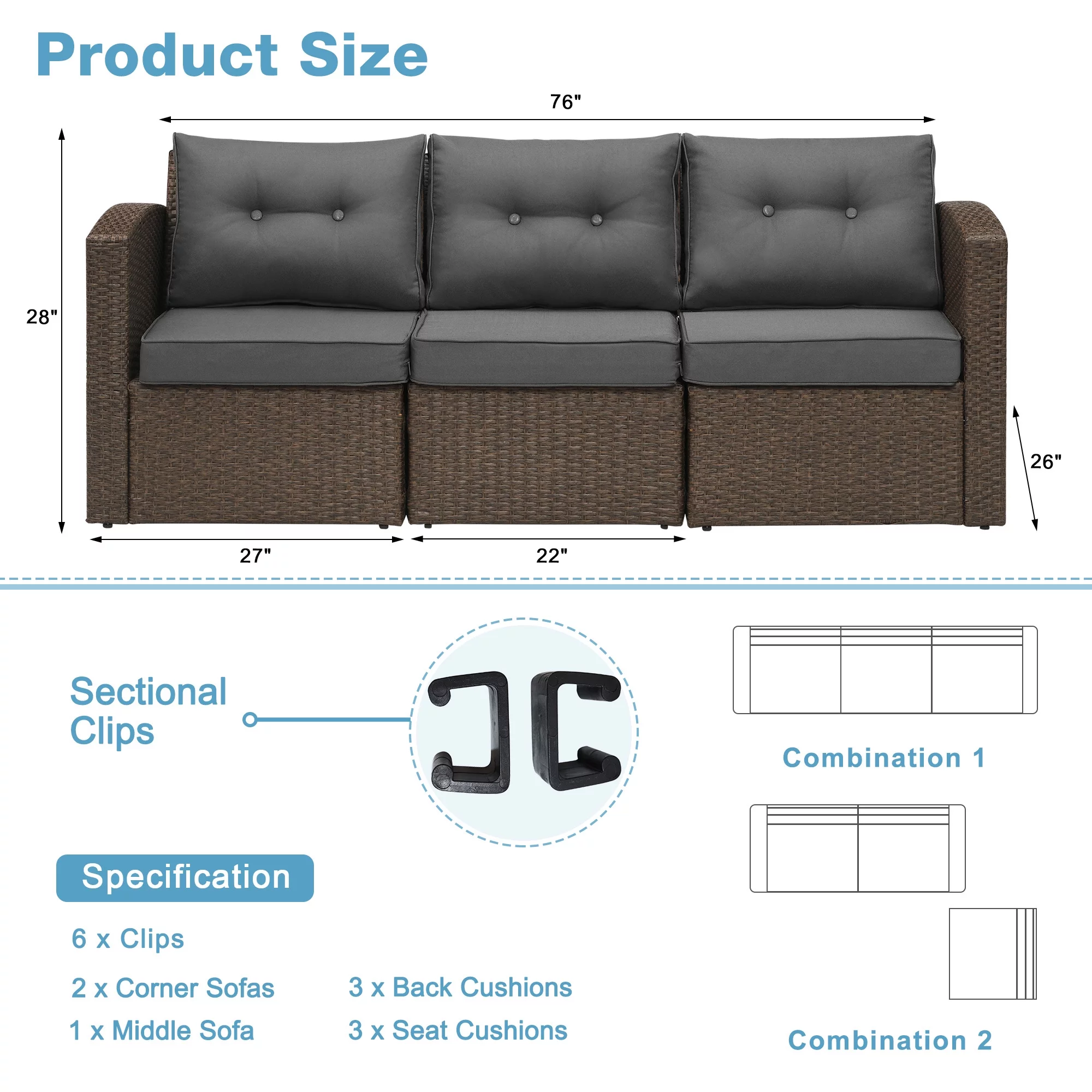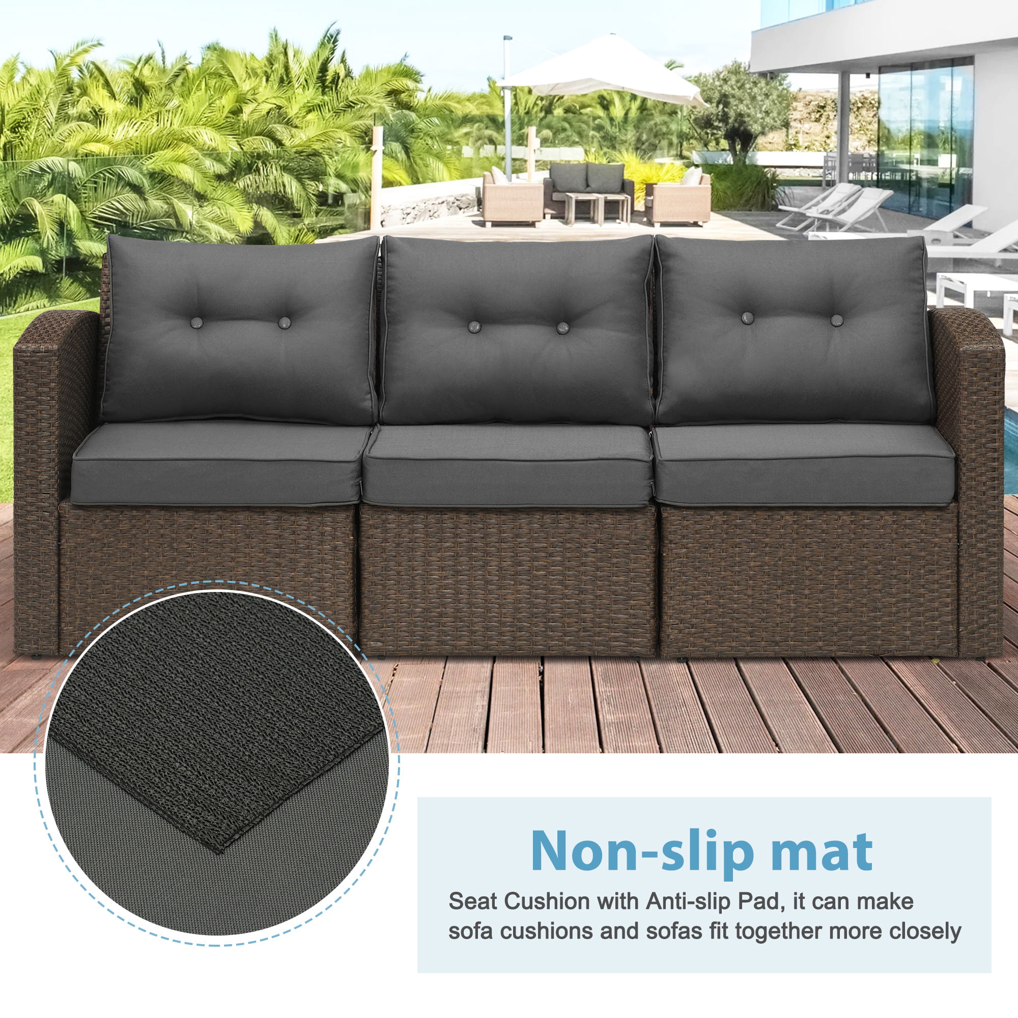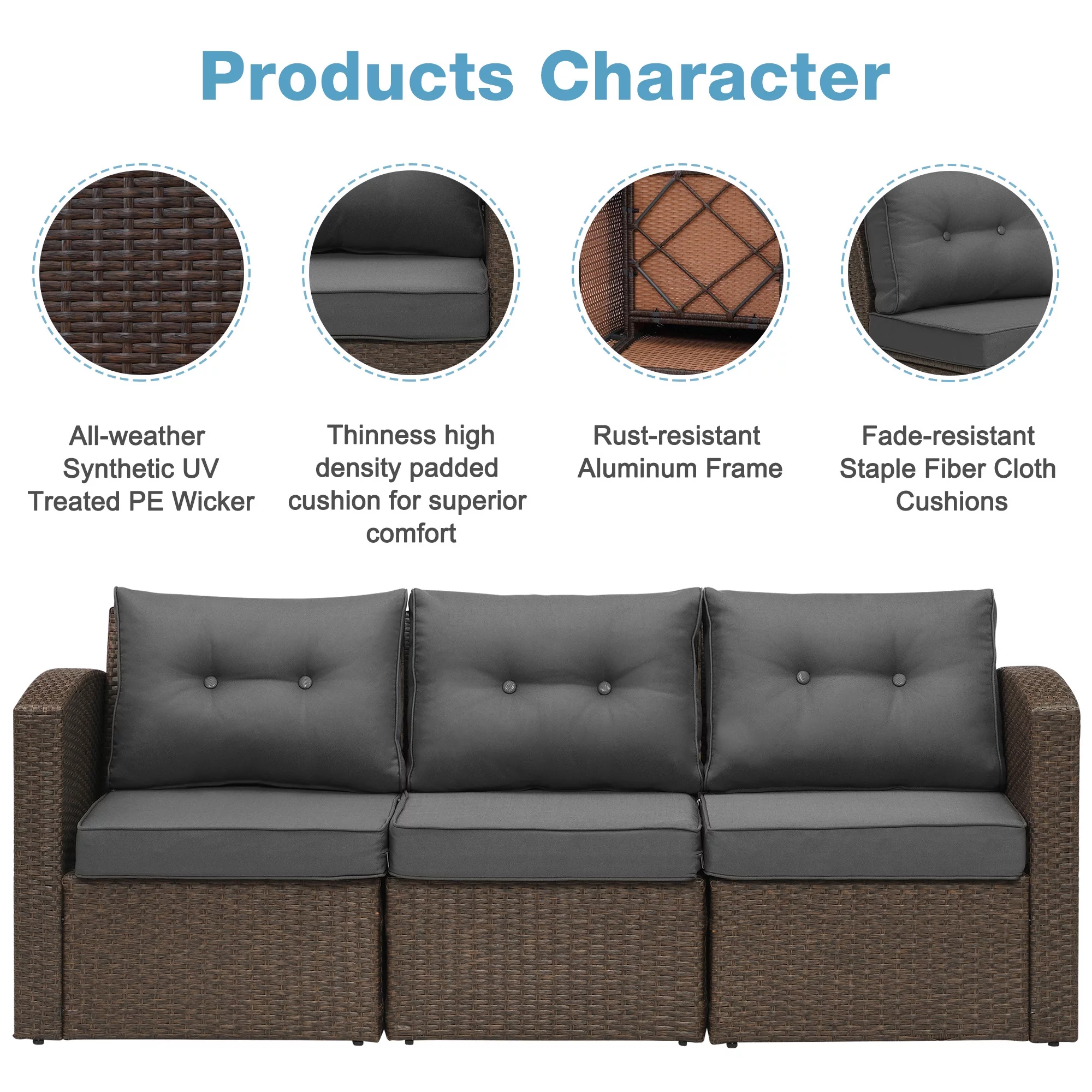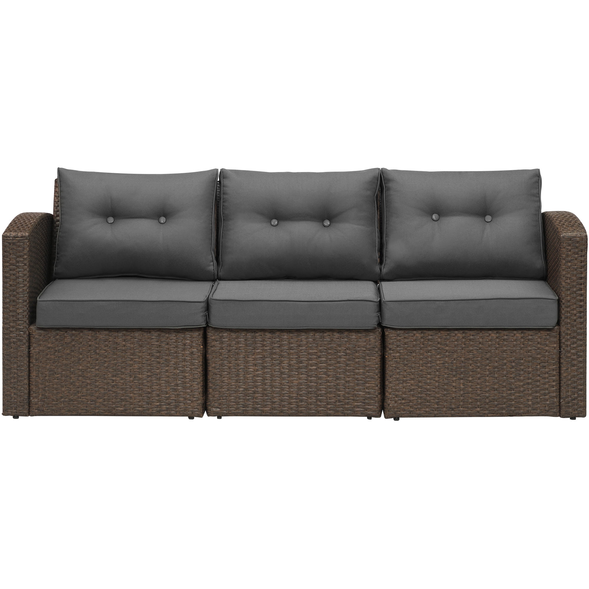 Superjoe Patio Furniture Wicker Sofa 3 Seats Aluminum Frame Outdoor Couch with Brown Rattan Dark,Grey Thick Cushions - Curated Treasures Market