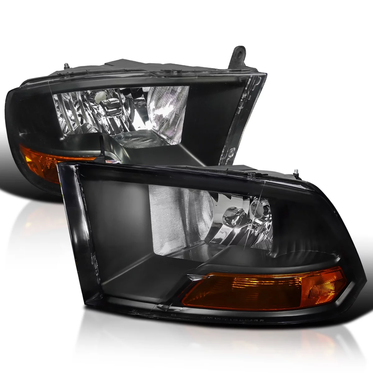 Spec-D Tuning Euro Headlights Black Compatible with Dodge Ram 1500 2009-2018, 10-18 2500 3500, L+R Pair Head Light Lamp Assembly - Curated Treasures Market