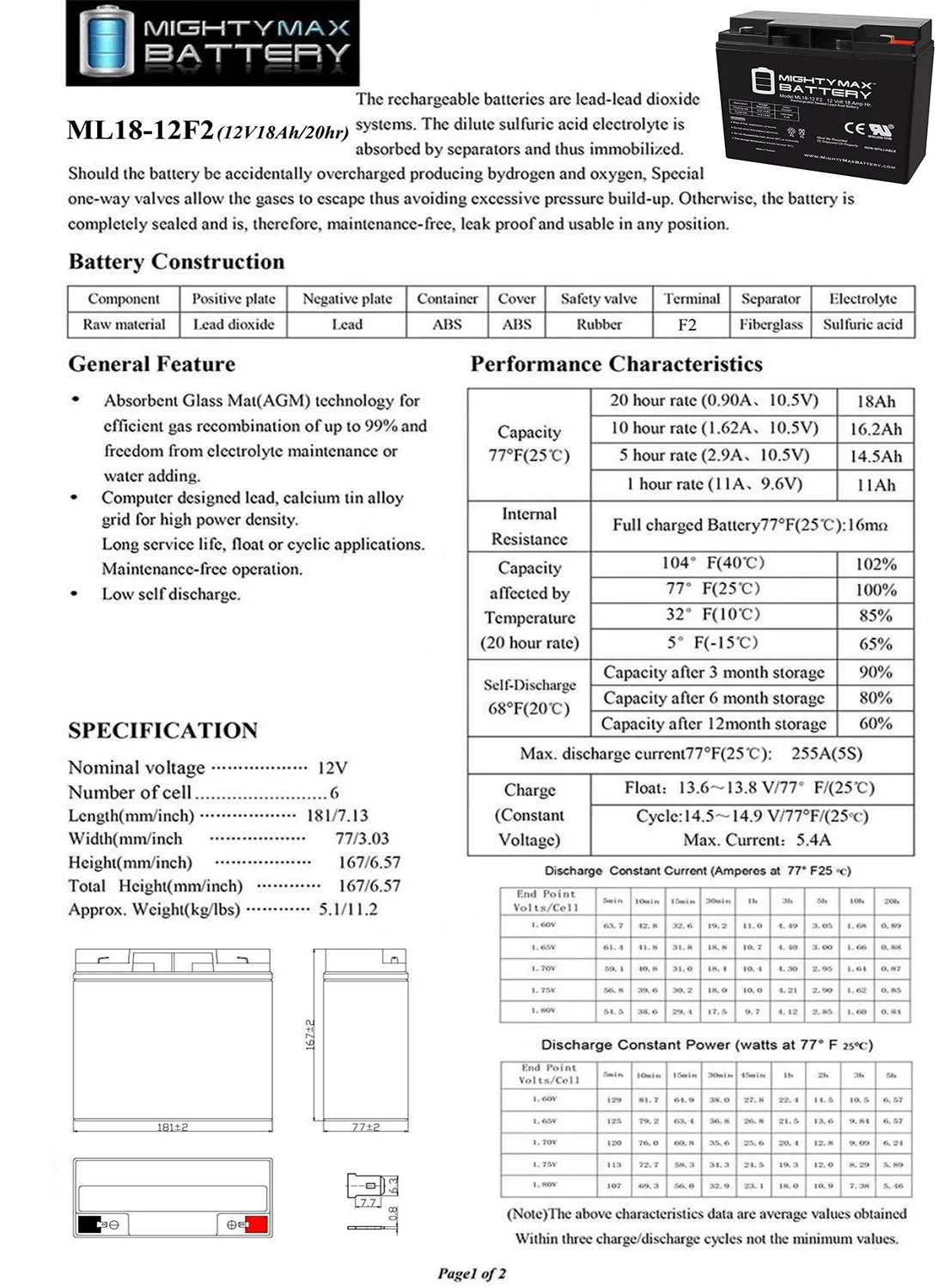 12V 18AH F2 SLA Replacement Battery for Power Sonic PS-12180 - Curated Treasures Market