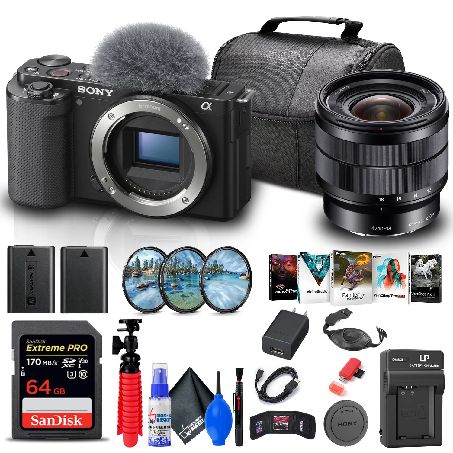 Sony ZV-E10 Mirrorless Camera + Sony E 10-18mm Lens + 64GB Memory Card + More - Curated Treasures Market