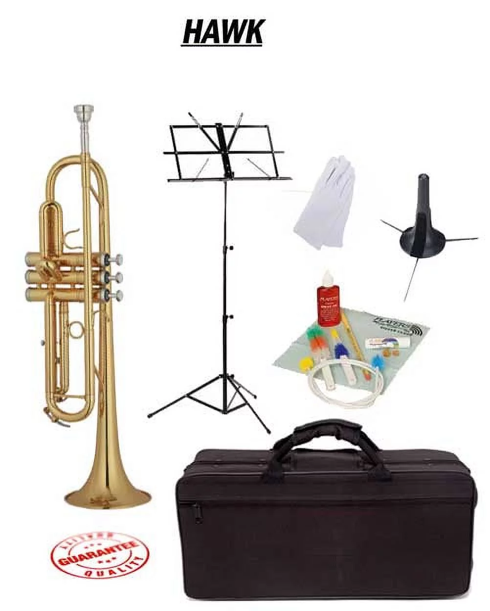 Hawk Lacquer Bb Trumpet School Package with Case, Music Stand, Trumpet Stand and Cleaning Kit - Curated Treasures Market