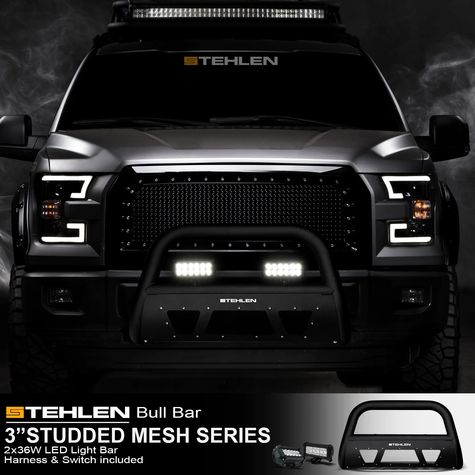 Stehlen 714937185401 3" Studded Mesh Series Bull Bar ( Matte Black ) With 36W CREE LED Light Bars For Ram 1500 2009-2018 / Classic 2019-2022 - Curated Treasures Market