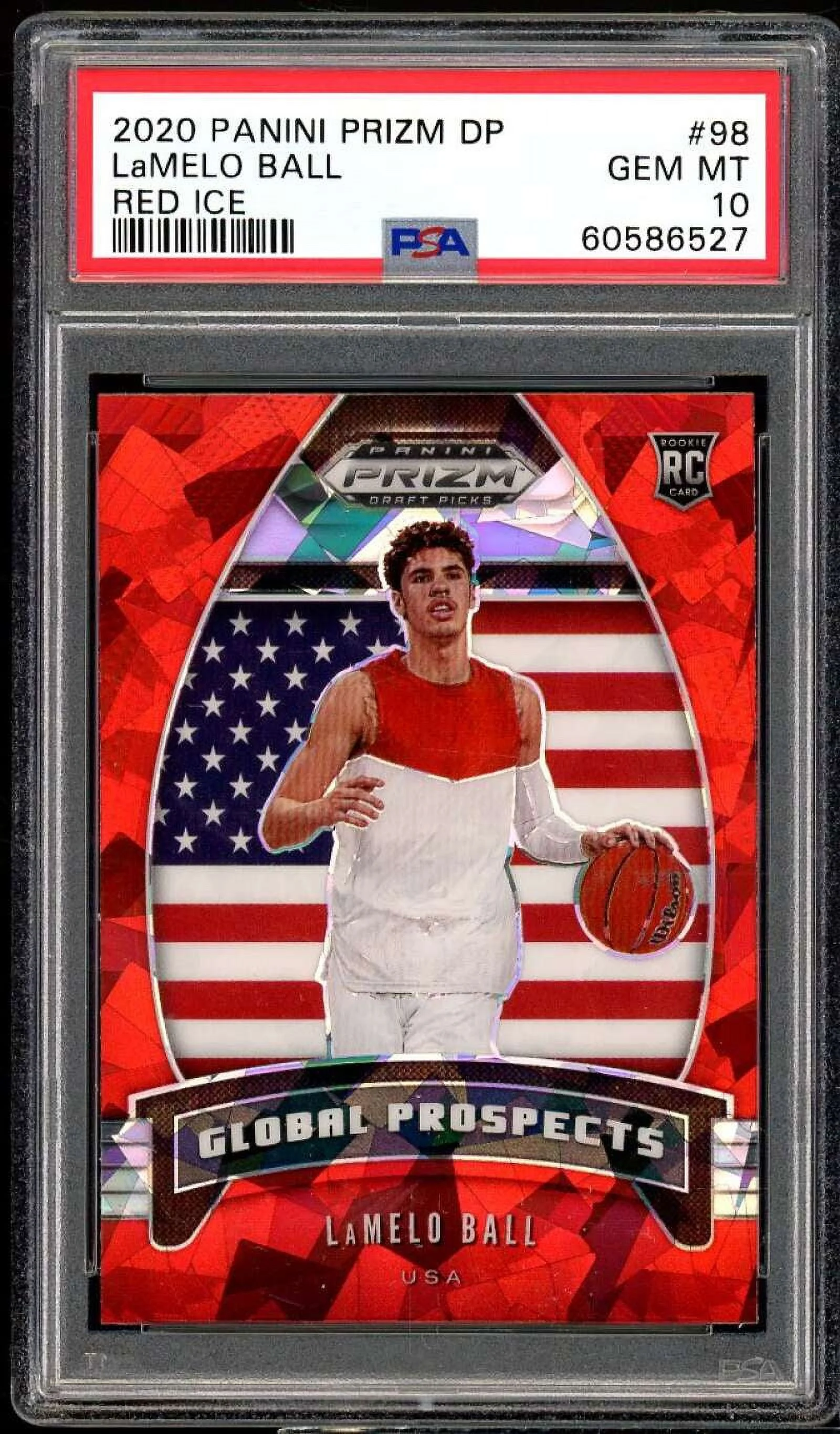LaMelo Ball Rookie Card 2020-21 Panini Prizm Draft Picks Red Ice #98 PSA 10 - Curated Treasures Market