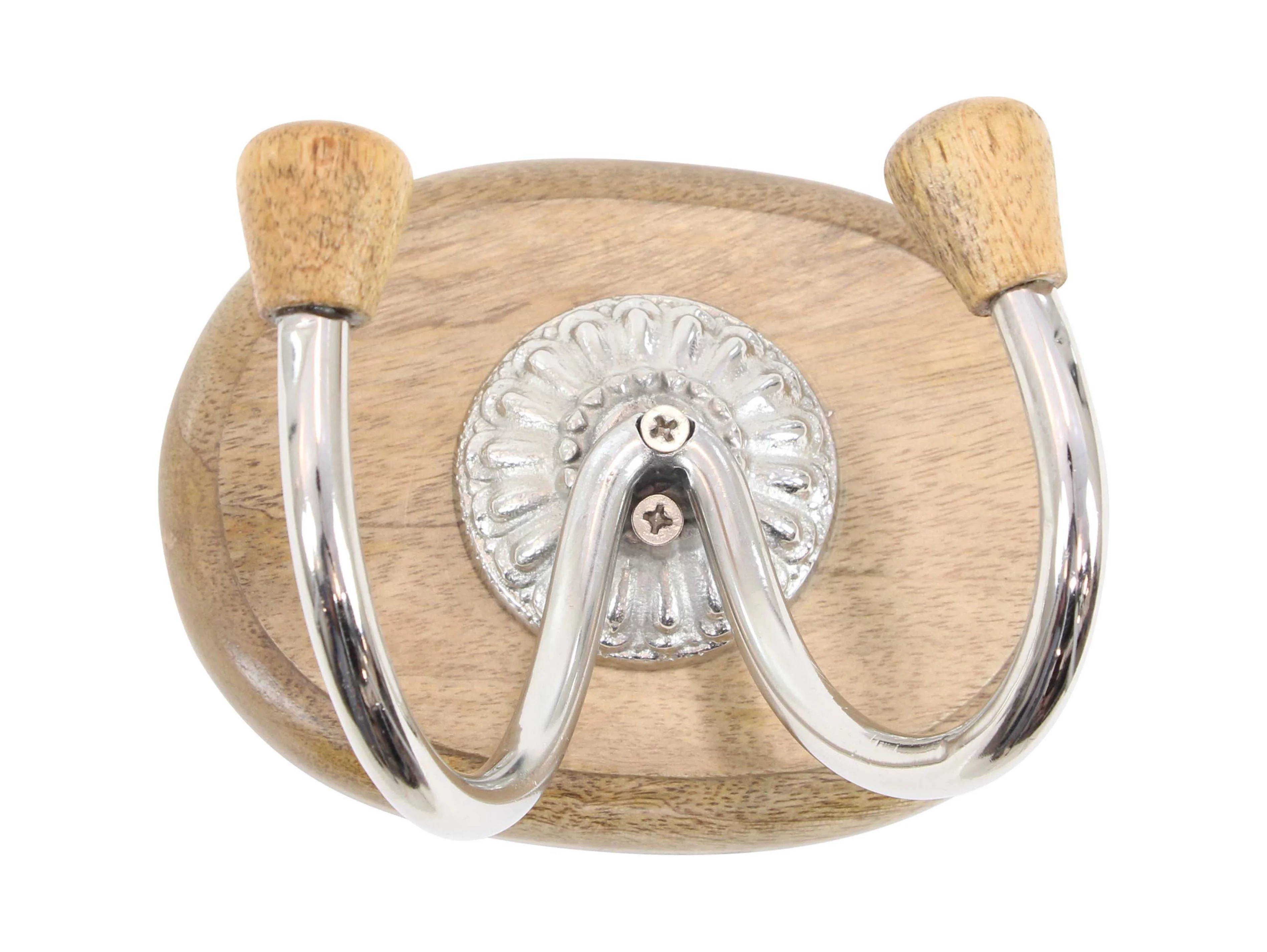 DecMode Contemporary 4 X 6 Inch Chic Aluminum and Mango Two-Pronged Wall Hook, Brown - Curated Treasures Market