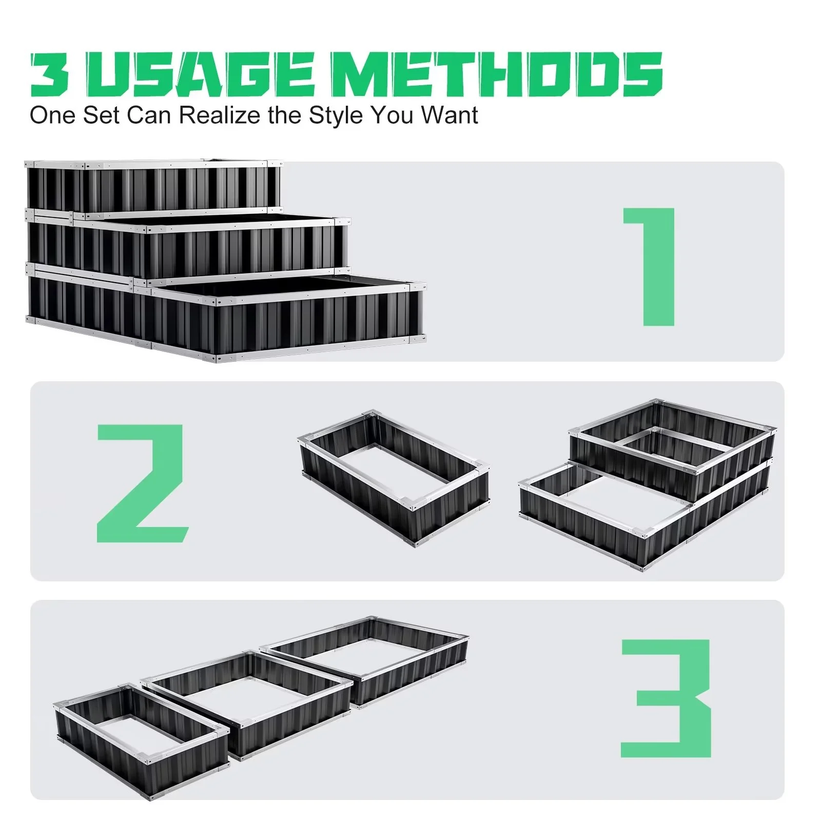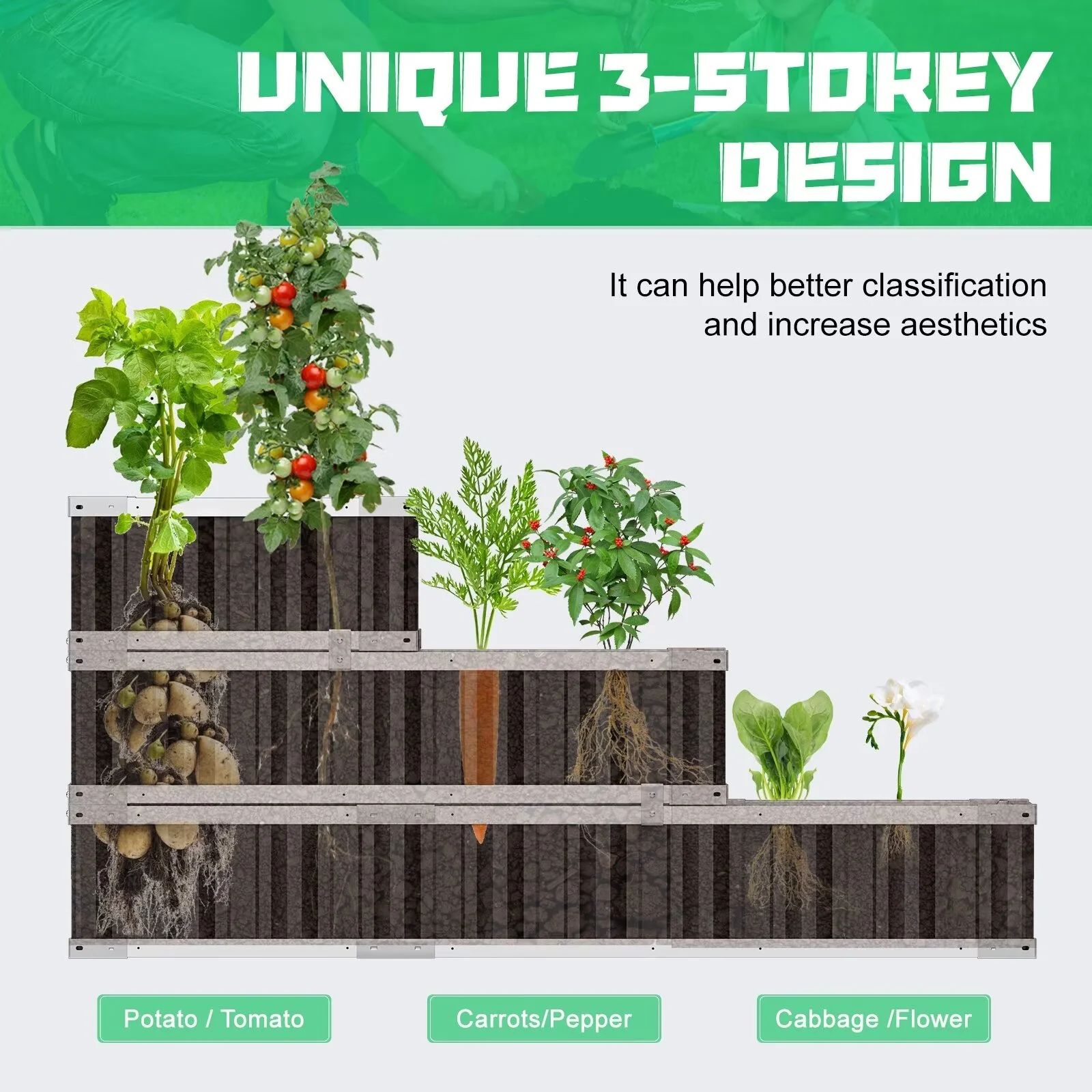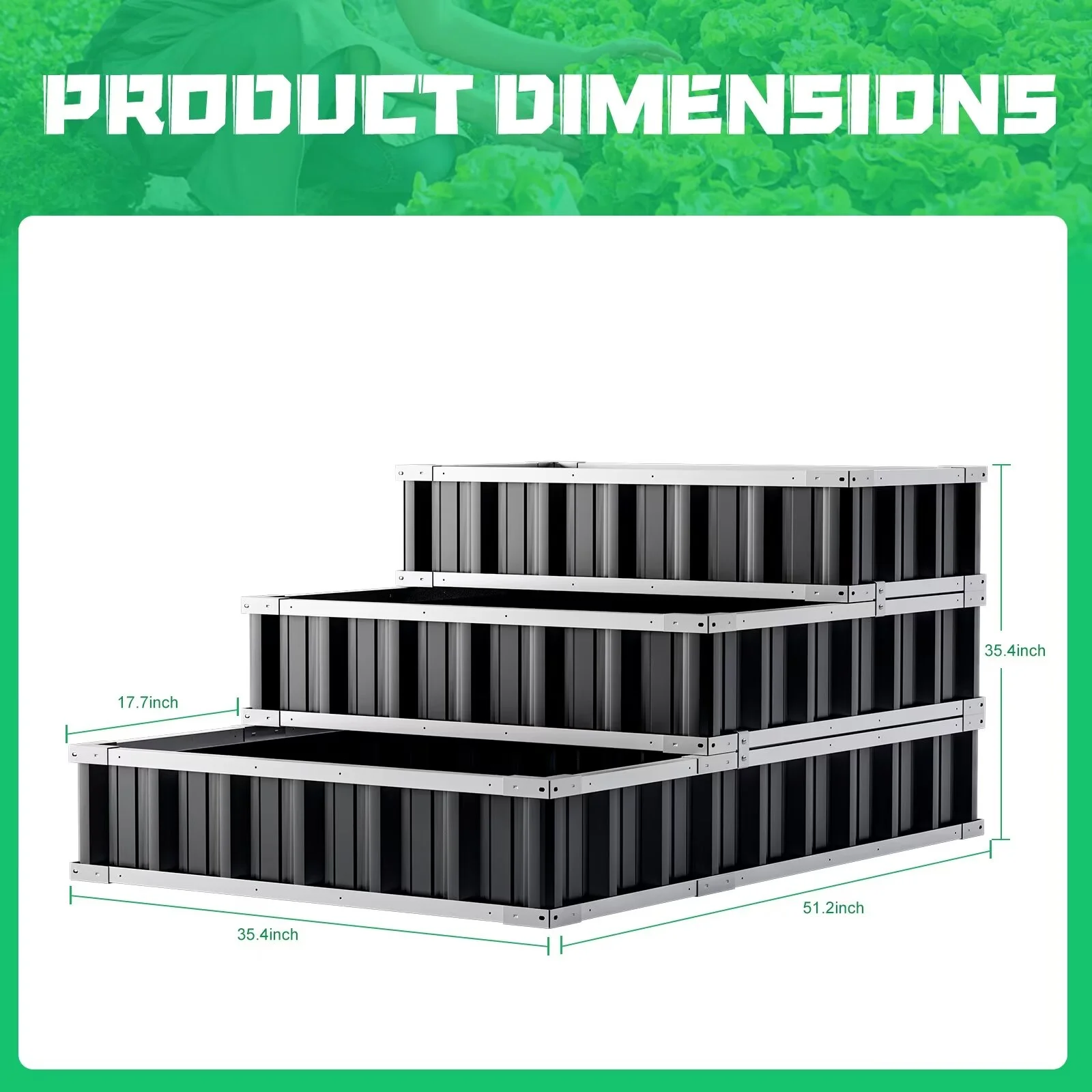 MOPHOTO 3 Tiers Raised Garden Bed, 51'' x 35.4'' x 35.4'' Galvanized Steel Metal Outdoor Patio Garden Elevated Planter Box for Growing Vegetables Flowers, Black - Curated Treasures Market