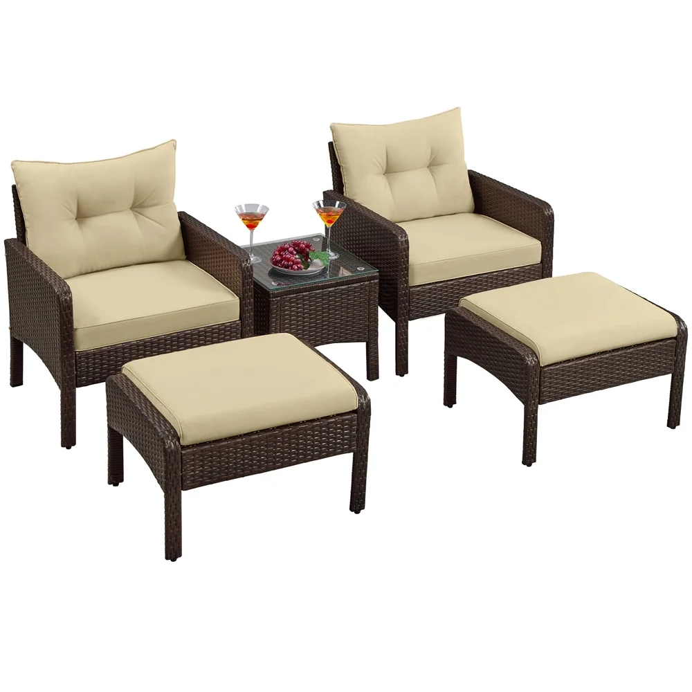 Topeakmart 5-Pieces Outdoor Rattan Wicker Conversation Patio Furniture Set Coffee Table, Brown - Curated Treasures Market