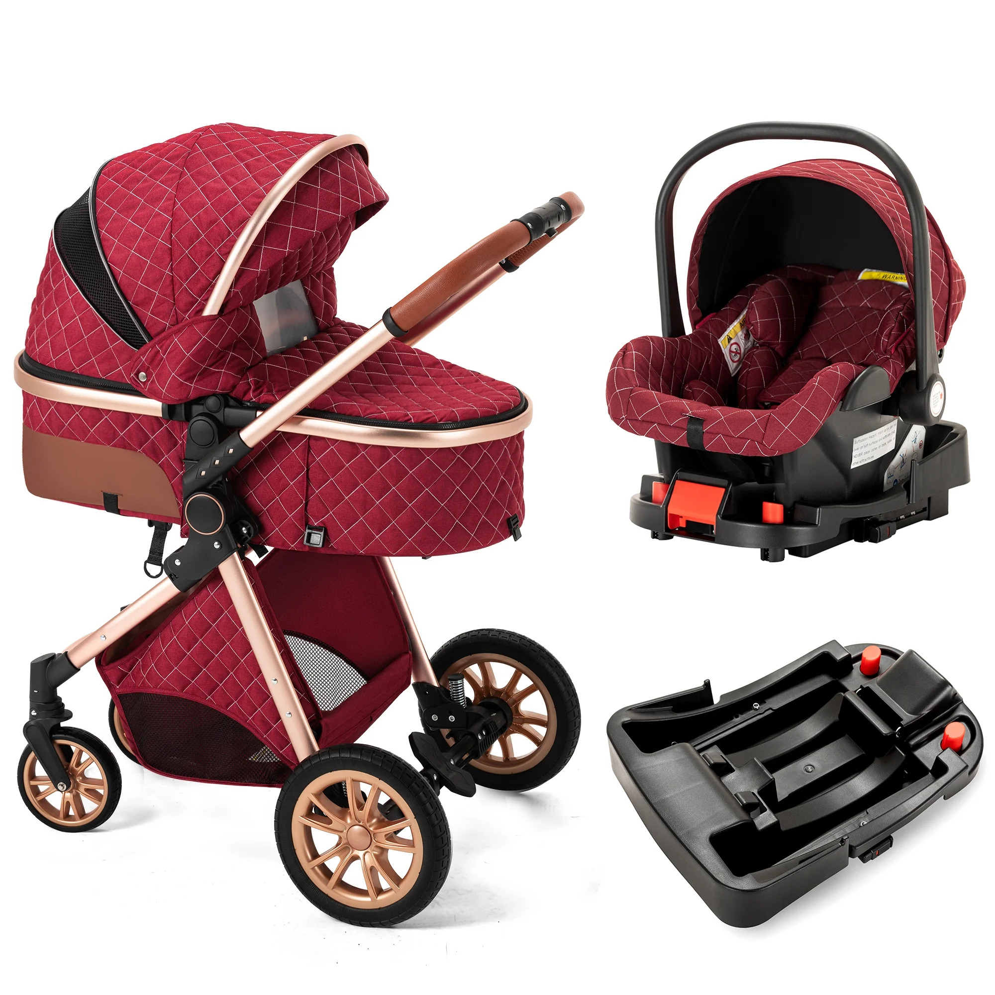 High Landscape Stroller Two-Way Push Newborn Convertible Stroller Bassinet for Infant(Red) - Curated Treasures Market