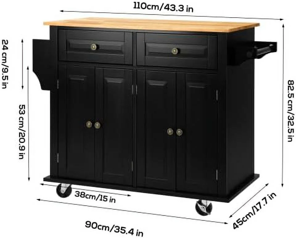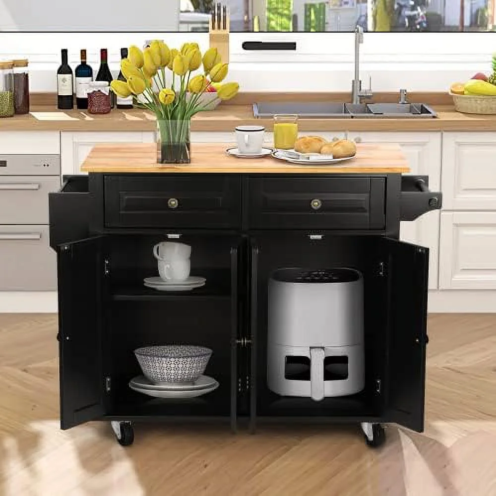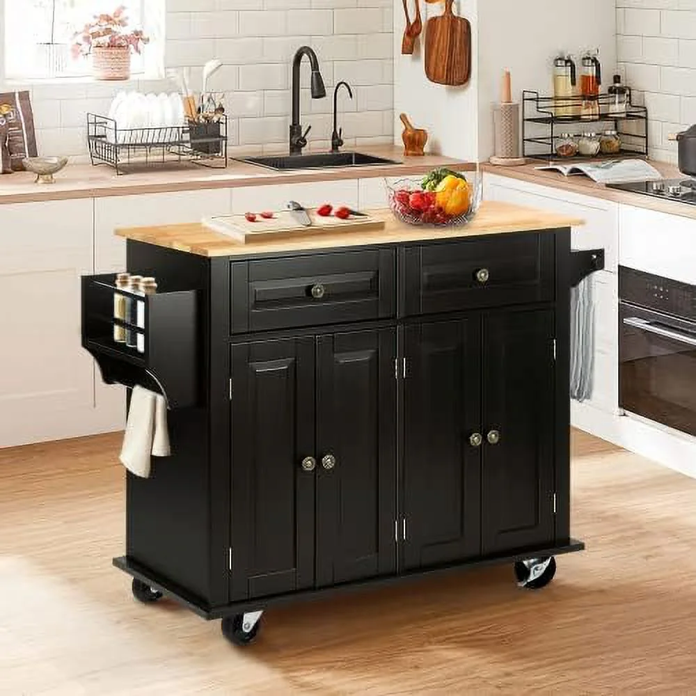 FDXCKJP 43" Kitchen Island with Rolling Kitchen Cart with Lockable Wheels Solid Wood Tabletop Kitchen Island Table for Kitchen Living Room White - Curated Treasures Market