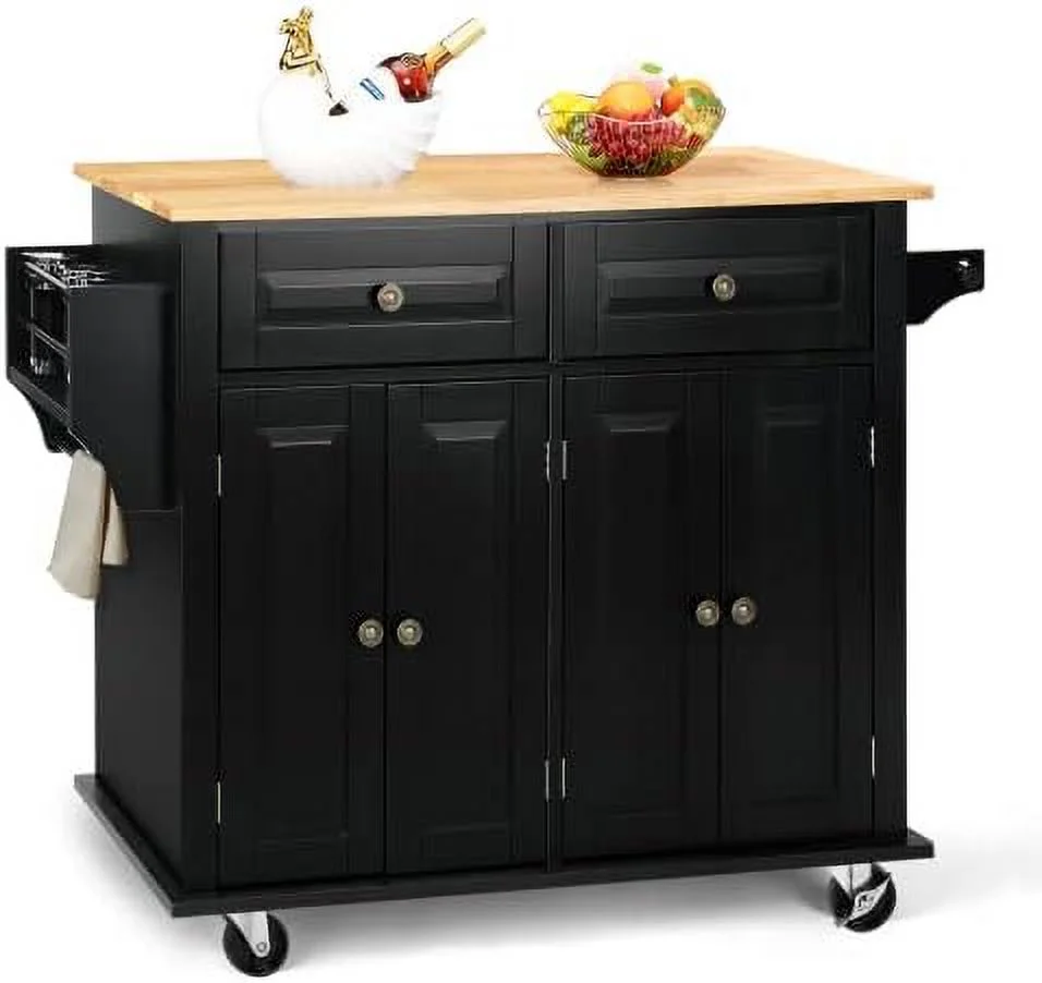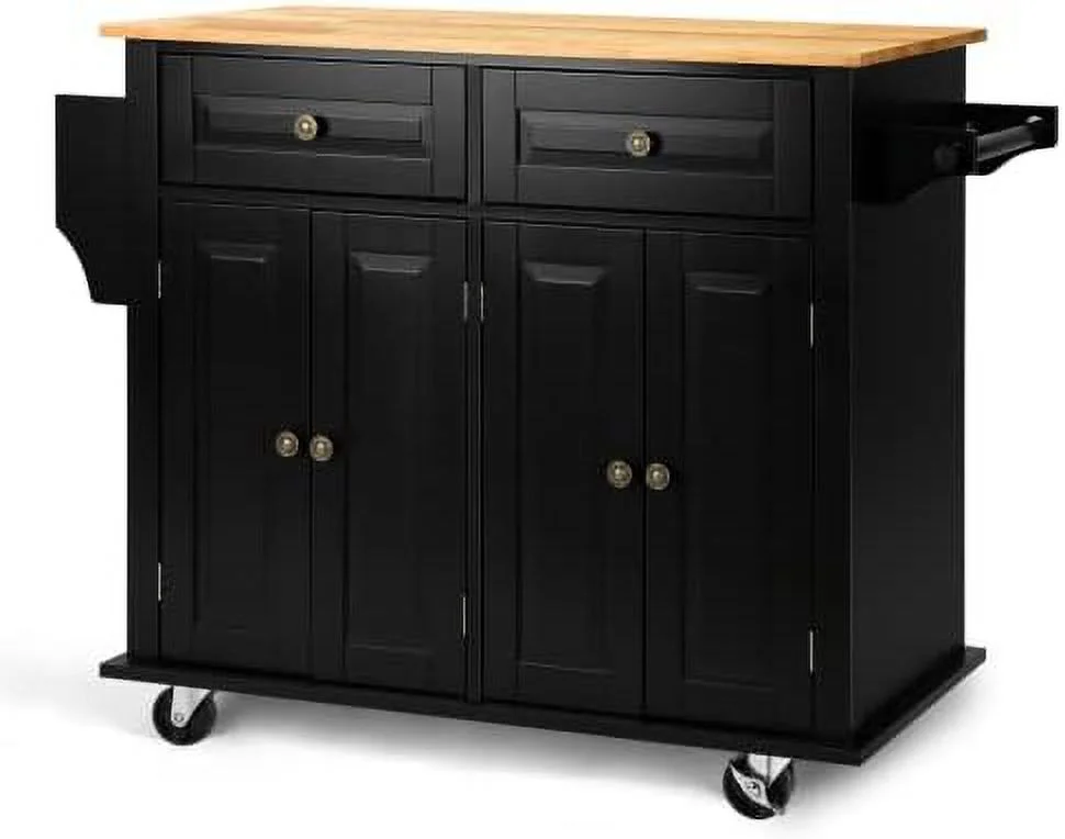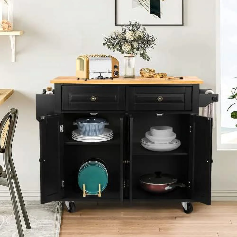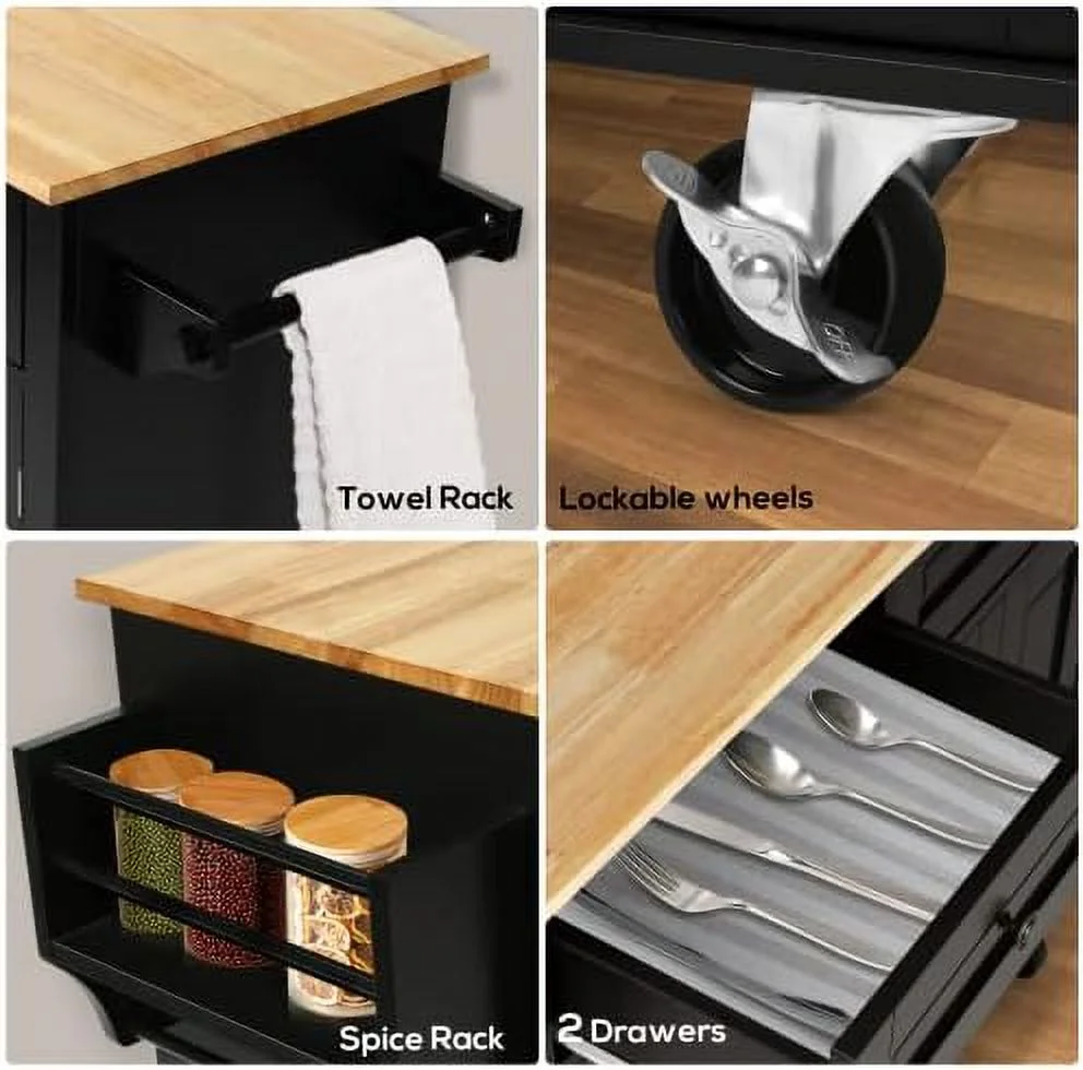 FDXCKJP 43" Kitchen Island with Rolling Kitchen Cart with Lockable Wheels Solid Wood Tabletop Kitchen Island Table for Kitchen Living Room White - Curated Treasures Market