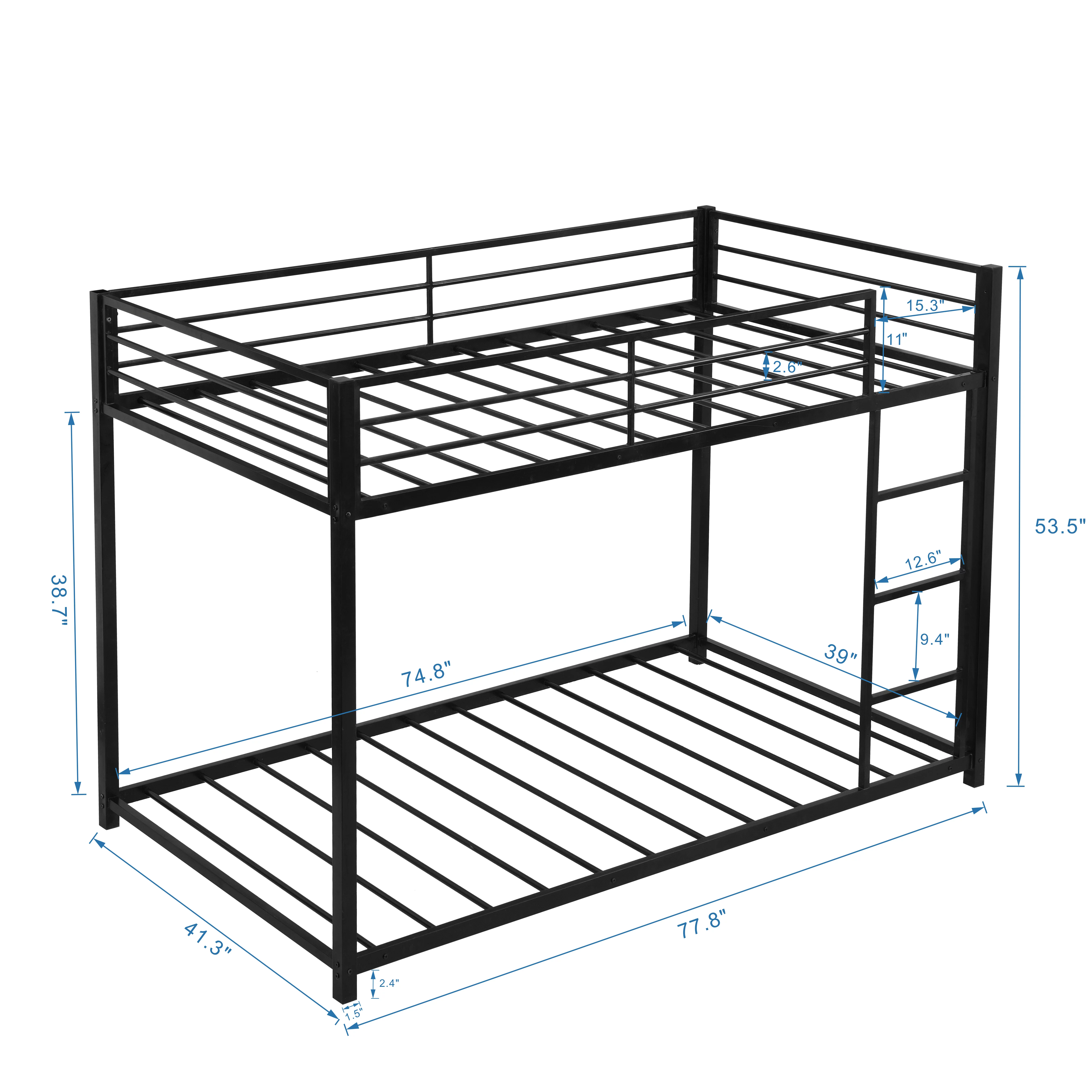 Low Bunk Bed with Ladder Metal Bunk Bed Heavy Duty Bed Frame with Safety Guard Rails & Flat Ladder for Kids Teens Adults - Curated Treasures Market