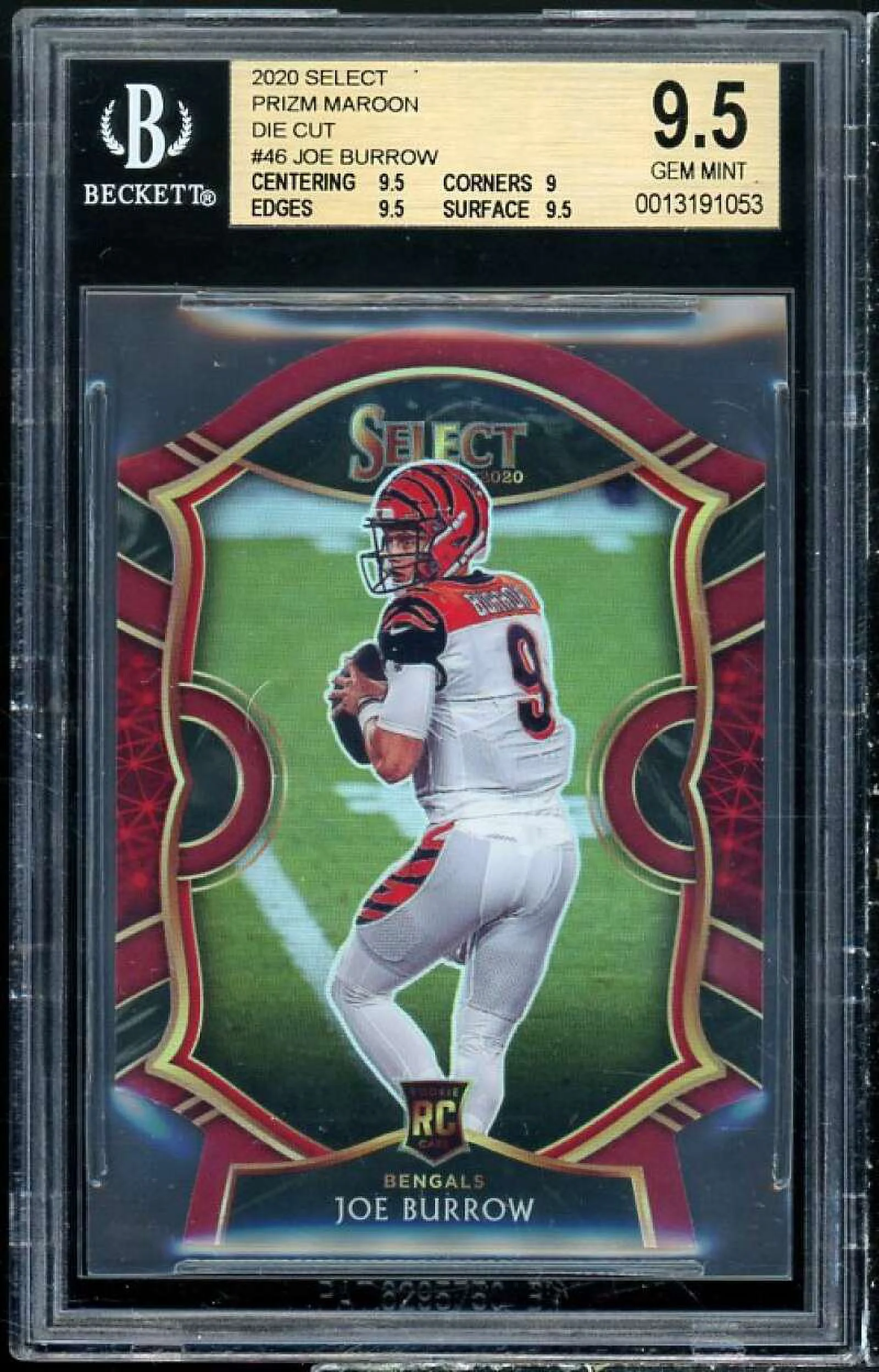 Joe Burrow Rookie 2020 Select Prizm Maroon Die Cut #46 BGS 9.5 (9.5 9 9.5 9.5) - Curated Treasures Market