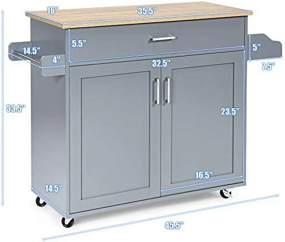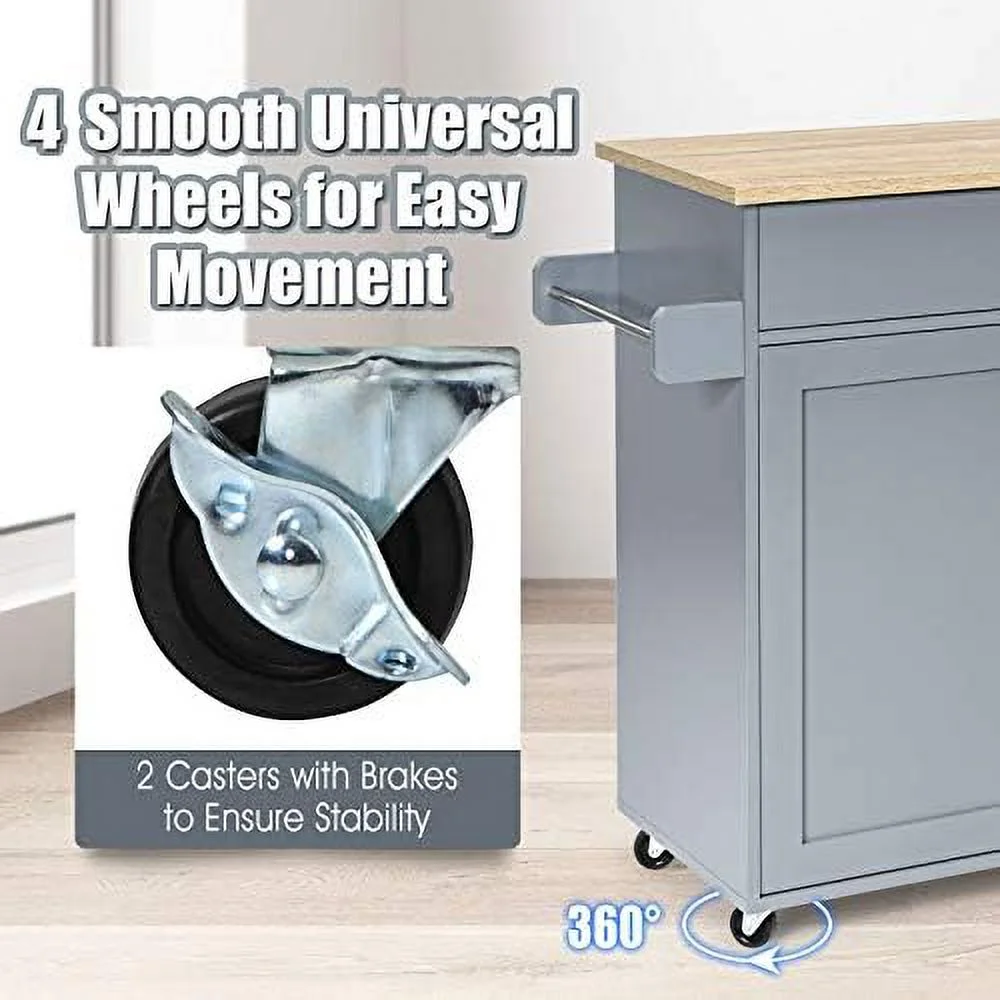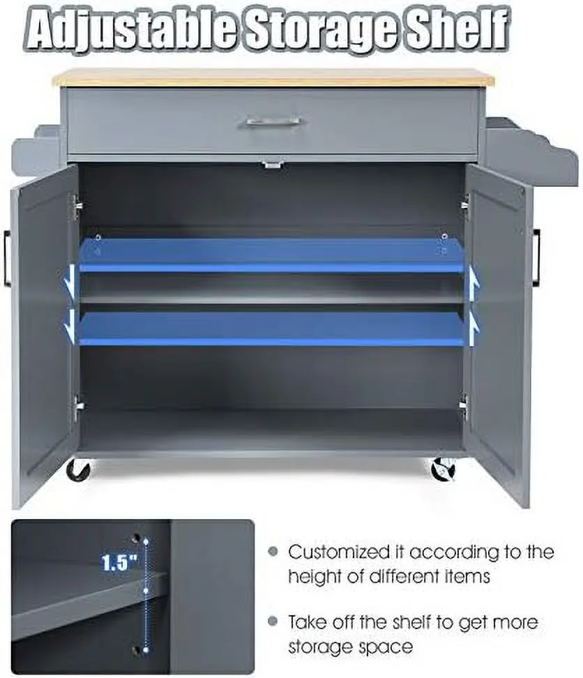 CHYRFCV Kitchen Island Rolling Kitchen Cart with Spice and Towel Rack Large Drawer & 2-Door Cabinet Home Service Cart on Lockable Wheels Wood Kitchen Trolley Spacious Tabletop ( - Curated Treasures Market